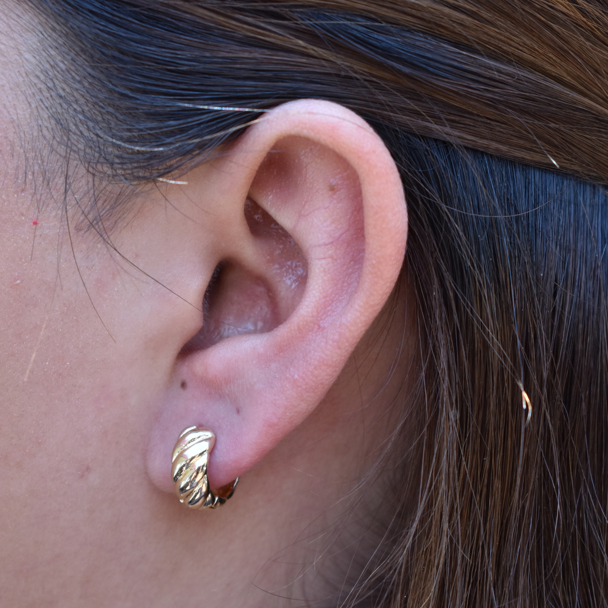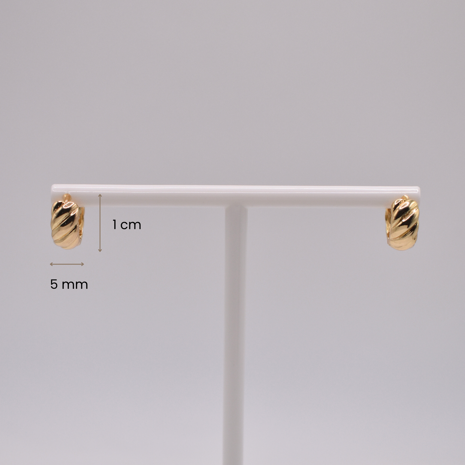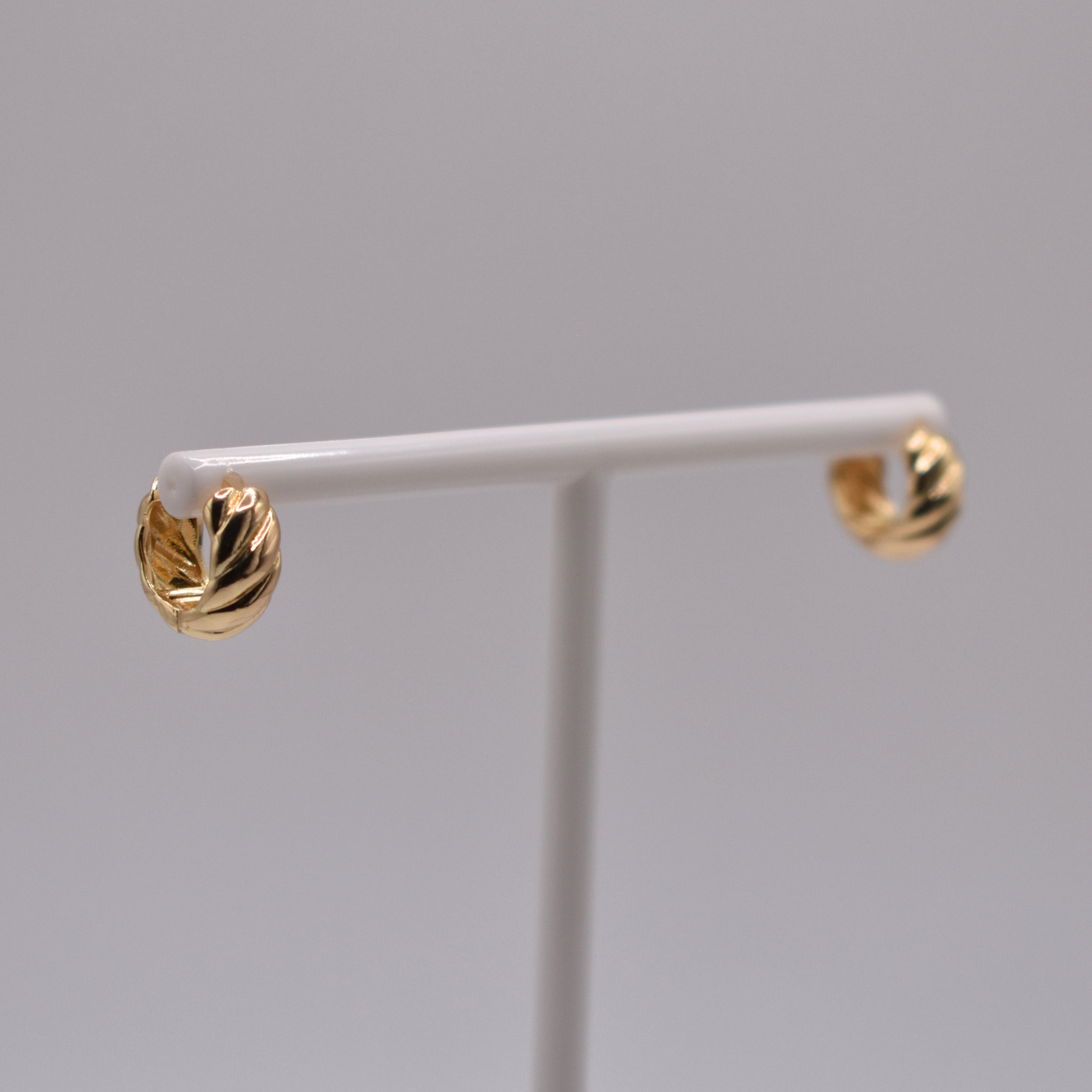 Delicados y con textura, los aretes Adras en dorado tienen un diseño trenzado pequeño, ideales para uso diario.