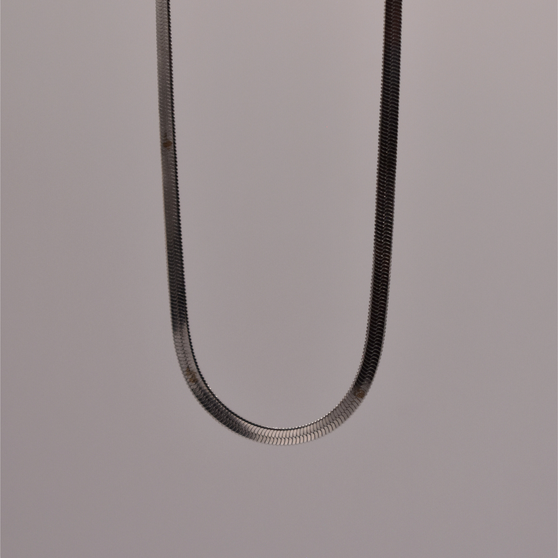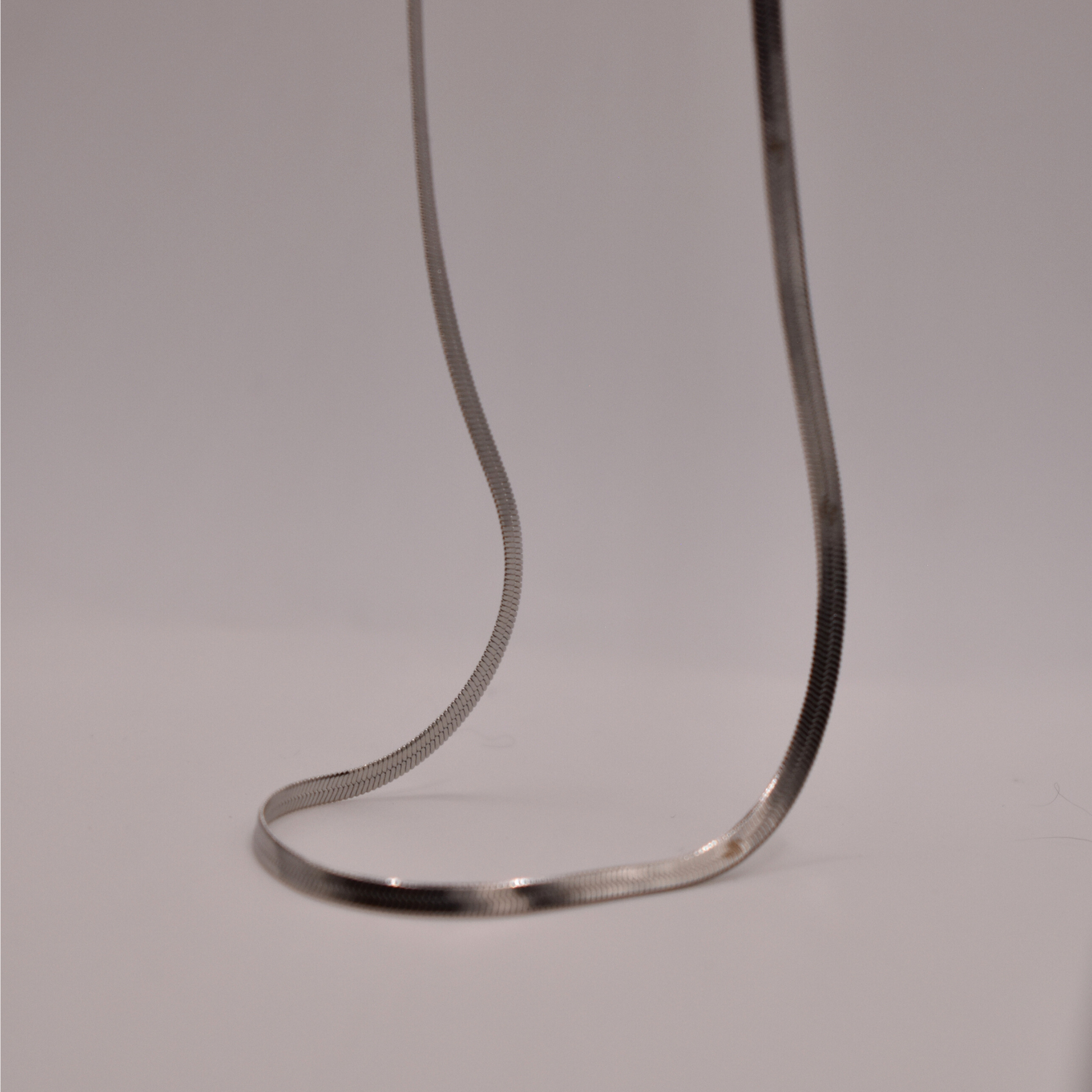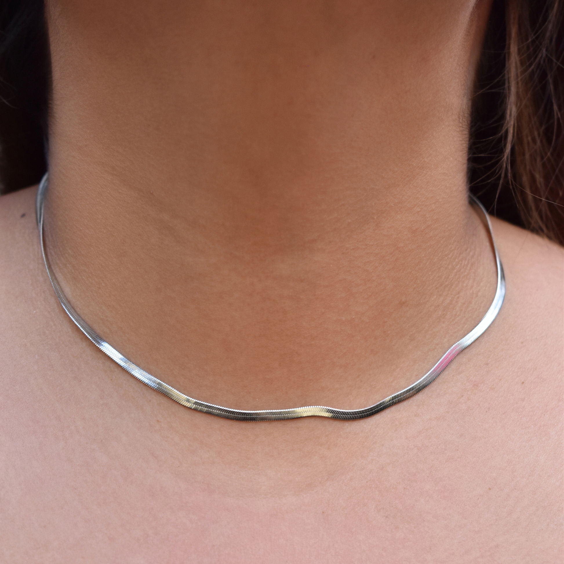 Cadena planchada lisa en plata, Akilah es el minimalismo brillante que se mezcla bien con collares chunky.