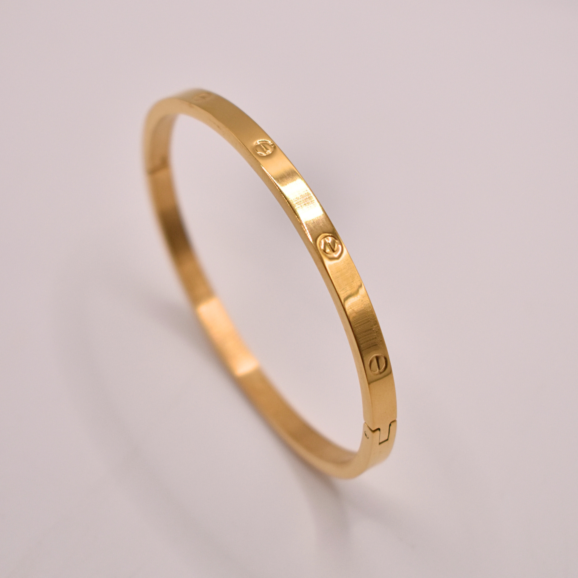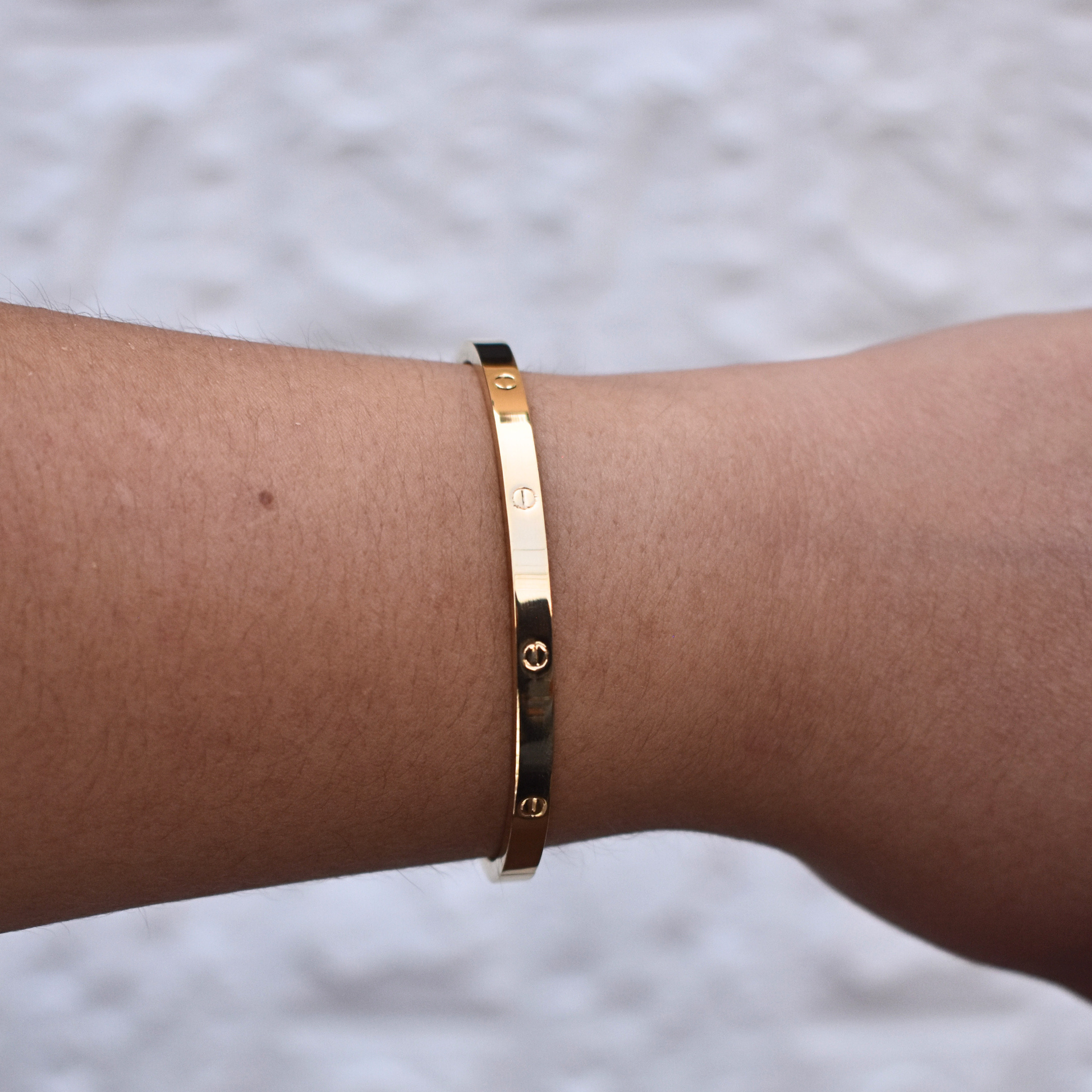 Clásica y elegante, la pulsera Alcide estilo Cartier en dorado es un básico sofisticado para cualquier ocasión.