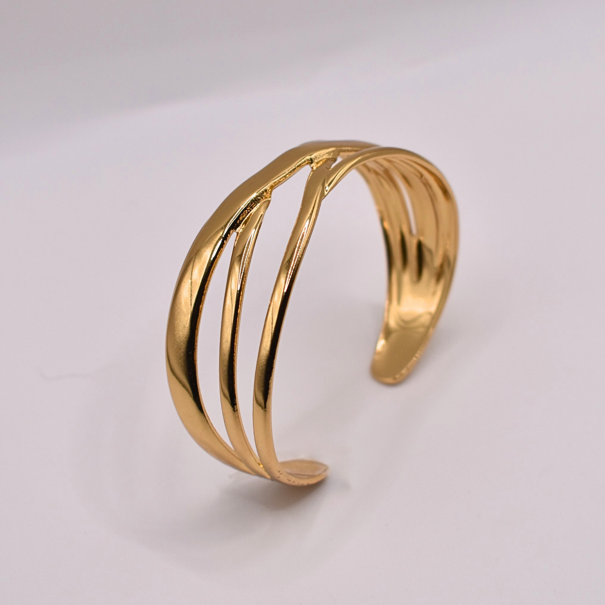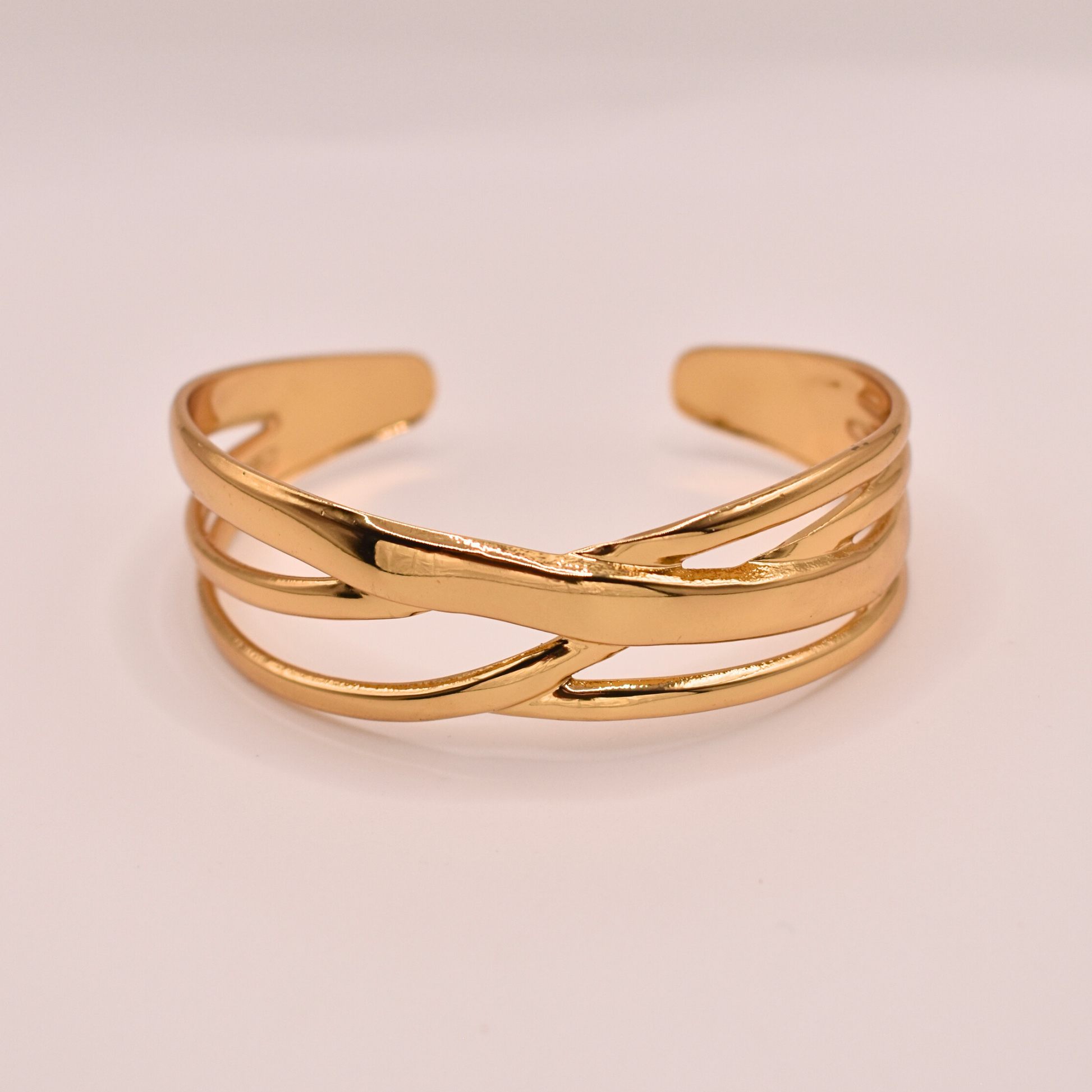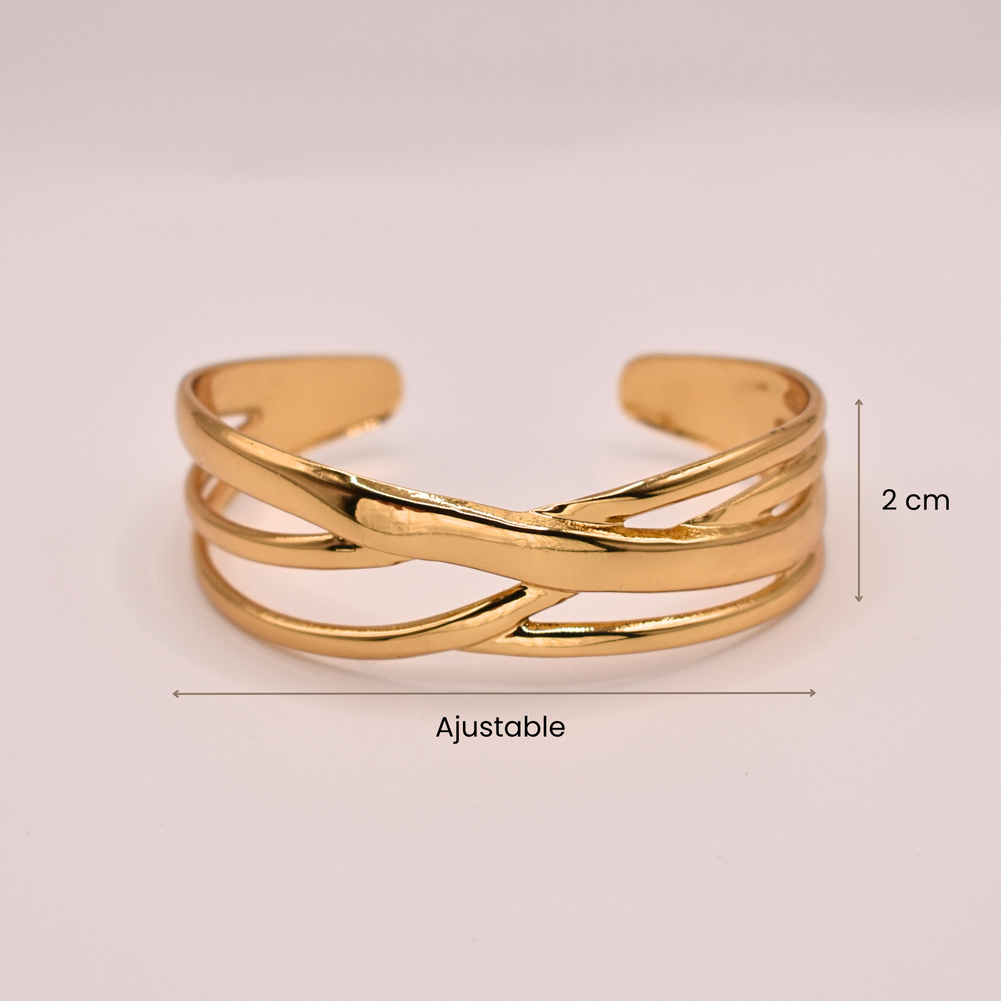 La pulsera Alcide en tono dorado presenta un diseño entrelazado que simboliza la unión y la elegancia. Un clásico atemporal que complementa cualquier outfit.