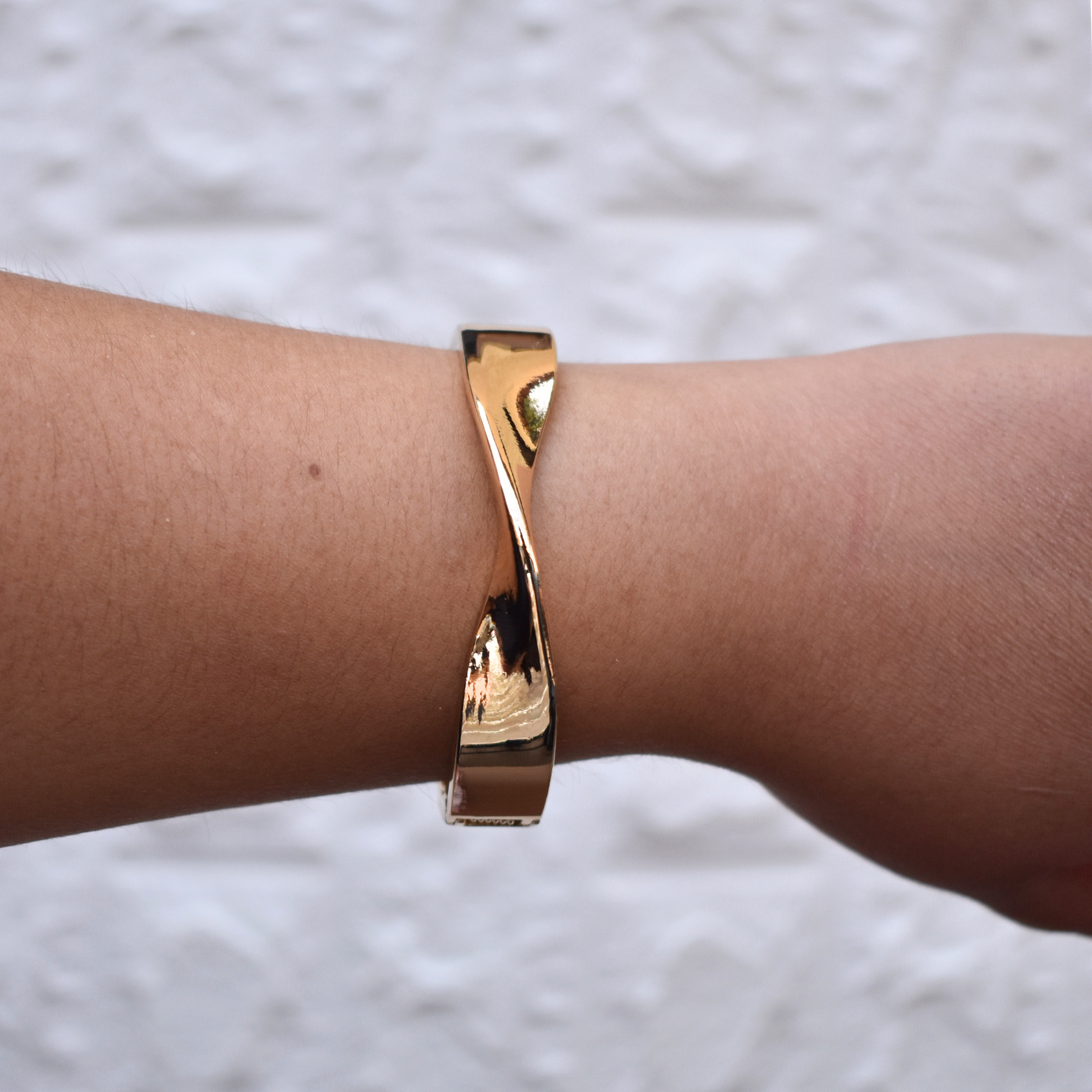 La pulsera rígida chunky Amara tiene un diseño fruncido que añade textura y estilo. Disponible en dorado o plateado, es el complemento perfecto para un look moderno.