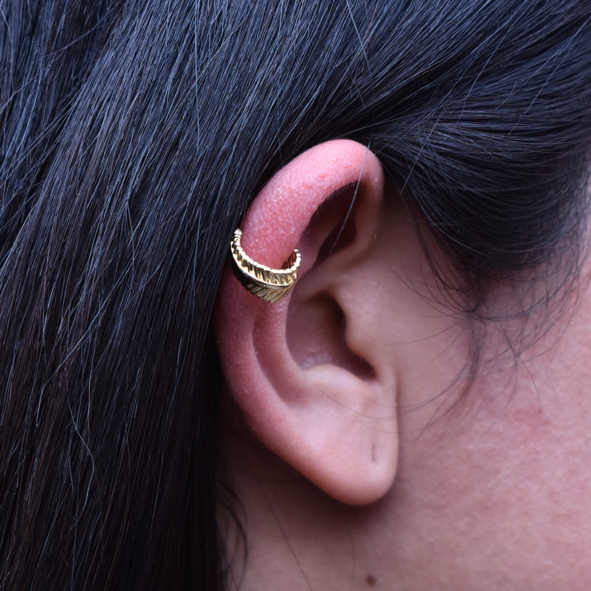 Inspirado en la naturaleza, el earcuff Amonet tiene un diseño en forma de hoja en dorado, ideal para un toque delicado y elegante.