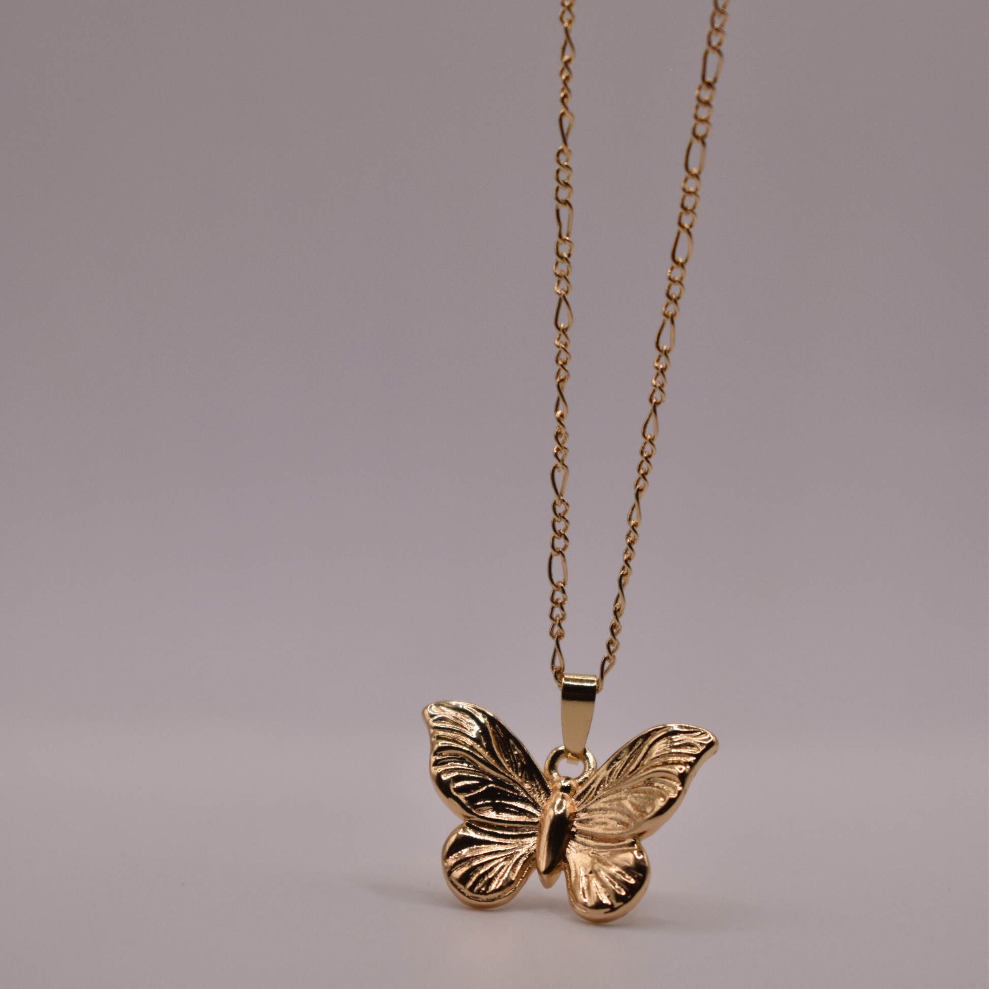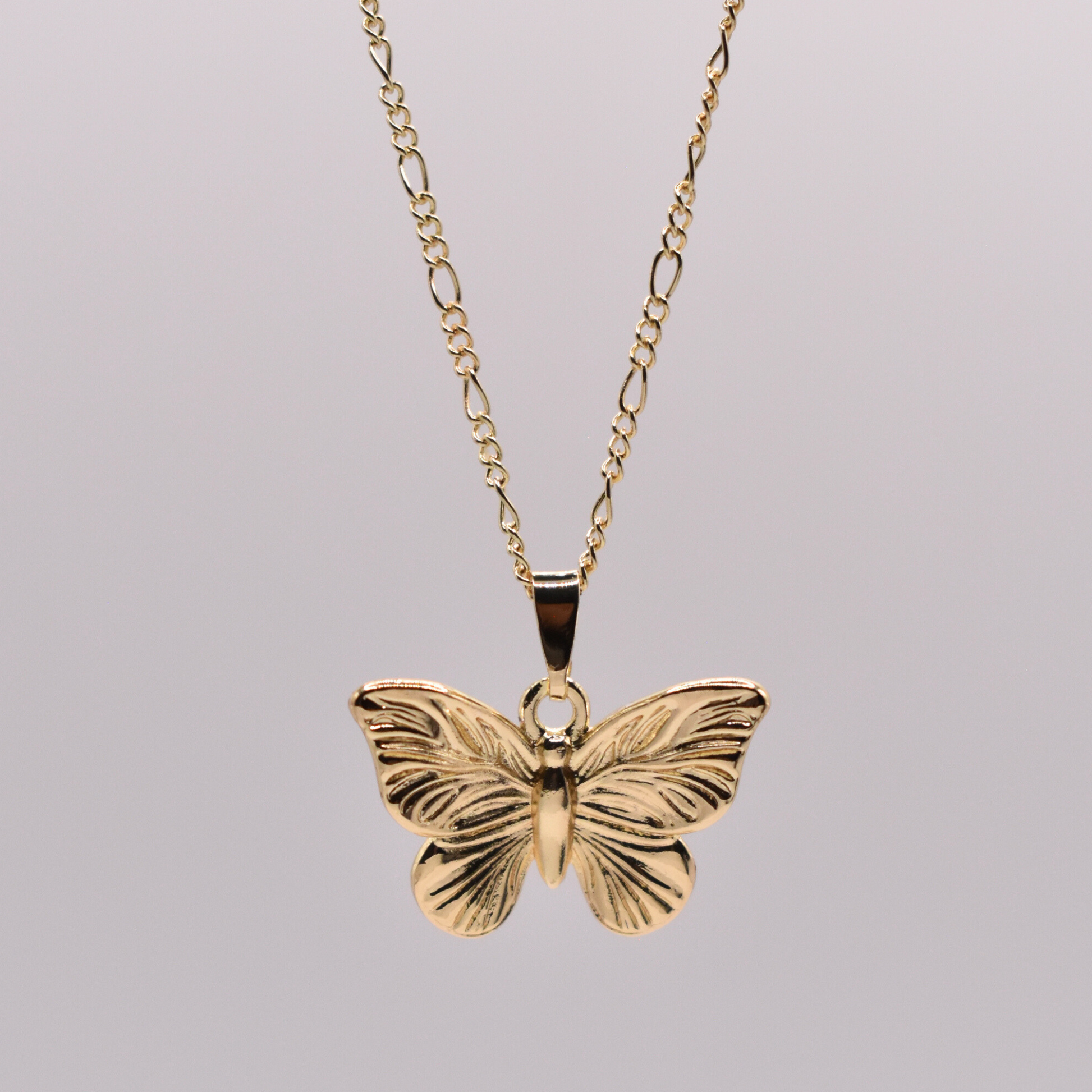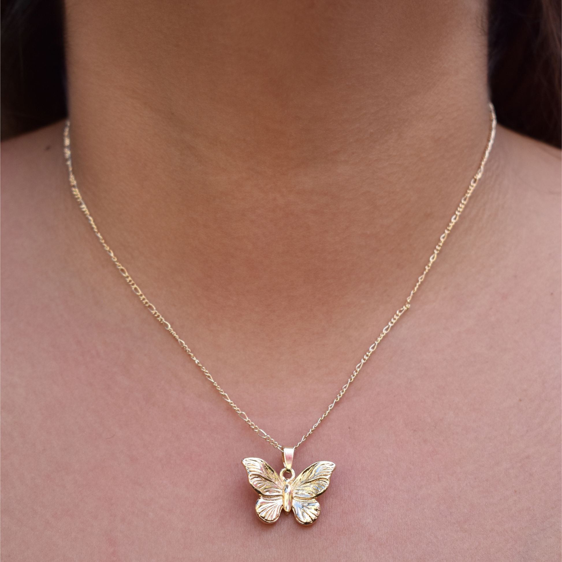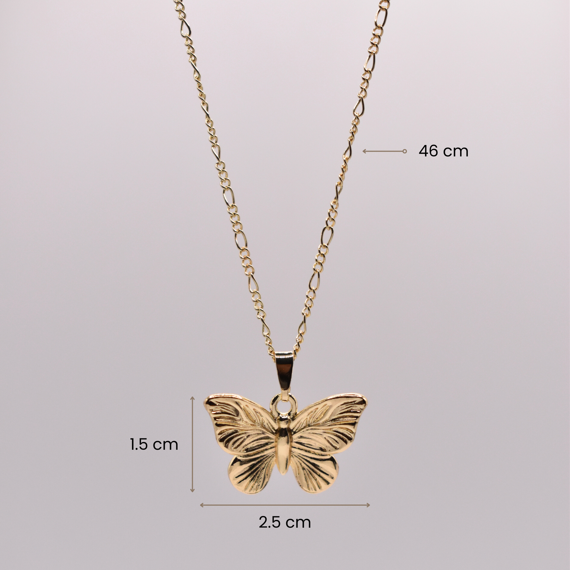 Amunet una cadena metálica con dije de mariposa, perfecta para mezclar con collares de eslabones o aretes para un toque femenino y actual.