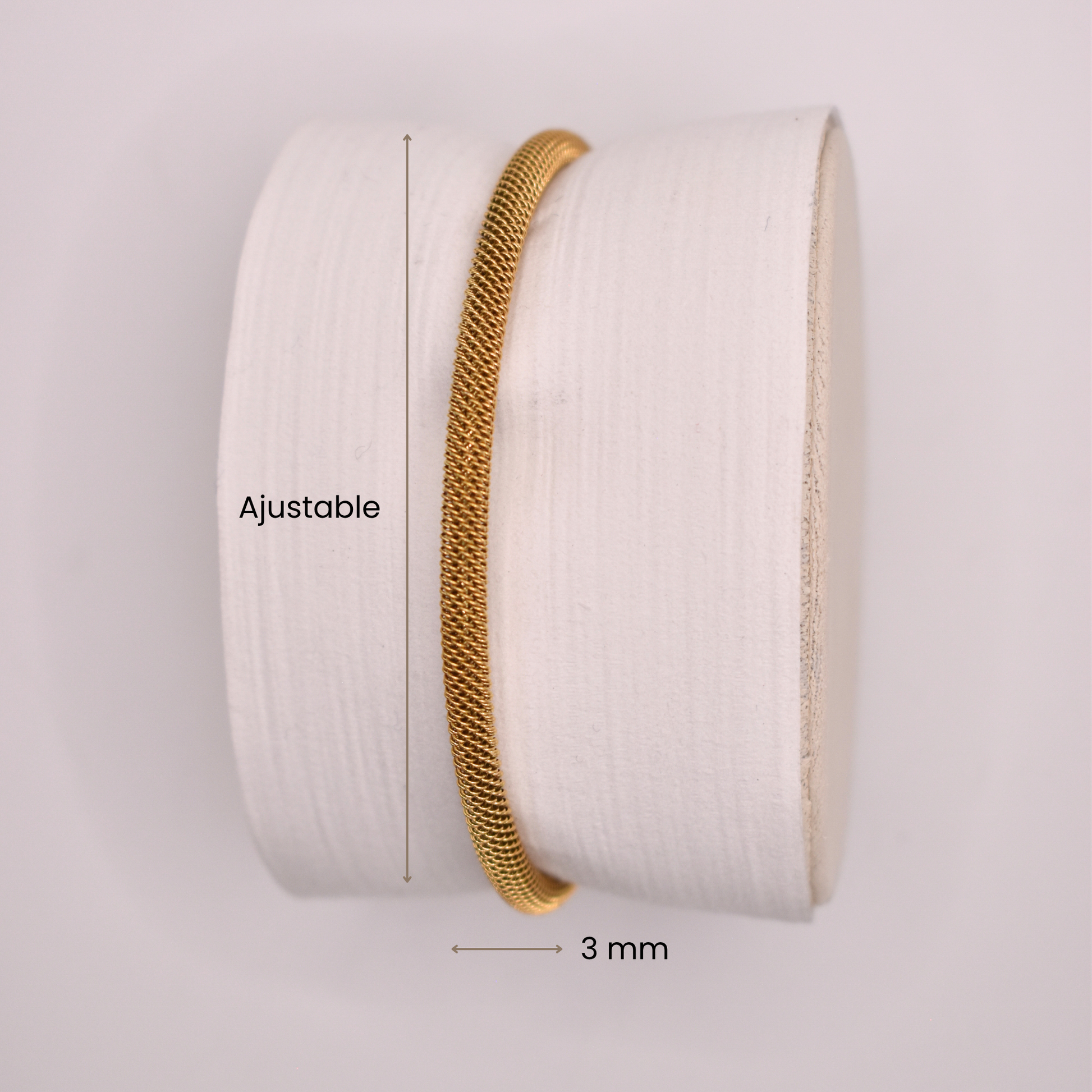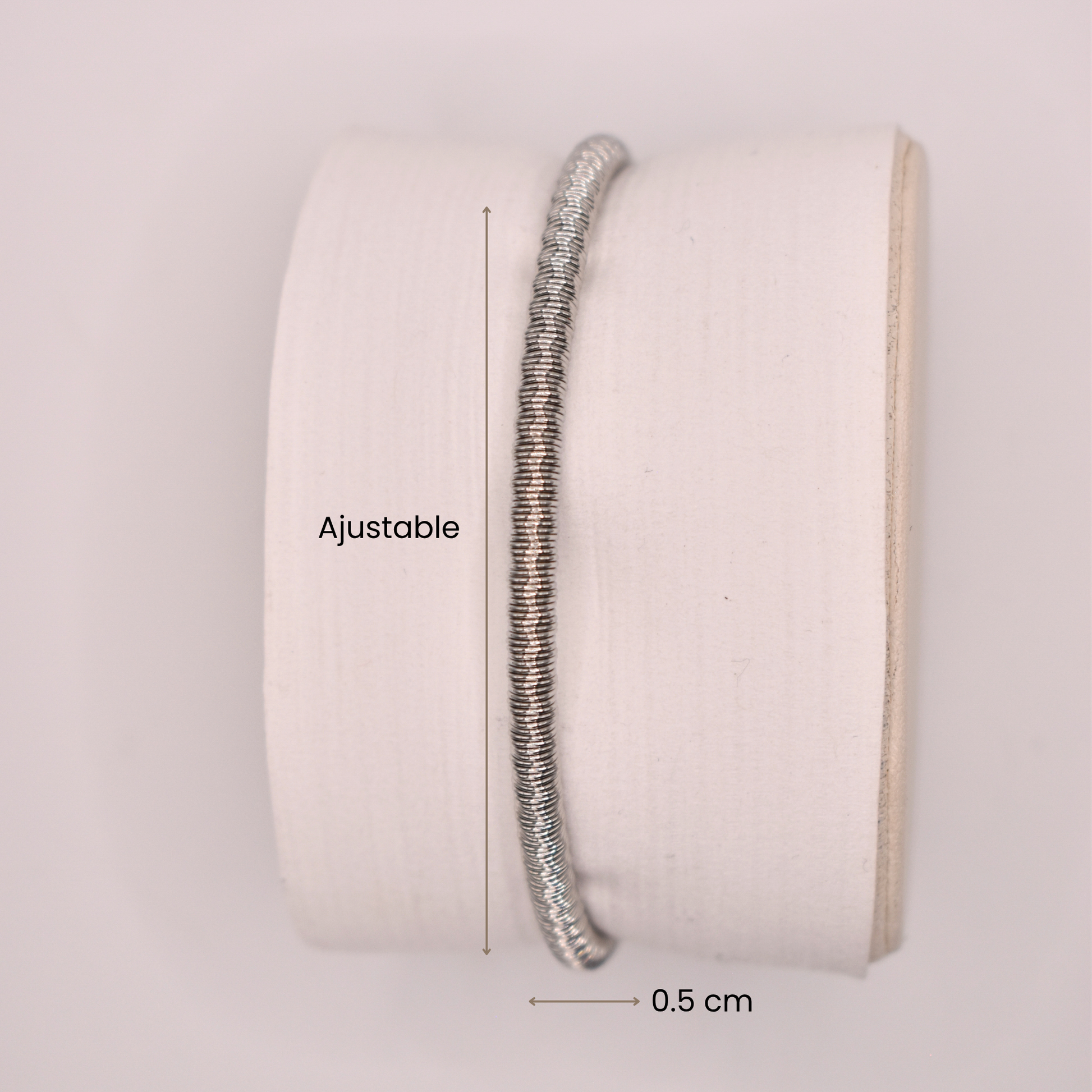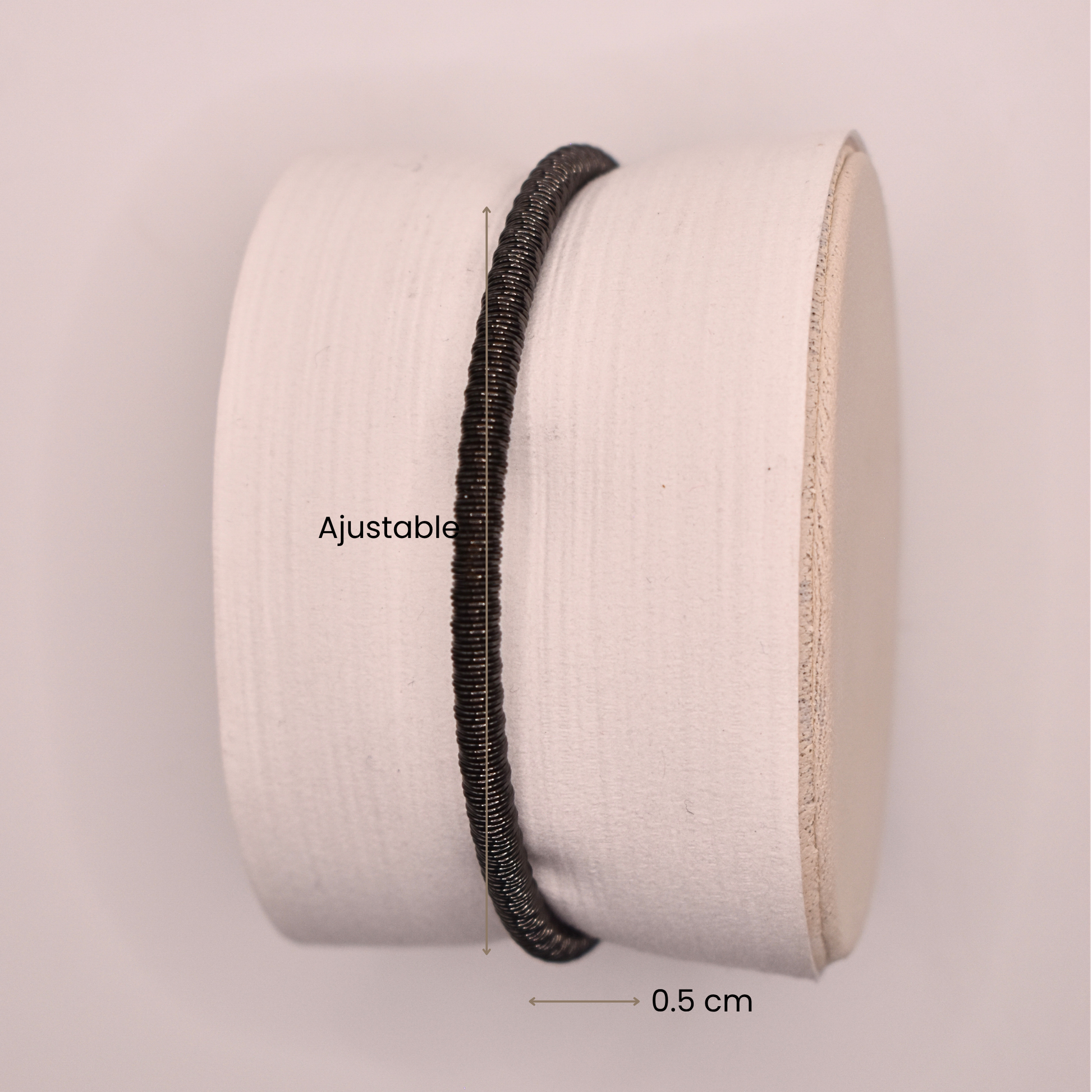 La pulsera ajustable Antíope es un básico unisex disponible en negro, dorado y plateado. Su diseño delgado y elegante se adapta perfectamente a la muñeca.