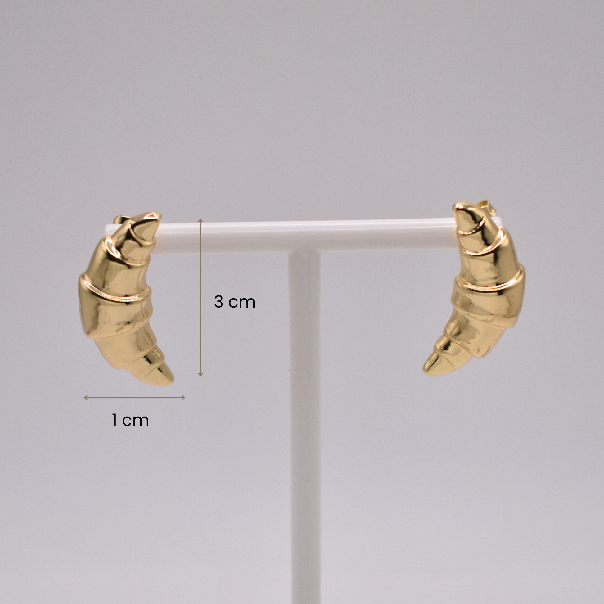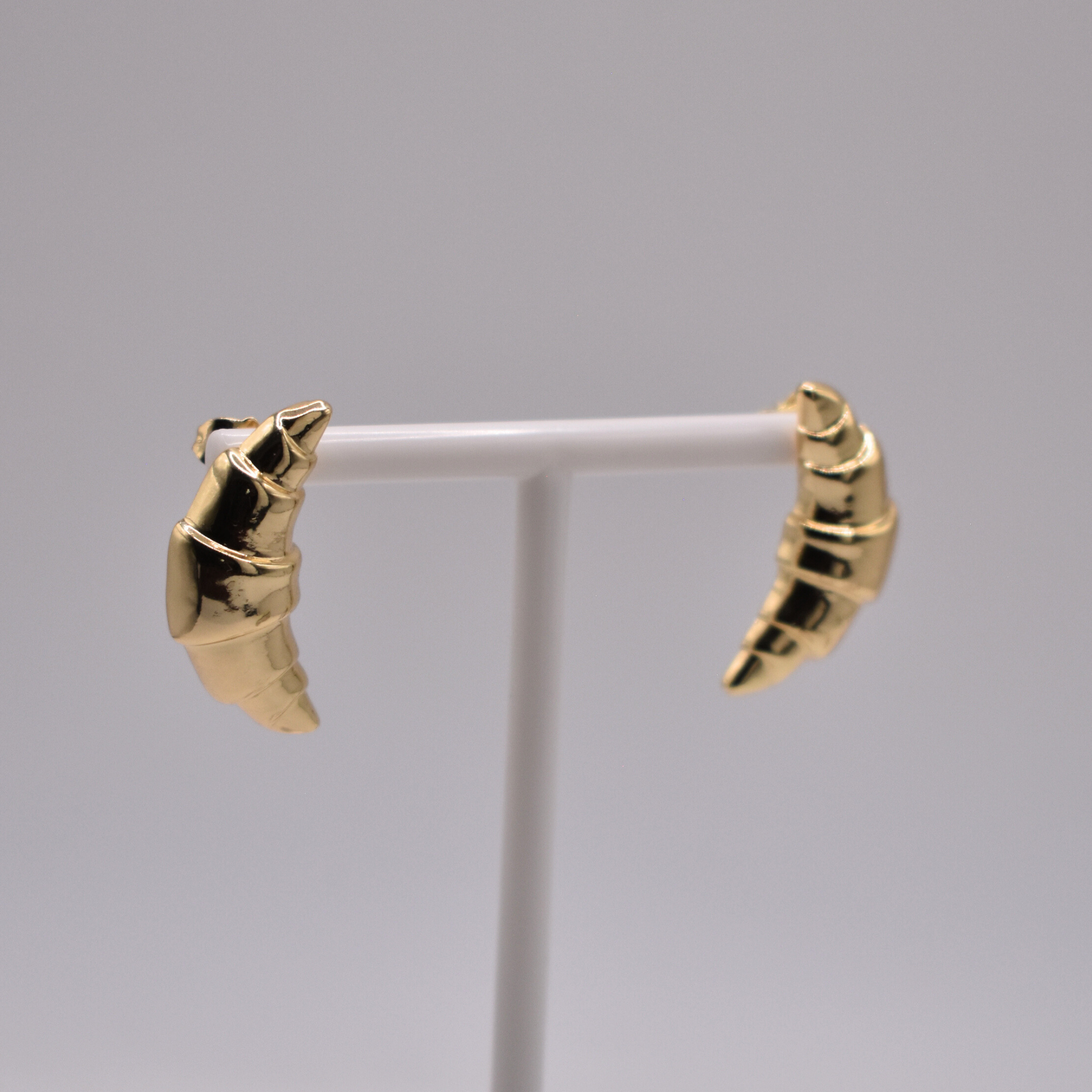 Inspirados en la tendencia gourmet, los aretes Apolo en dorado tienen forma de croissant, ideales para un look divertido y chic.