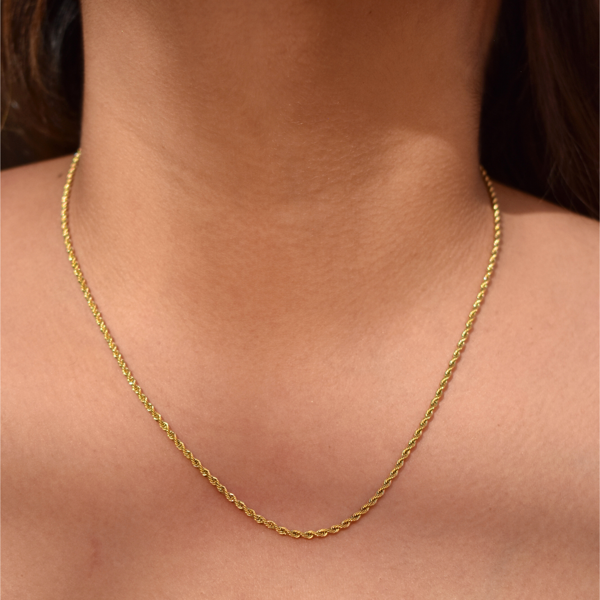 Cadena torzal fina en dorado; Ava es el básico para looks delicados o sumada a collares con dije serían el match perfecto.