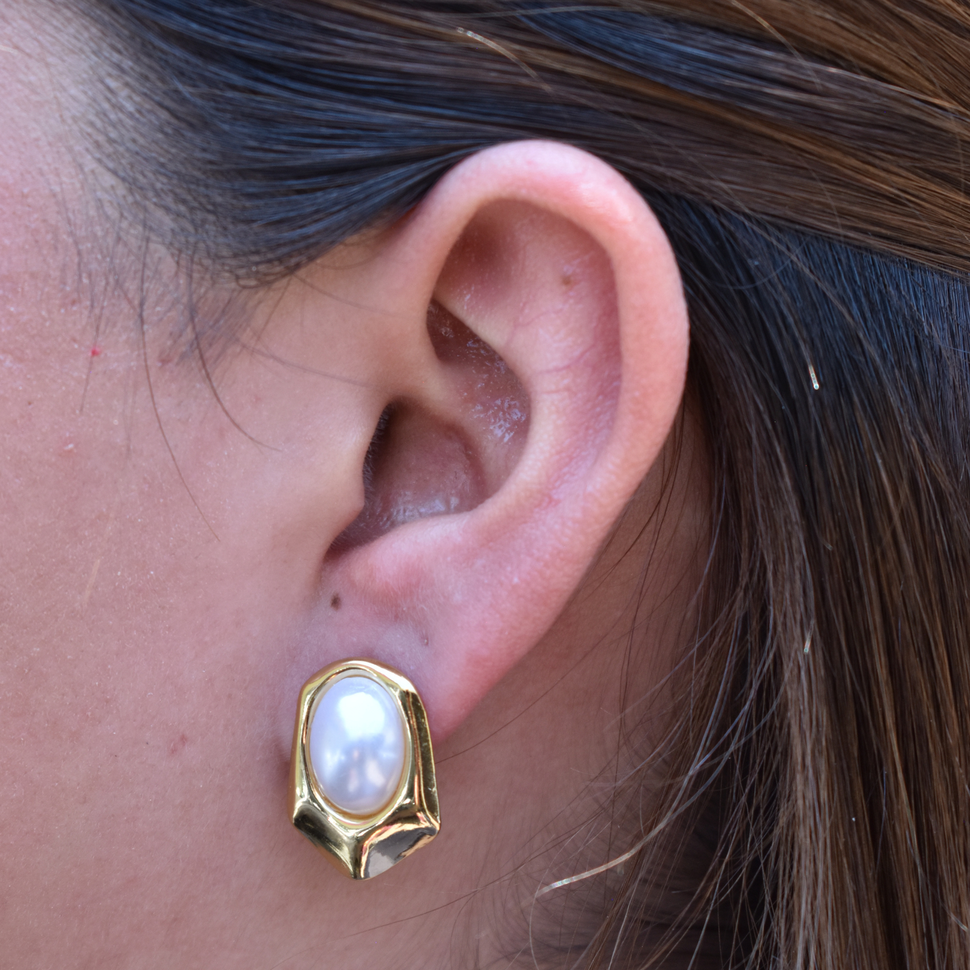 Los aretes Basilisa combinan formas irregulares con un centro de perla, ideales para un look artístico y sofisticado.