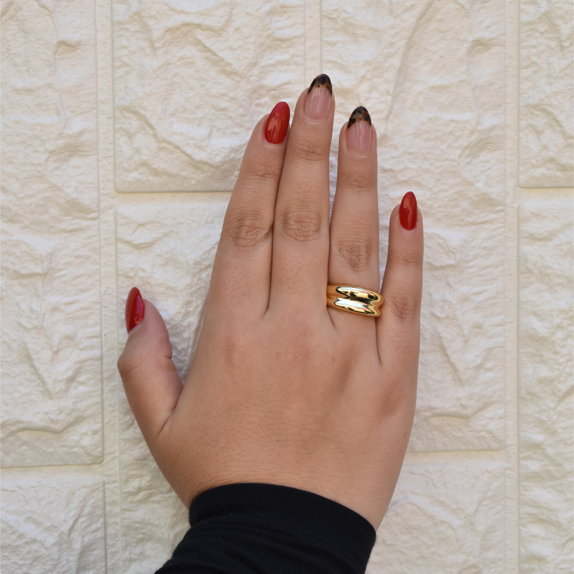 Bastian es un anillo chunky doble línea, con estilo curvo y moderno, el complemento ideal para tu colección personal.