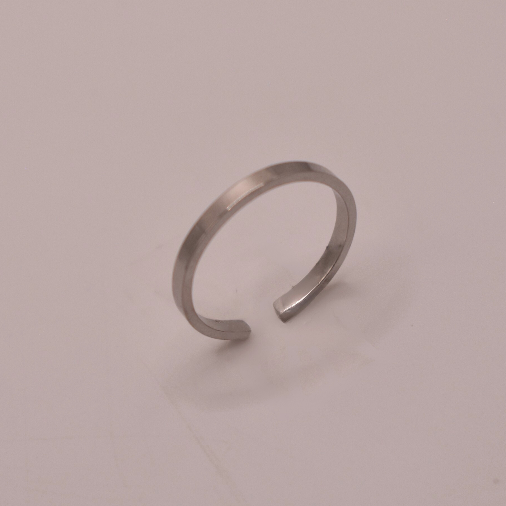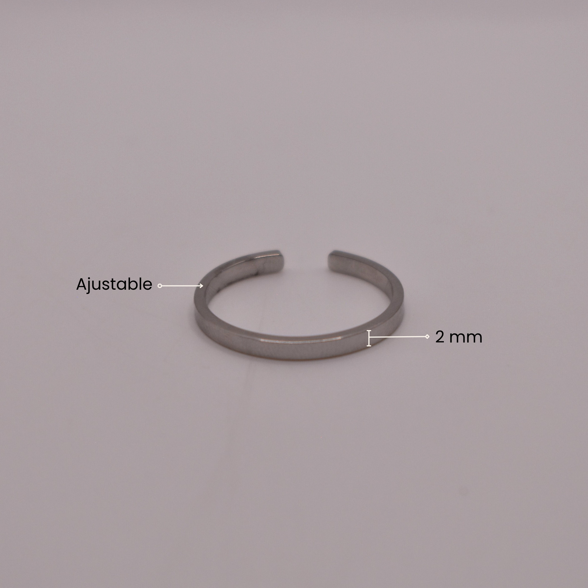 Delgado, liso y plateado, esencial para minimalistas, va perfecto con layering de anillos o relojes.