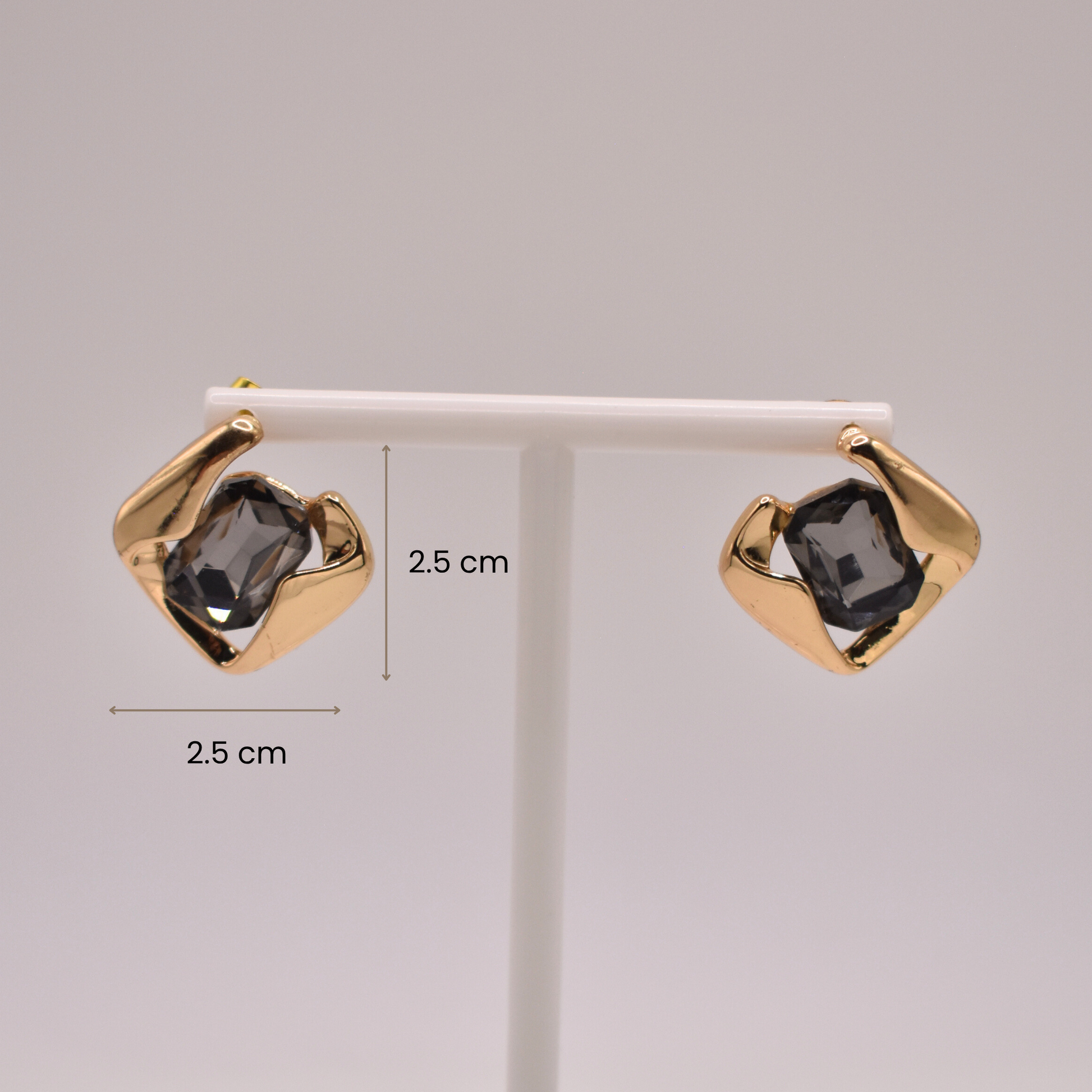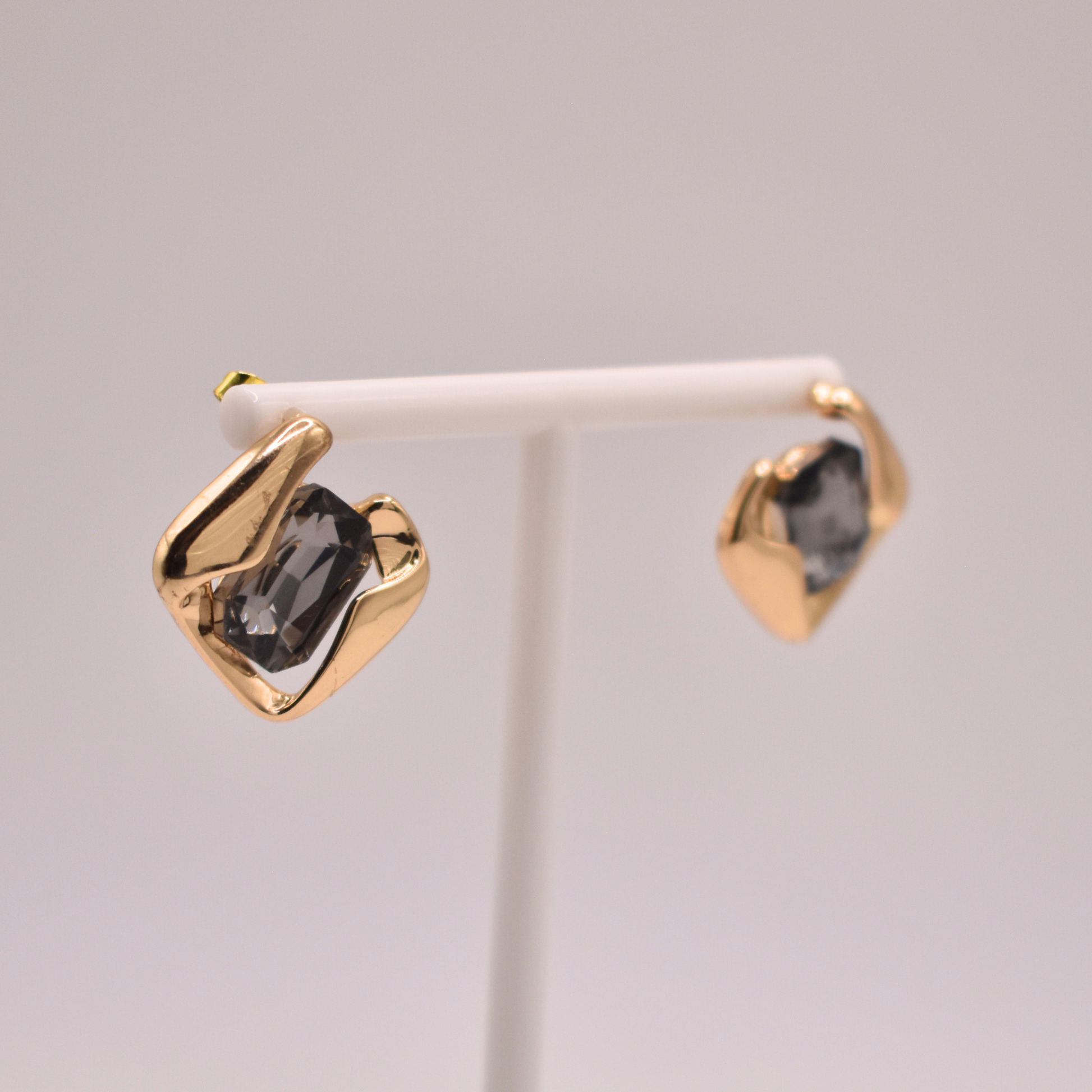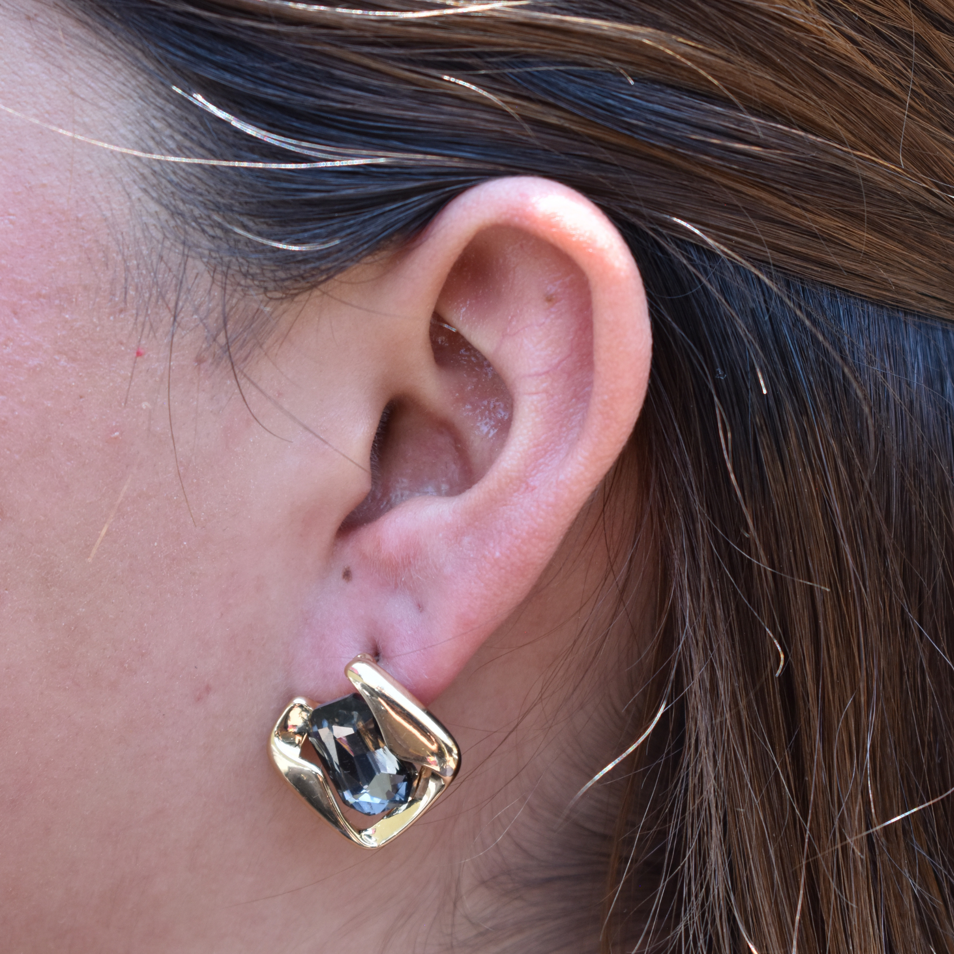 Los aretes Calipso en dorado presentan una piedra negra al centro, ideales para un look con contraste y elegancia.