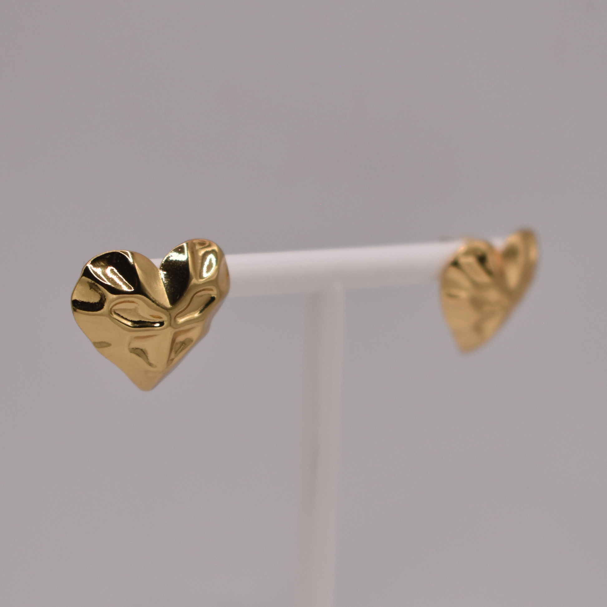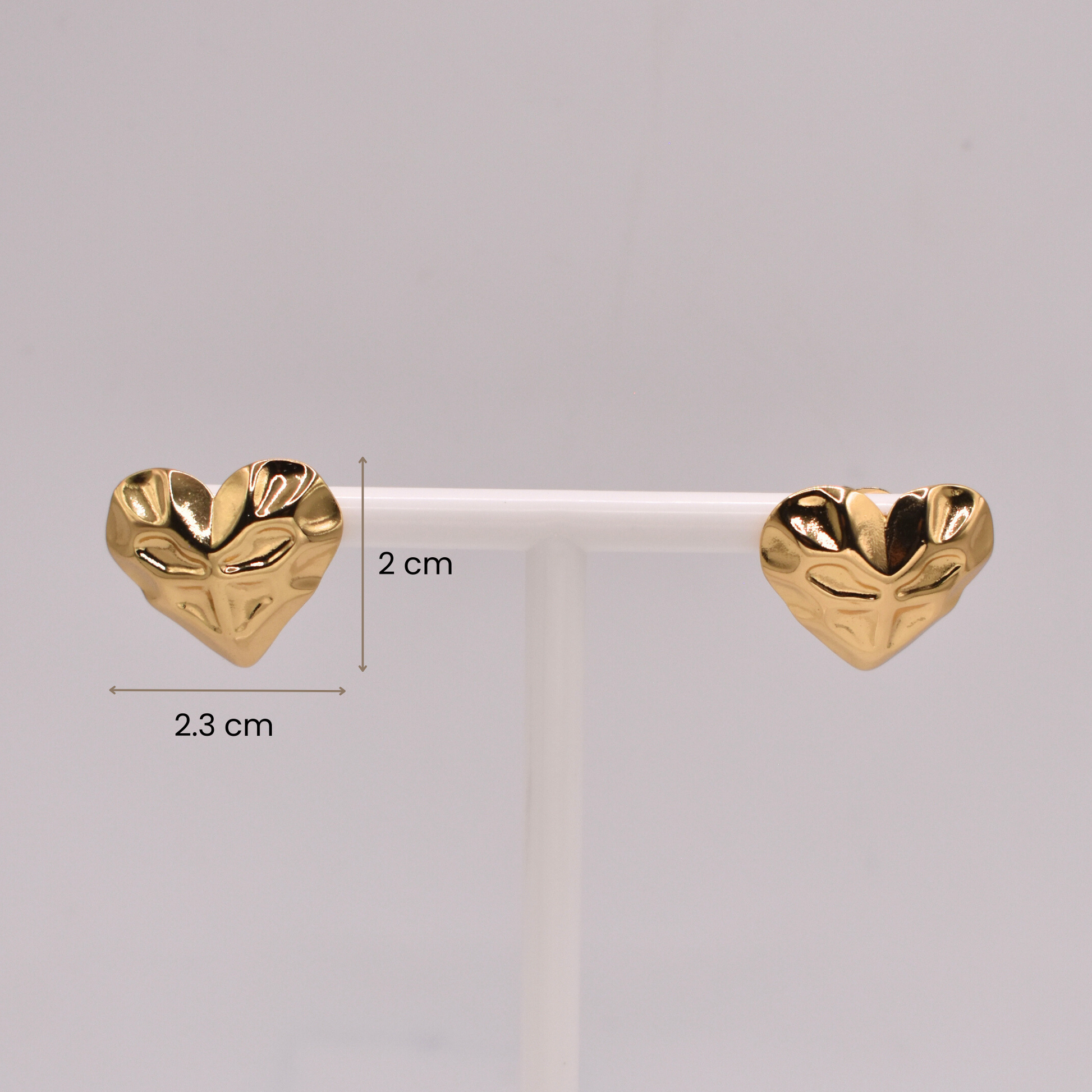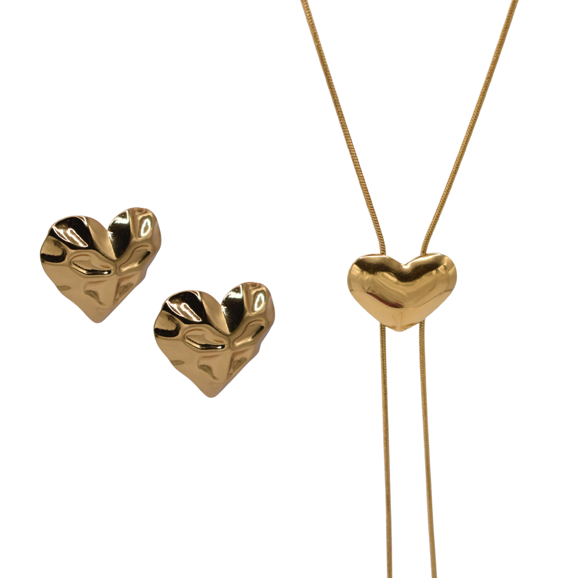 Este combo ideal para looks románticos contemporáneos une aretes Afrodita de corazón orgánico pulido con Chara lineal en dorado o plateado, perfecto para cenas o brunch.