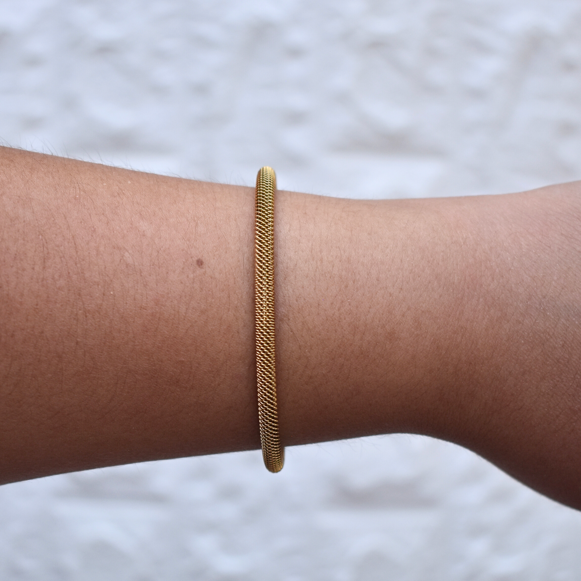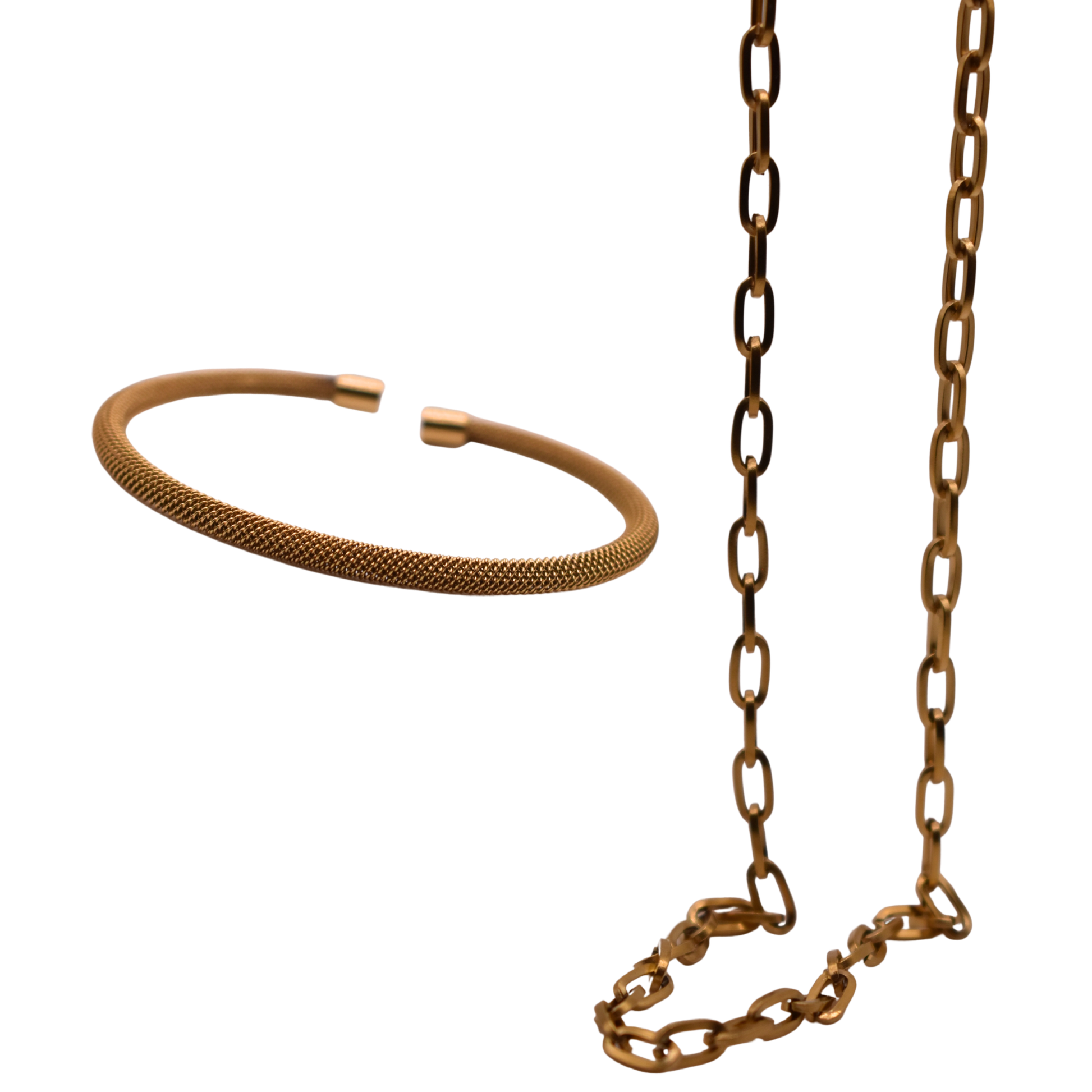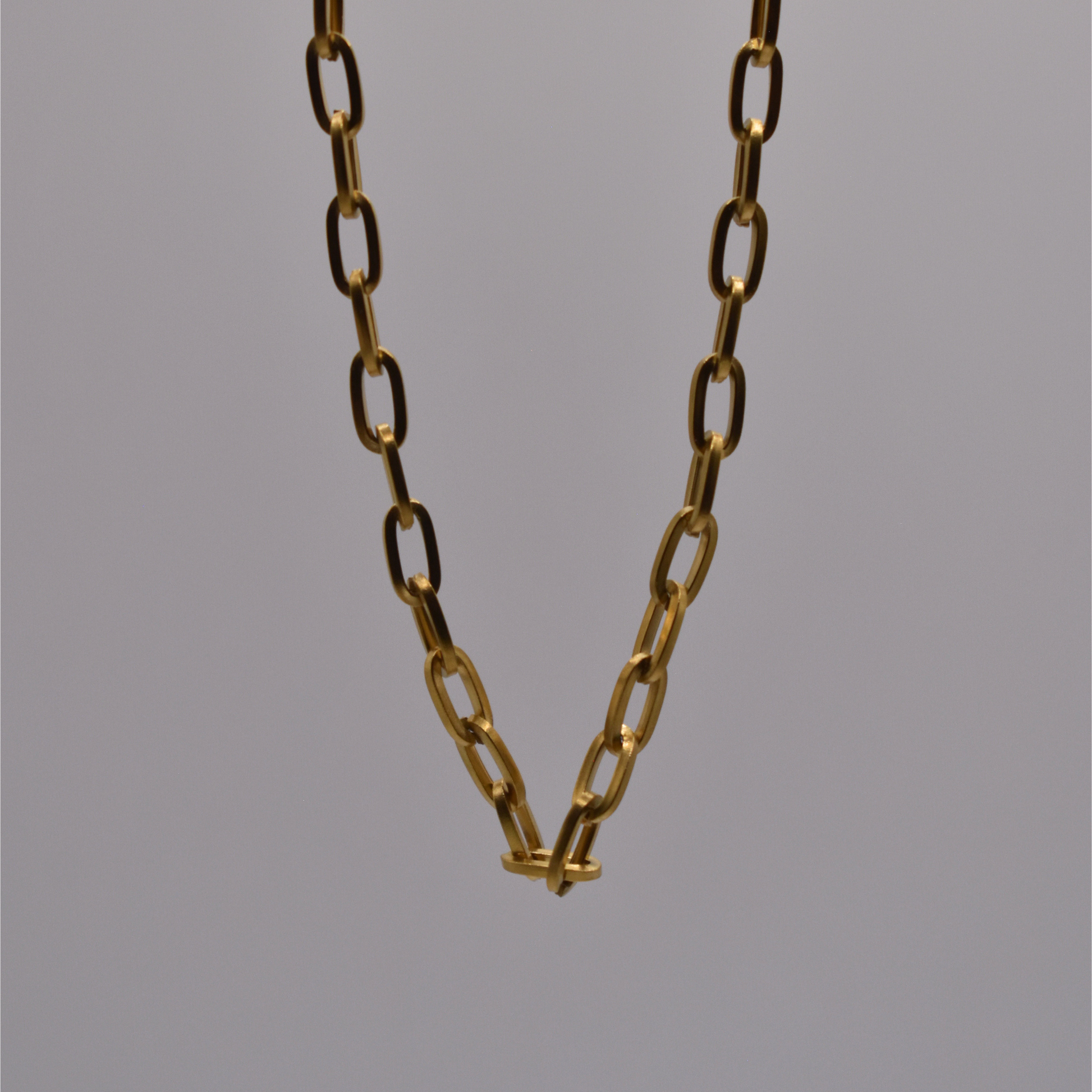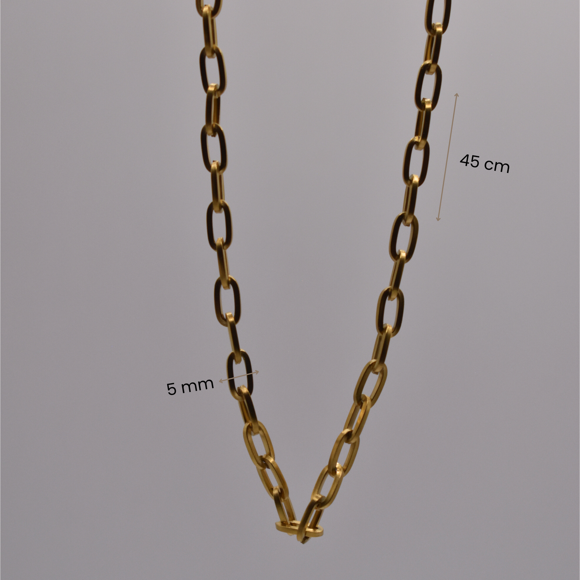 Streetwear unisex define este combo Antíope + Sagira con pulsera delgada en dorado y cadena paper clip dorada, básica y adaptable.