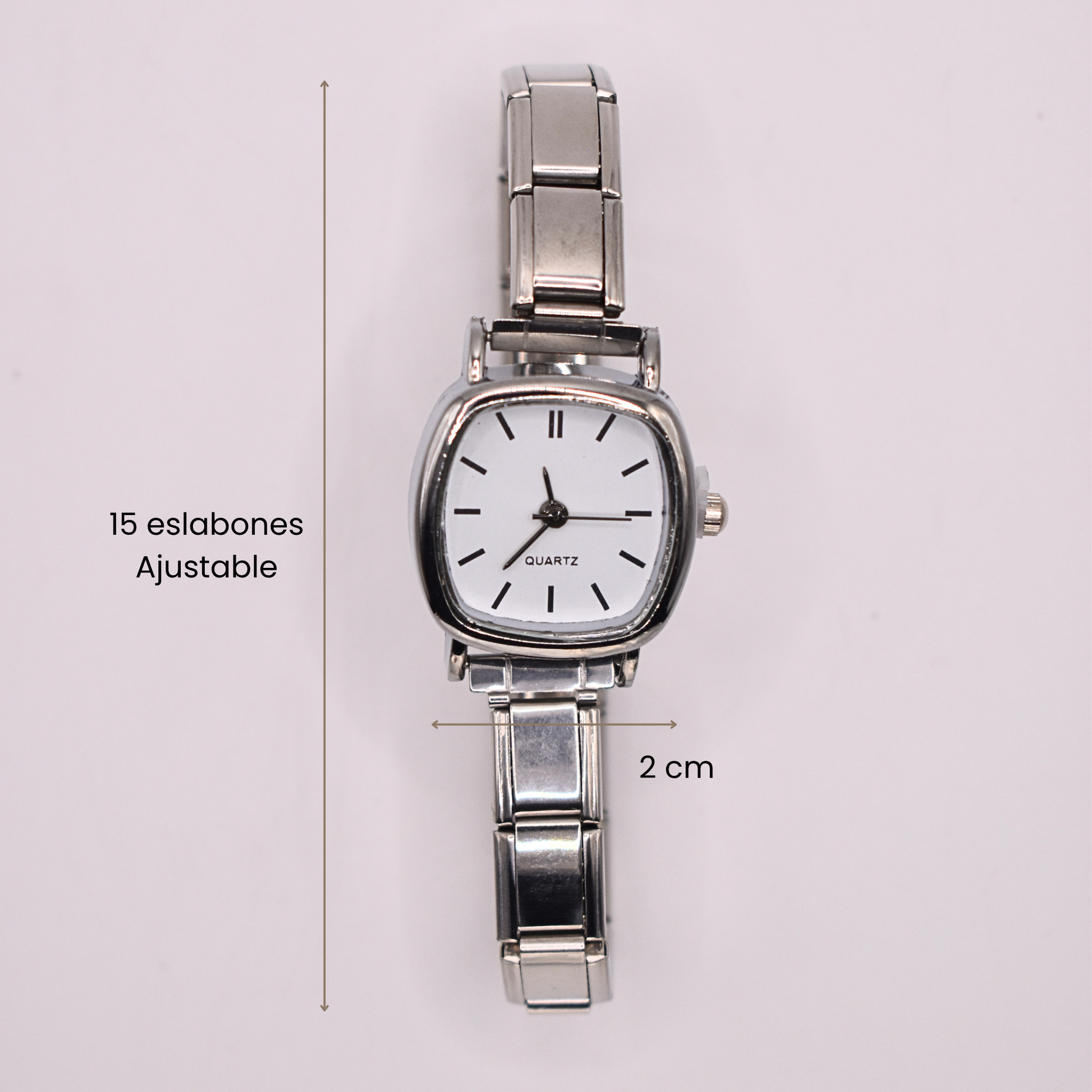 Dale un toque sofisticado a tu outfit con el reloj Cósima de brazalete italiano, con diseño cuadrado y eslabones ajustables para un fit perfecto.
