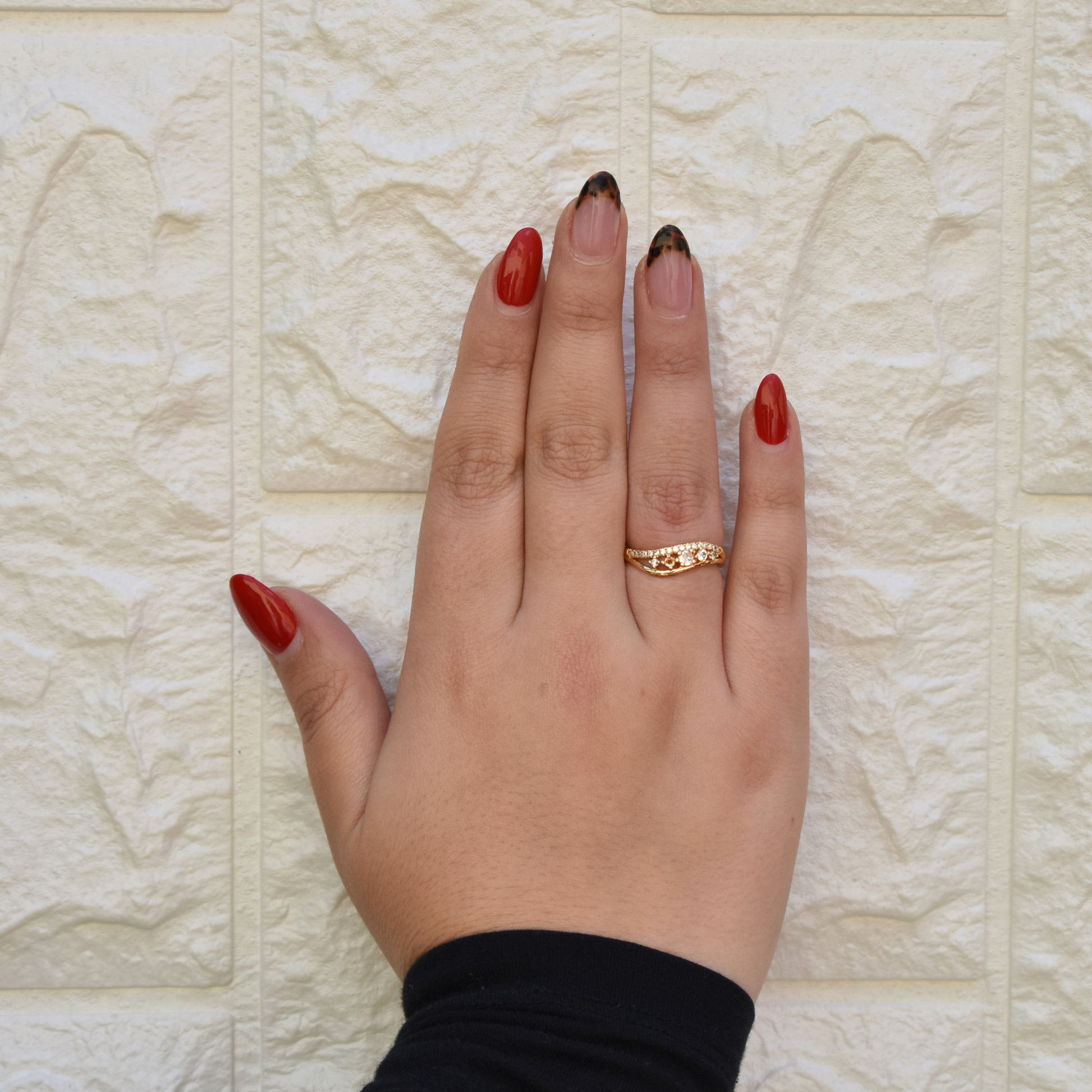 Asimétrico con efecto ascendente y piedras en medio, moderno y llamativo, Damian es ideal para looks con accesorios minimalistas.