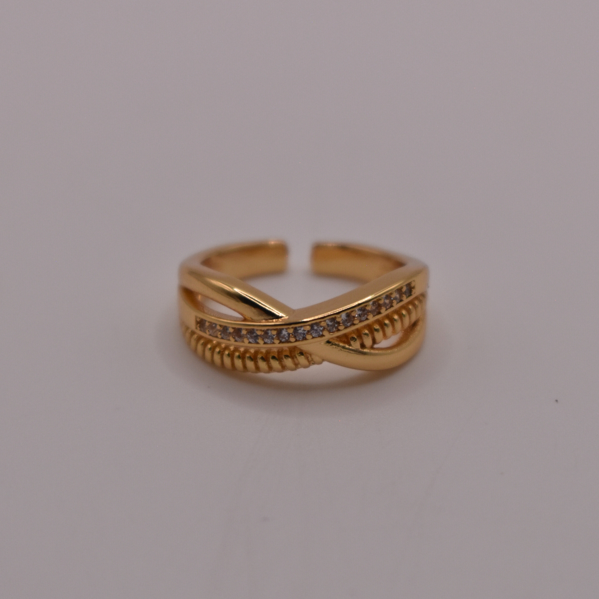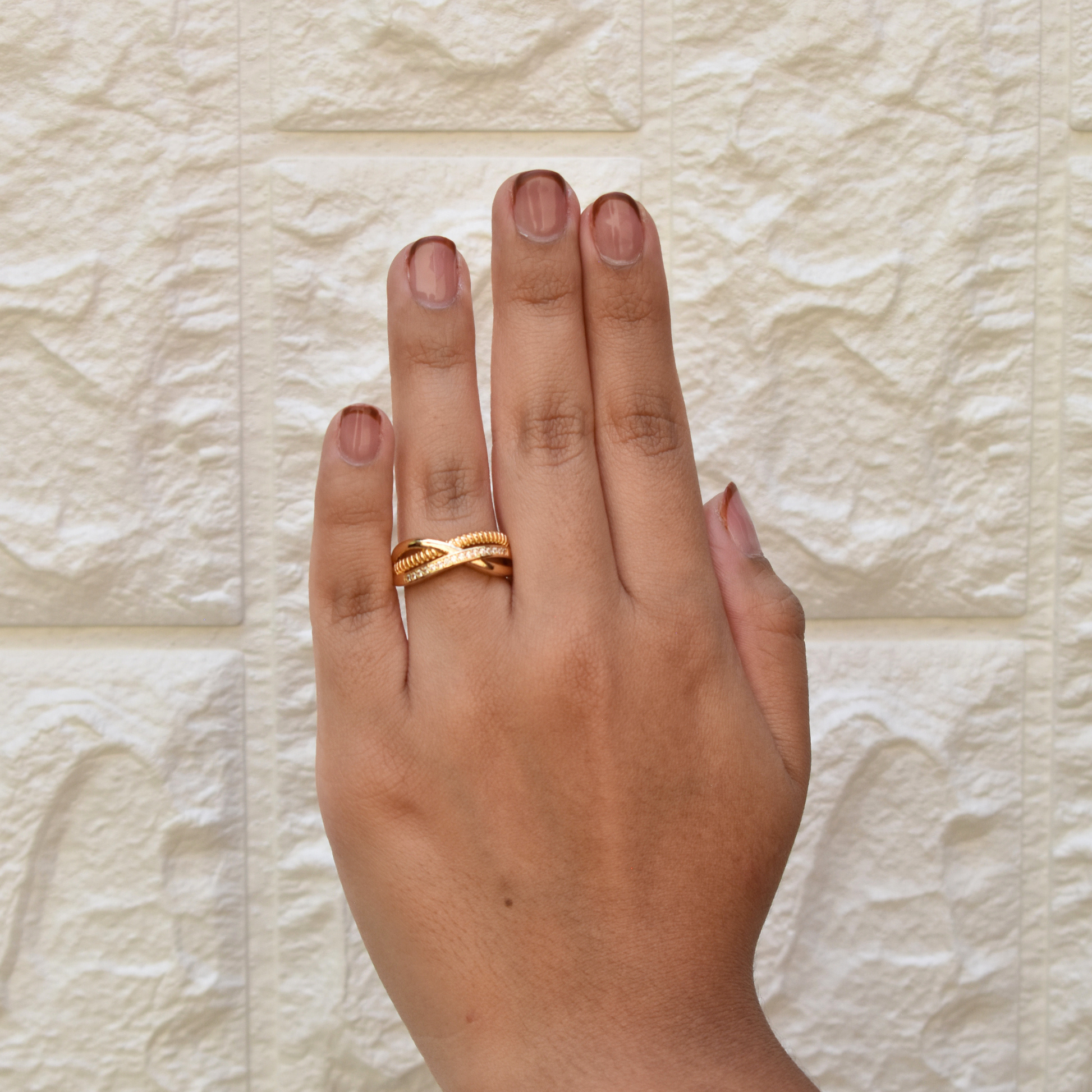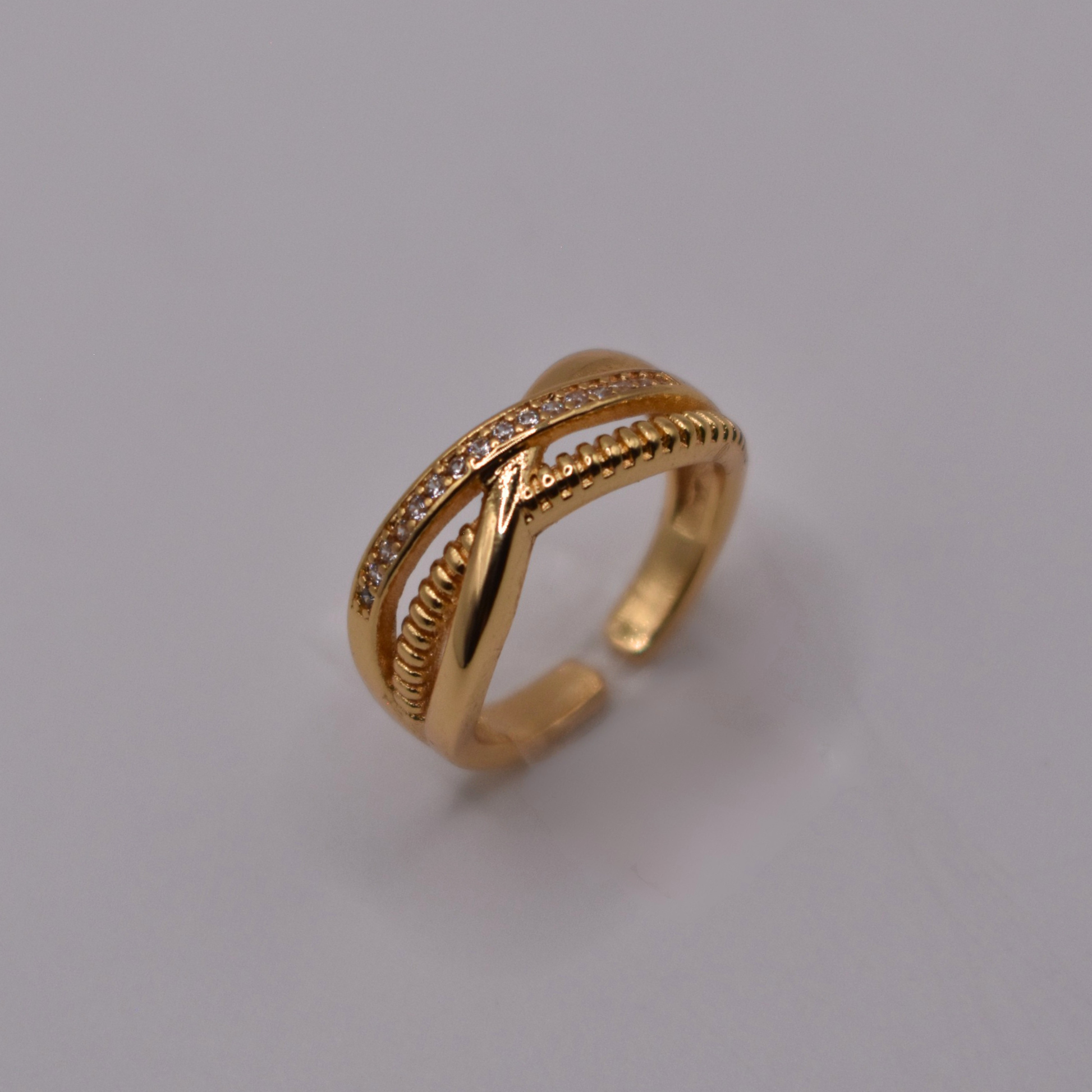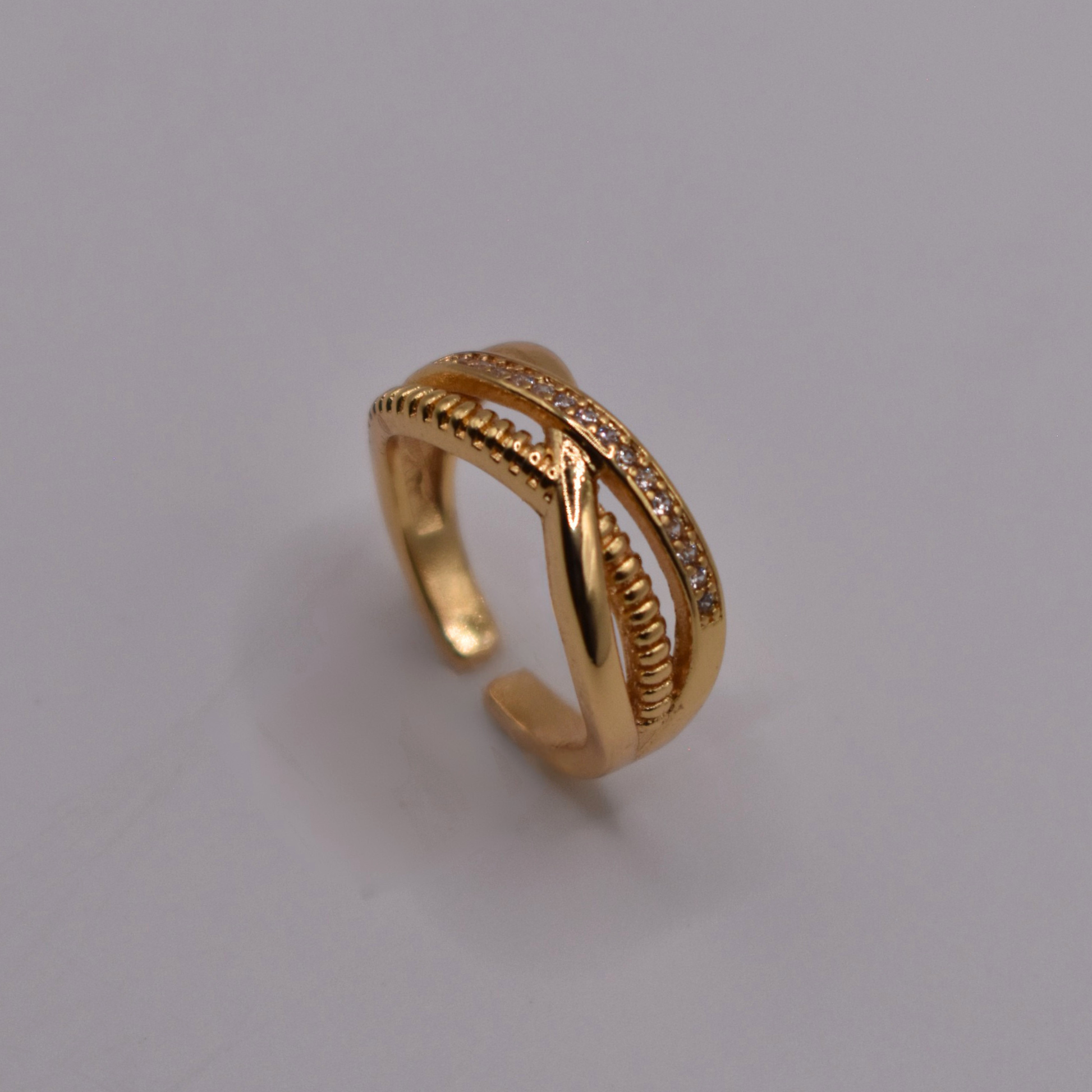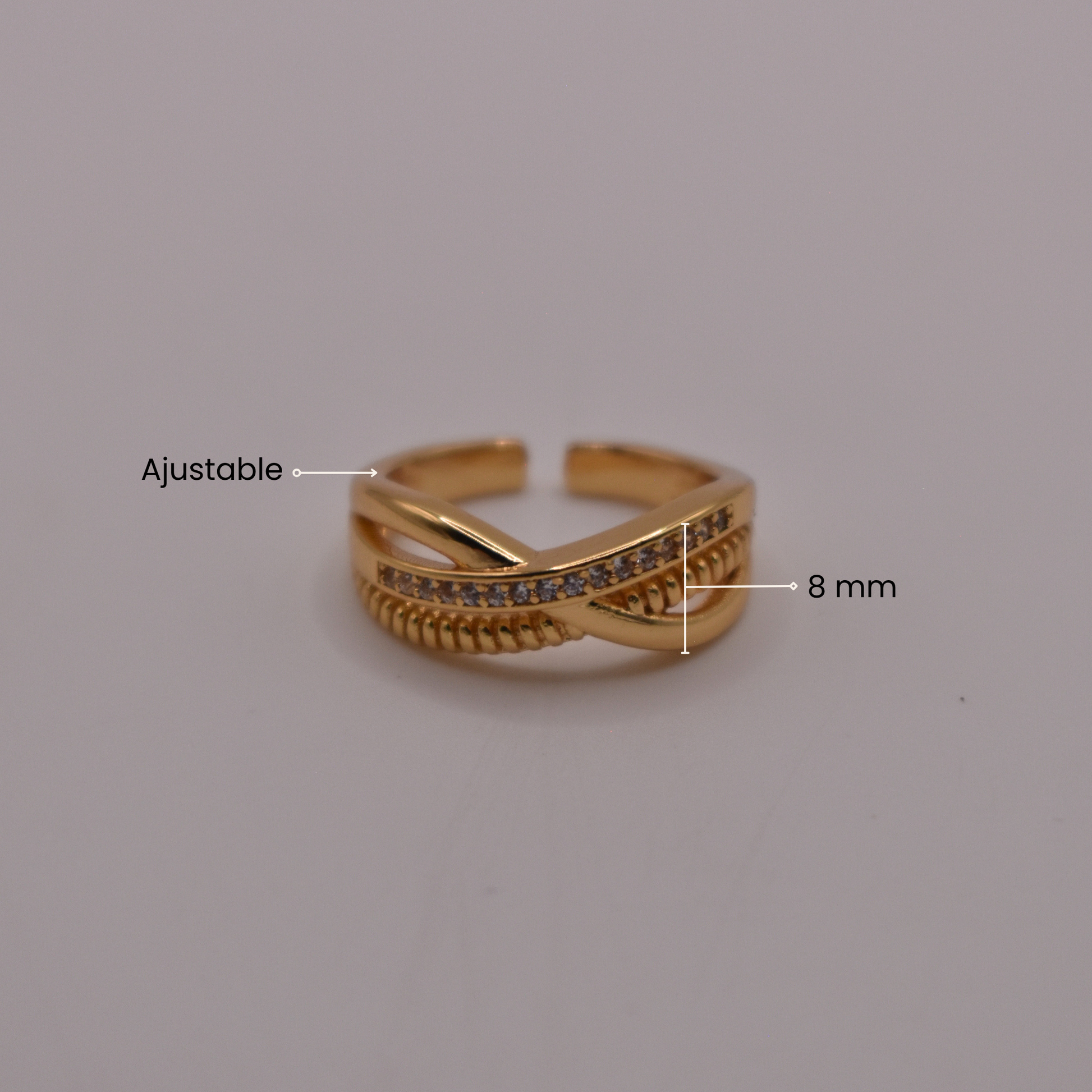 Triple anillo con piedritas, delicado y versátil, combina a Dariana con pulseras finas y collares sencillos.