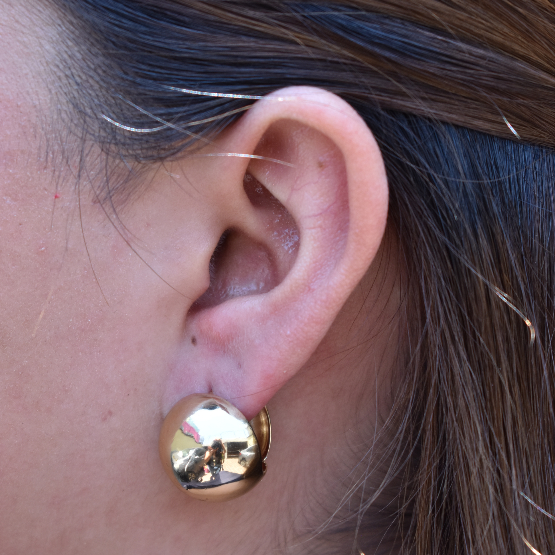 Los aretes Donna presentan un diseño en forma de bola dorada, ideales para un look clásico y elegante.