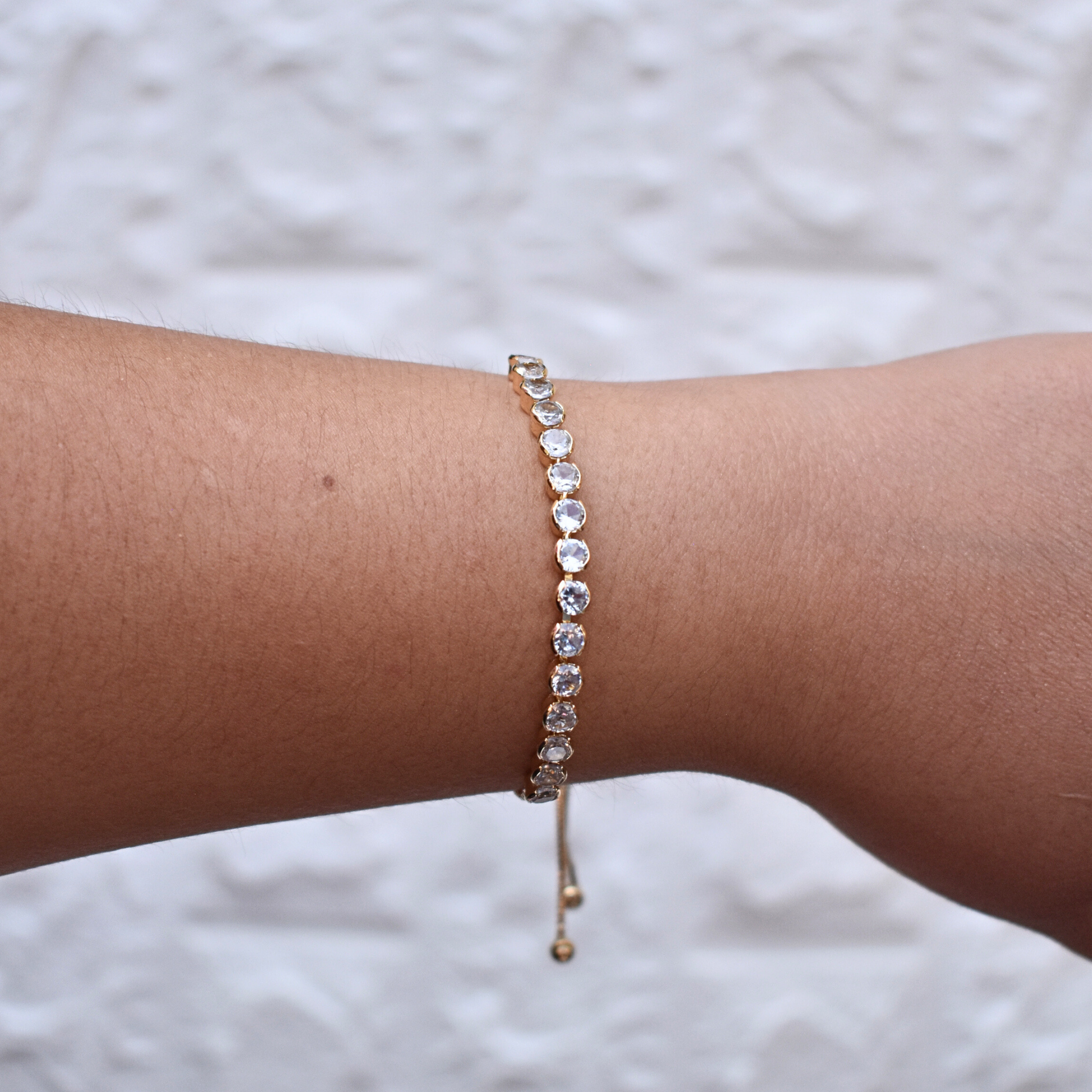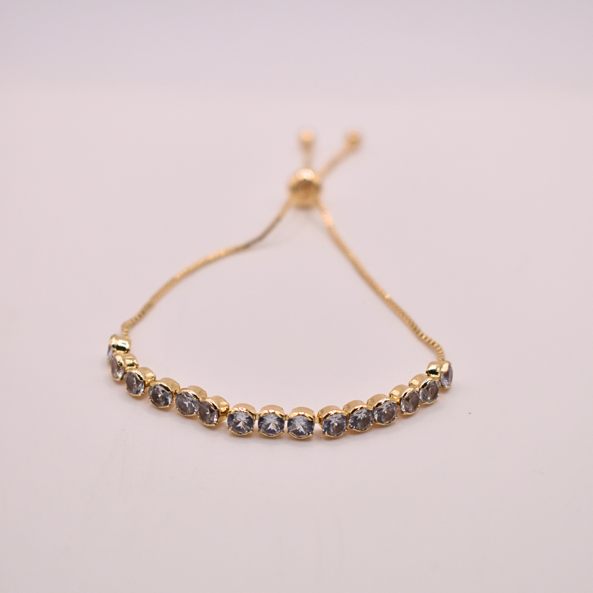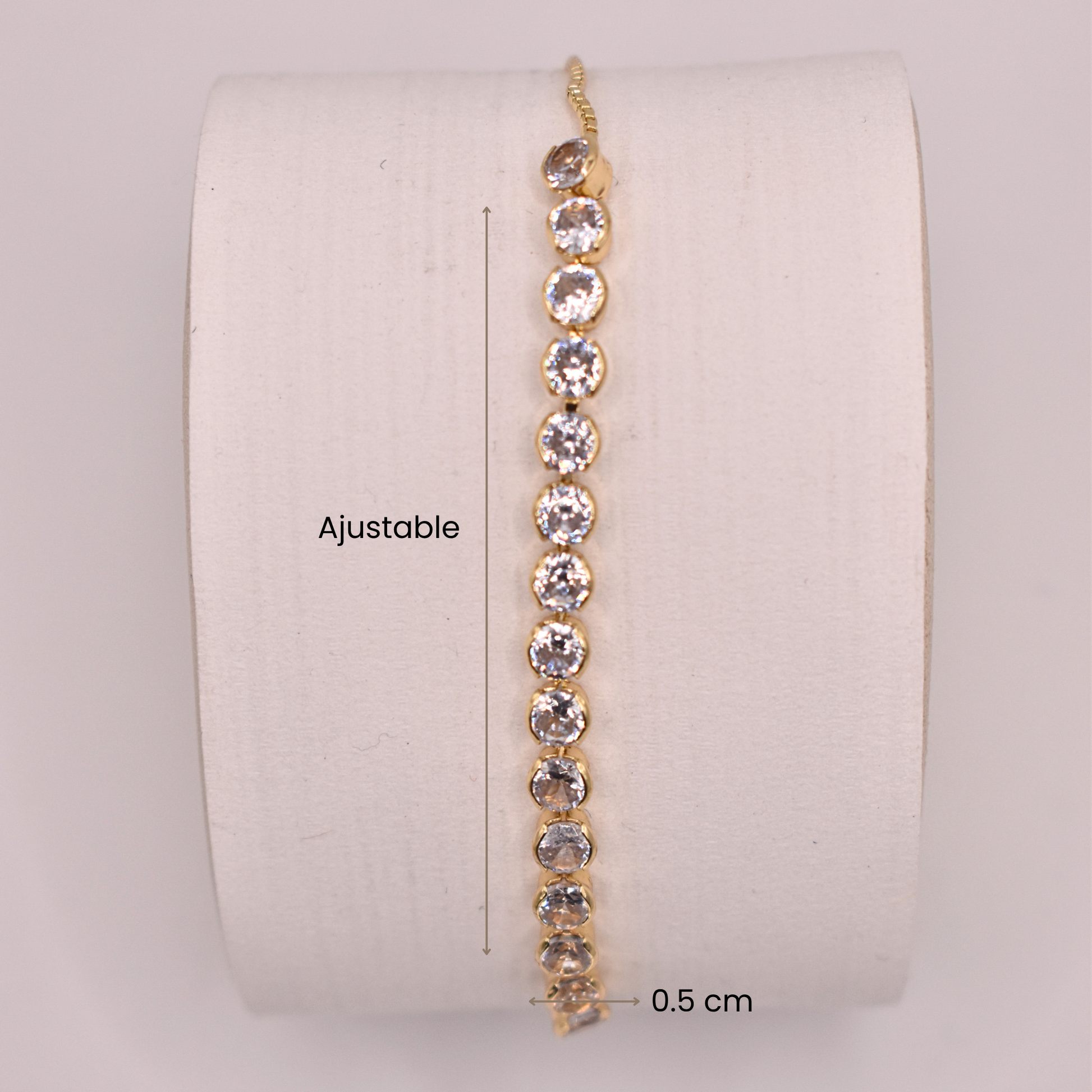 Brilla con la pulsera ajustable Egan, adornada con cristales circulares en dorado para un look elegante y versátil.