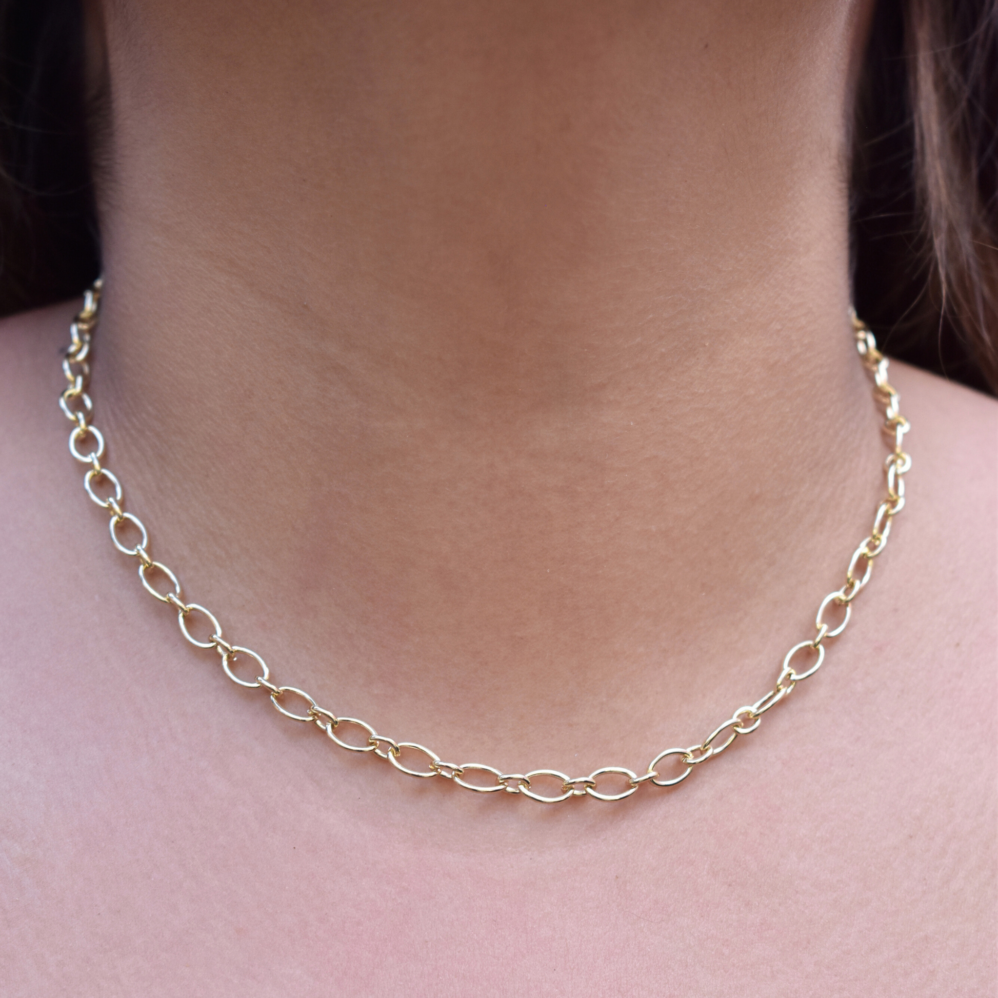 Eleusis es la cadena con patrón ovalado, ideal para tus looks vintage modernos y estructurados.