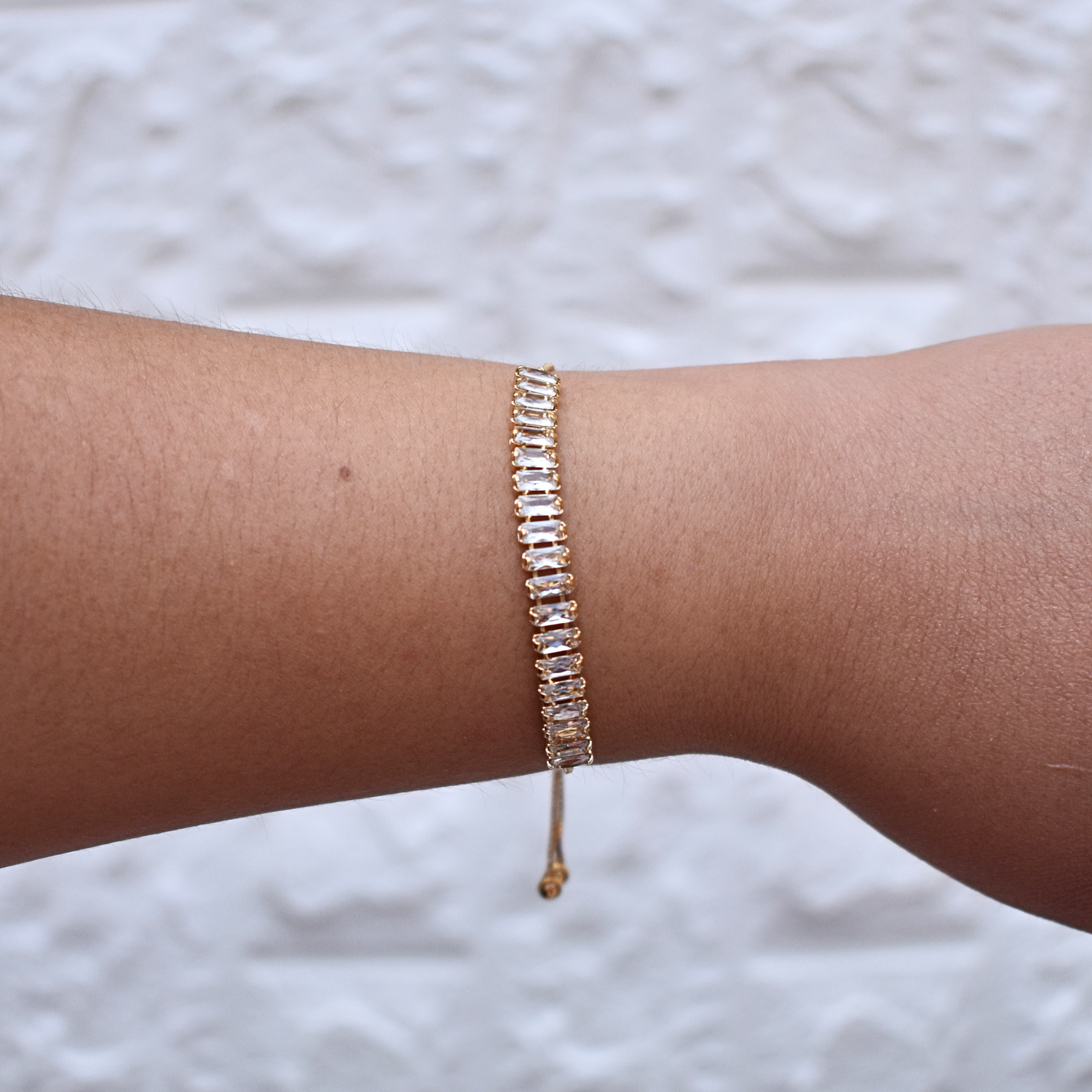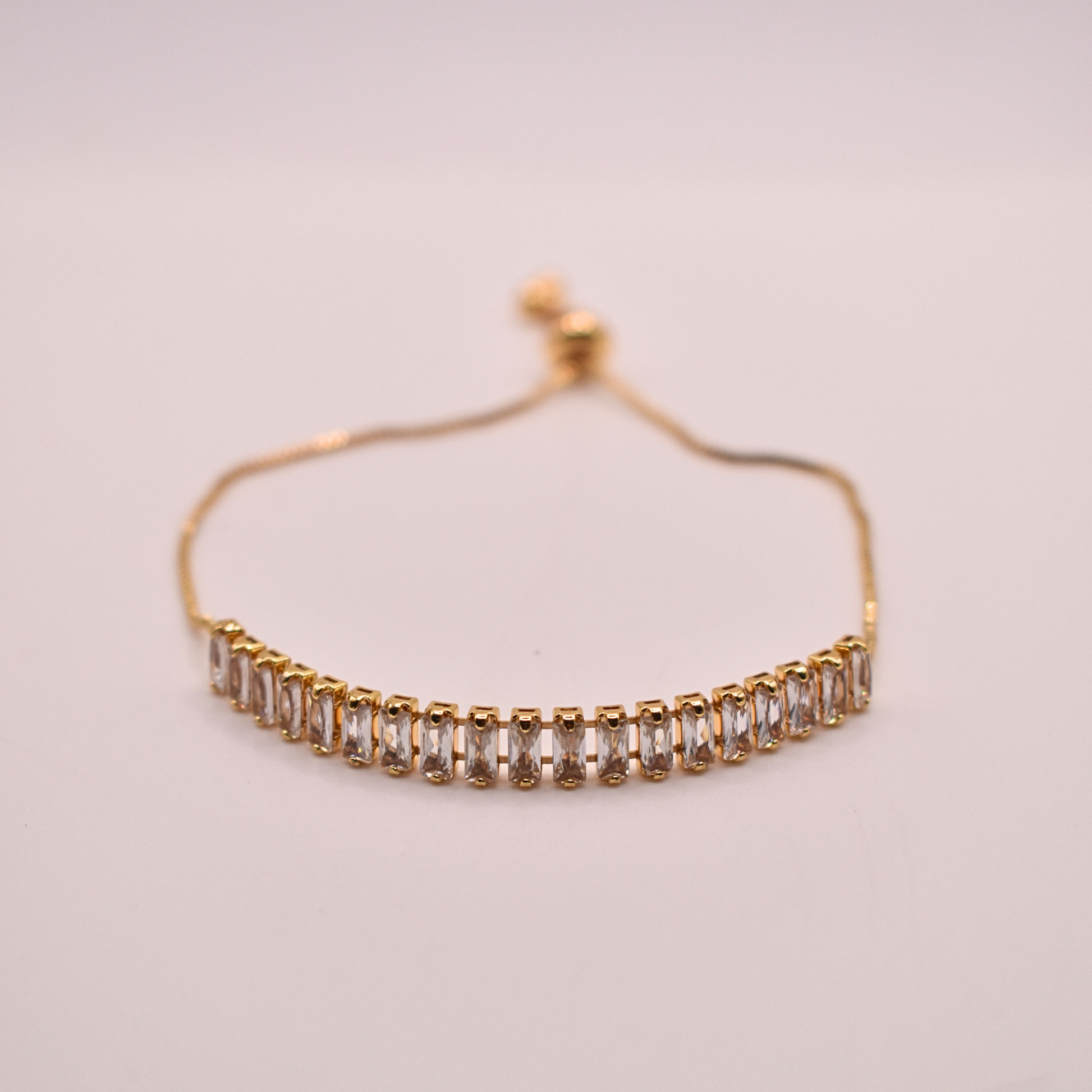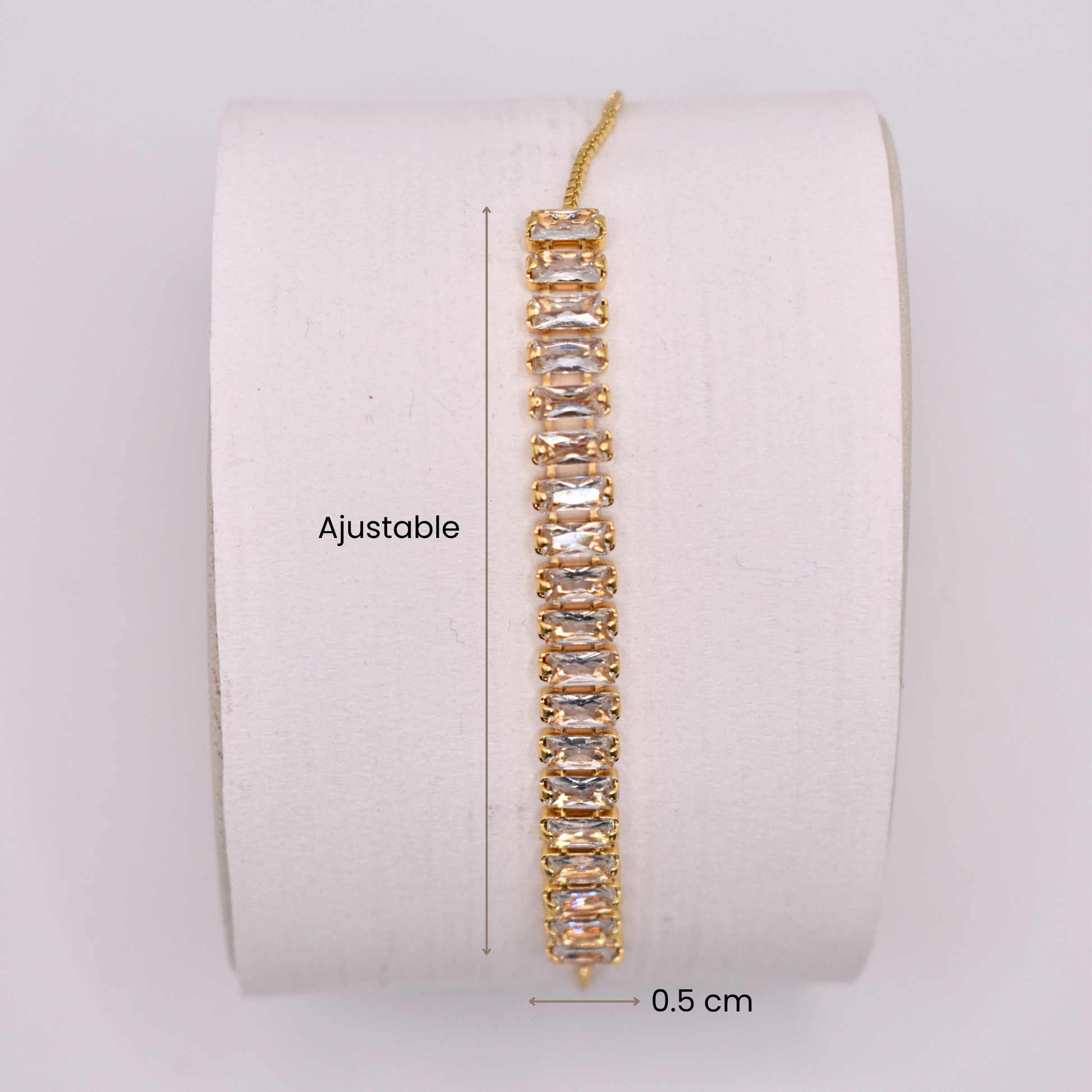 La pulsera ajustable Enya deslumbra con su delicado diseño de cristales en tono dorado, ideal para un look sofisticado.