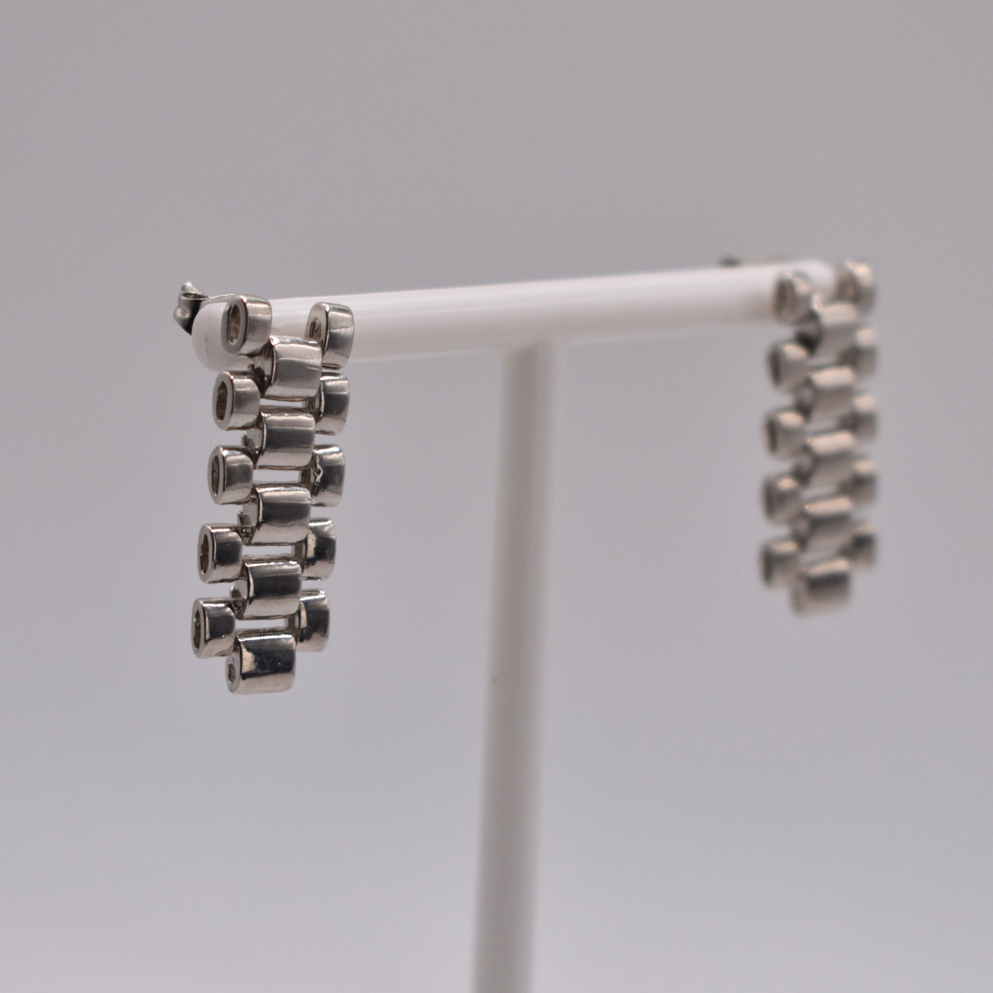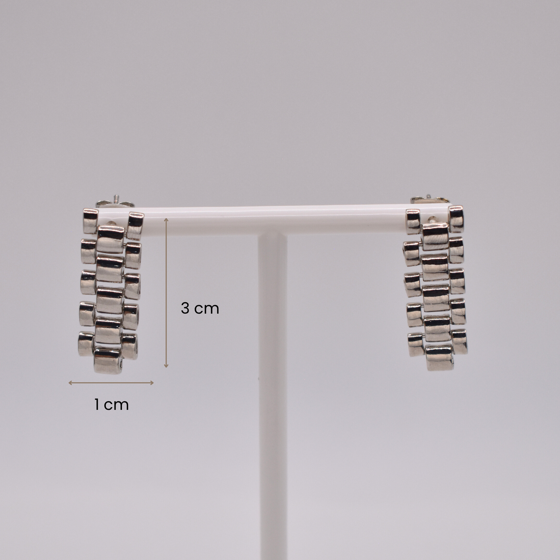 Los aretes Felip tienen un diseño tipo correa de reloj en acabado plateado, ideales para un look moderno y original.