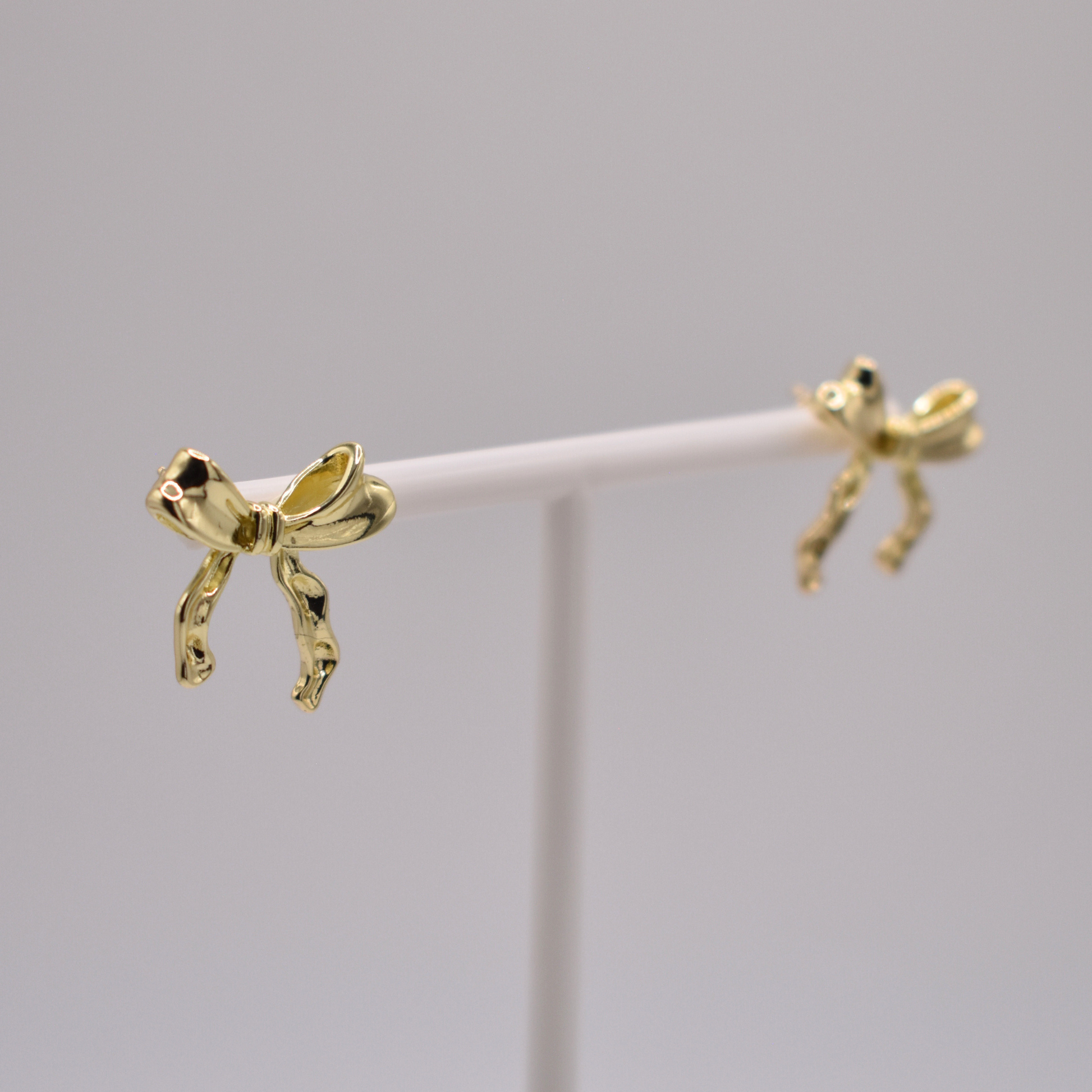 Los aretes Filog presentan un diseño de moño en dorado, ideales para un look femenino y delicado.