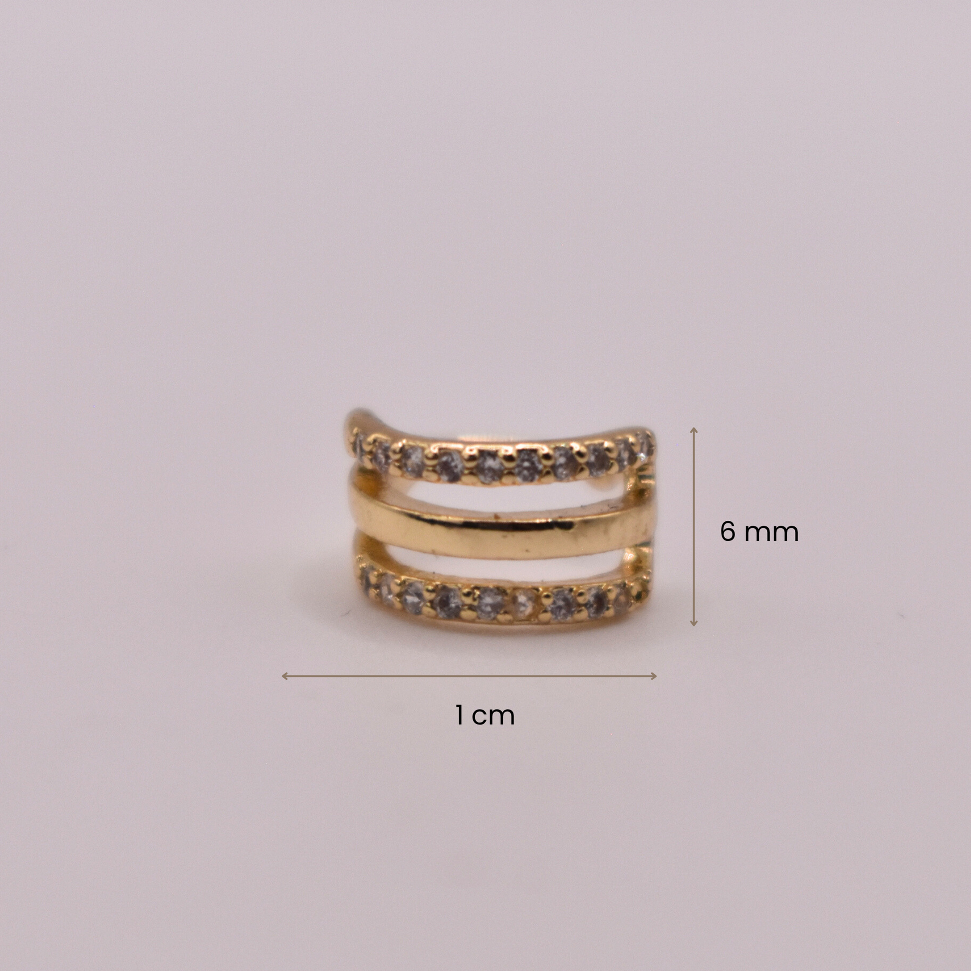 El earcuff Grecia destaca por sus dos líneas de diamantes separadas por una línea lisa, perfecto para un look brillante y sofisticado.