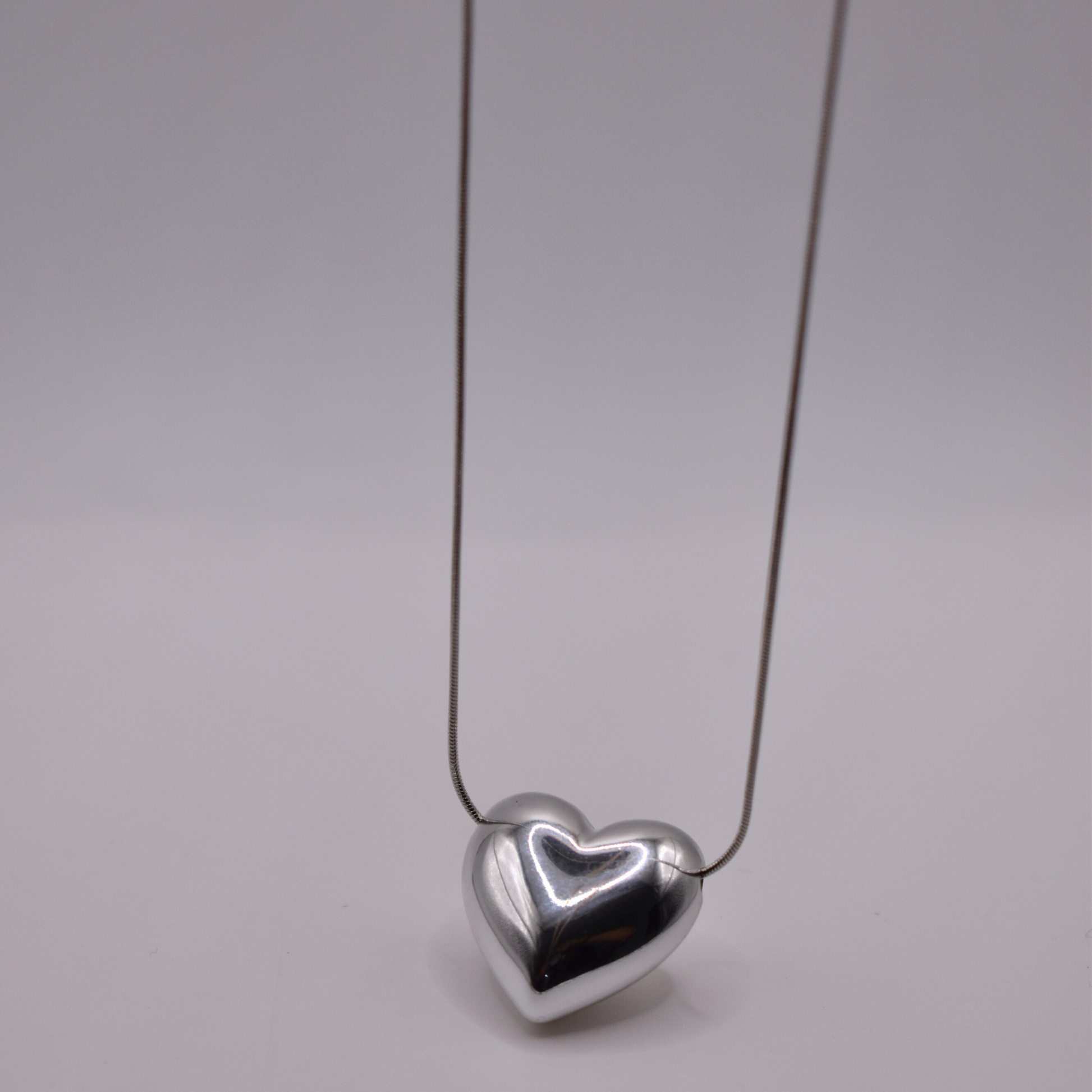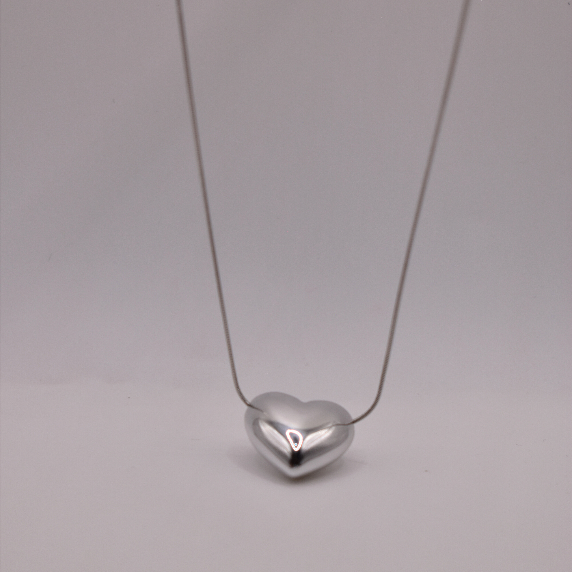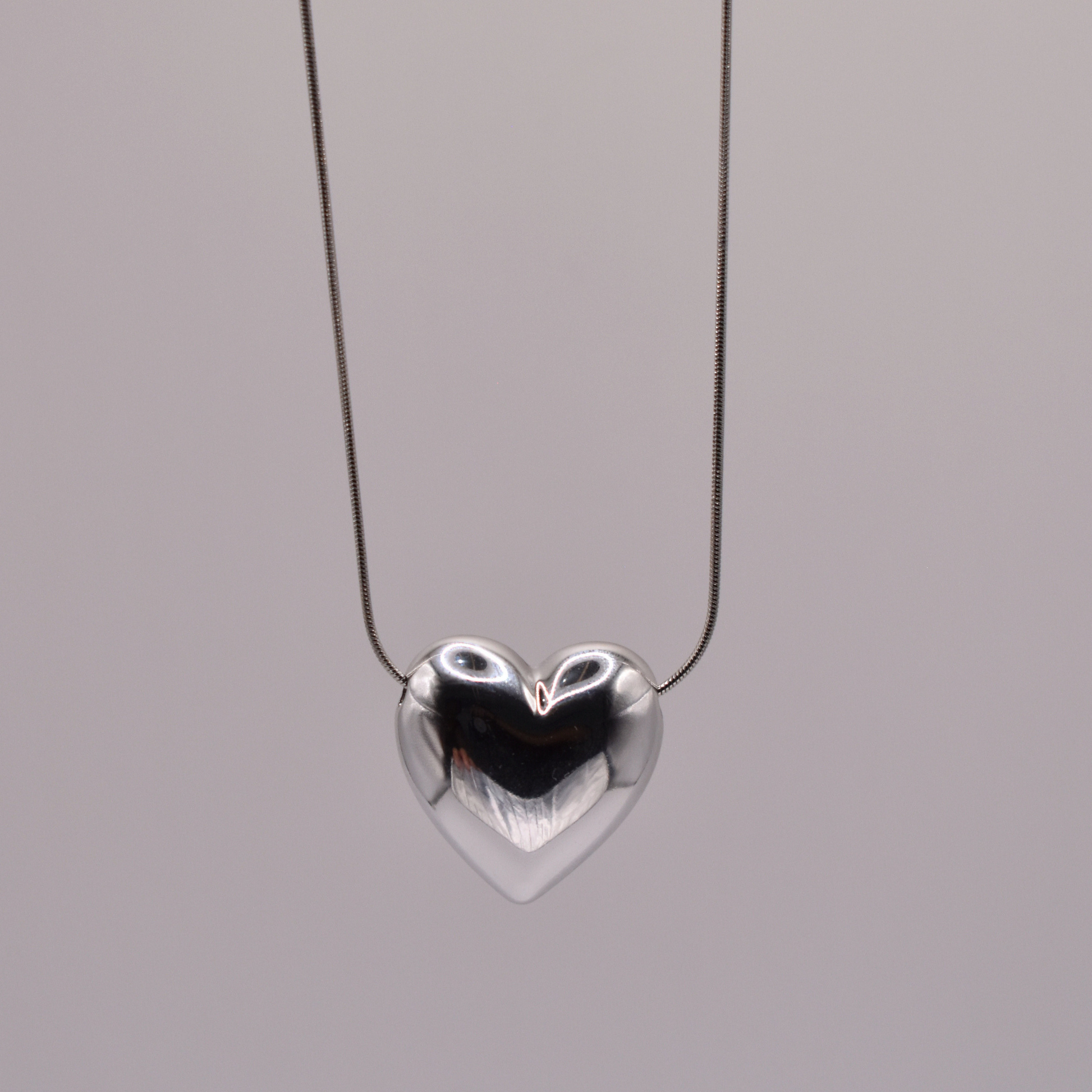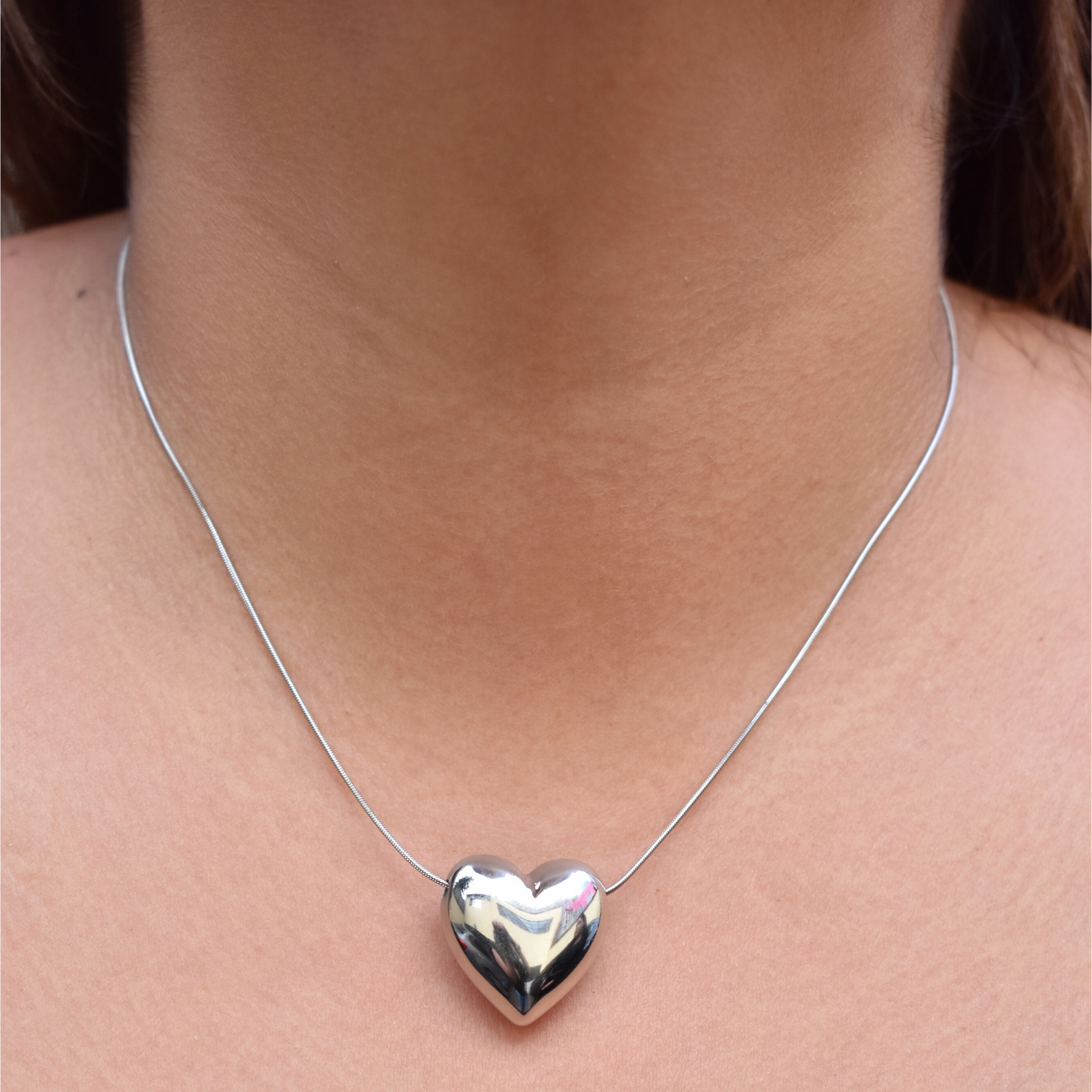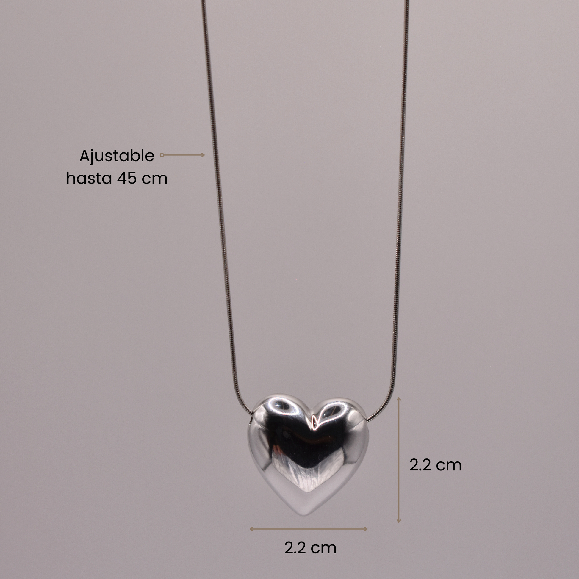 Hades es un collar con dije globo de corazón en acabado plateado, volumen chic para sumarlo a combos de cadenas finas.