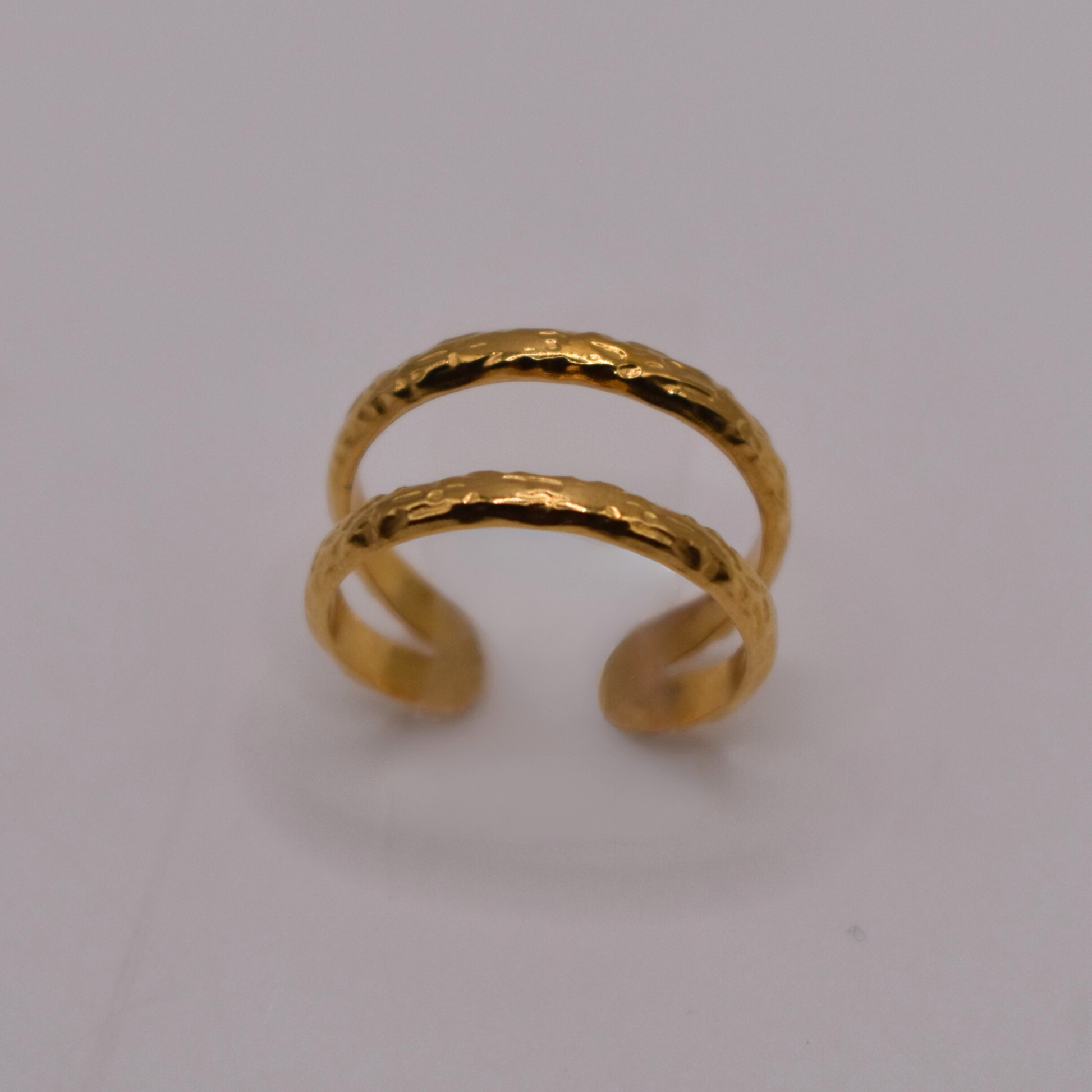 El anillo Hamadi de estilo vanguardista y que da la ilusión de un anillo doble, es el toque que debes agregar a tu carrito