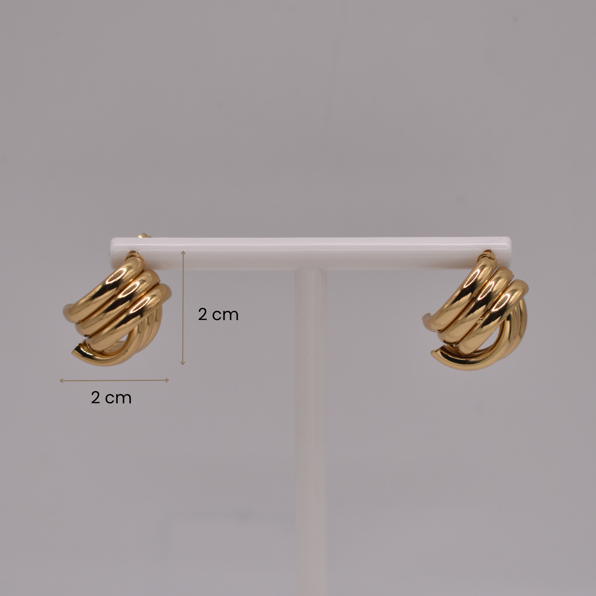 Los aretes Hent combinan curvas estructuradas y brillo intenso en un diseño contemporáneo de triple aro. Una apuesta moderna y sofisticada que resalta con cualquier peinado.