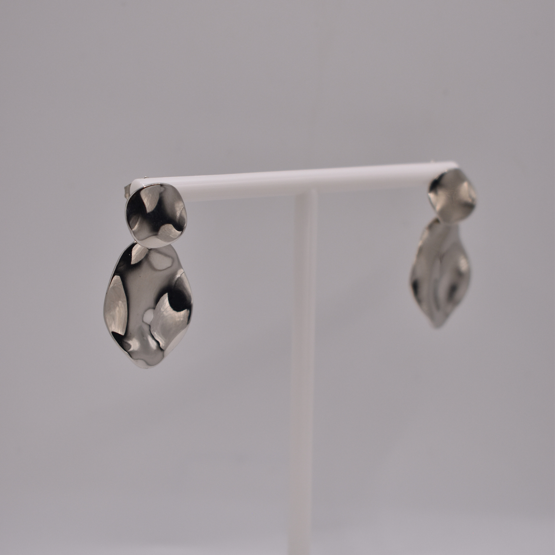 Los aretes Irene combinan su largo metálico en un diseño irregular. Ideales para quienes buscan una pieza statement con un toque artístico y moderno.