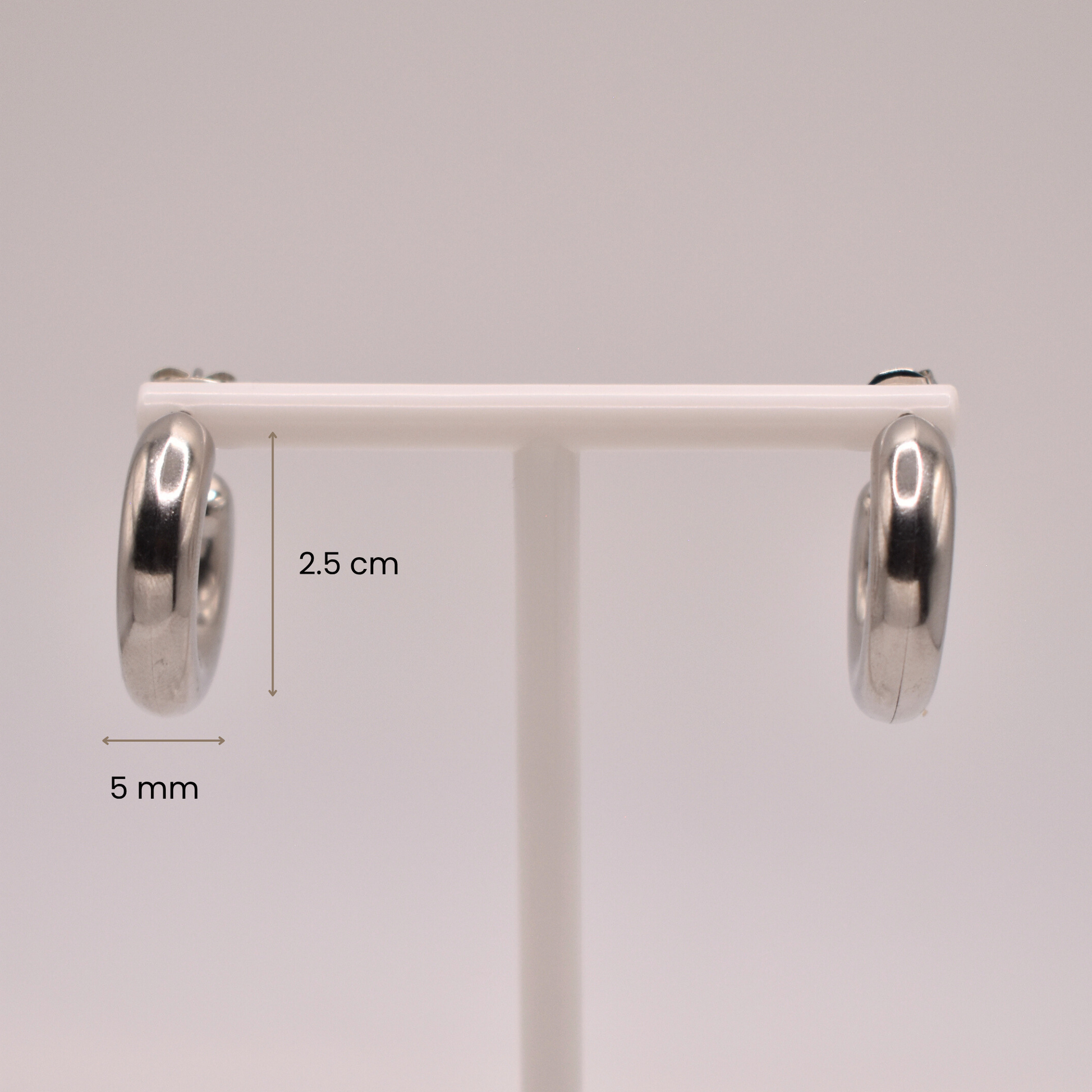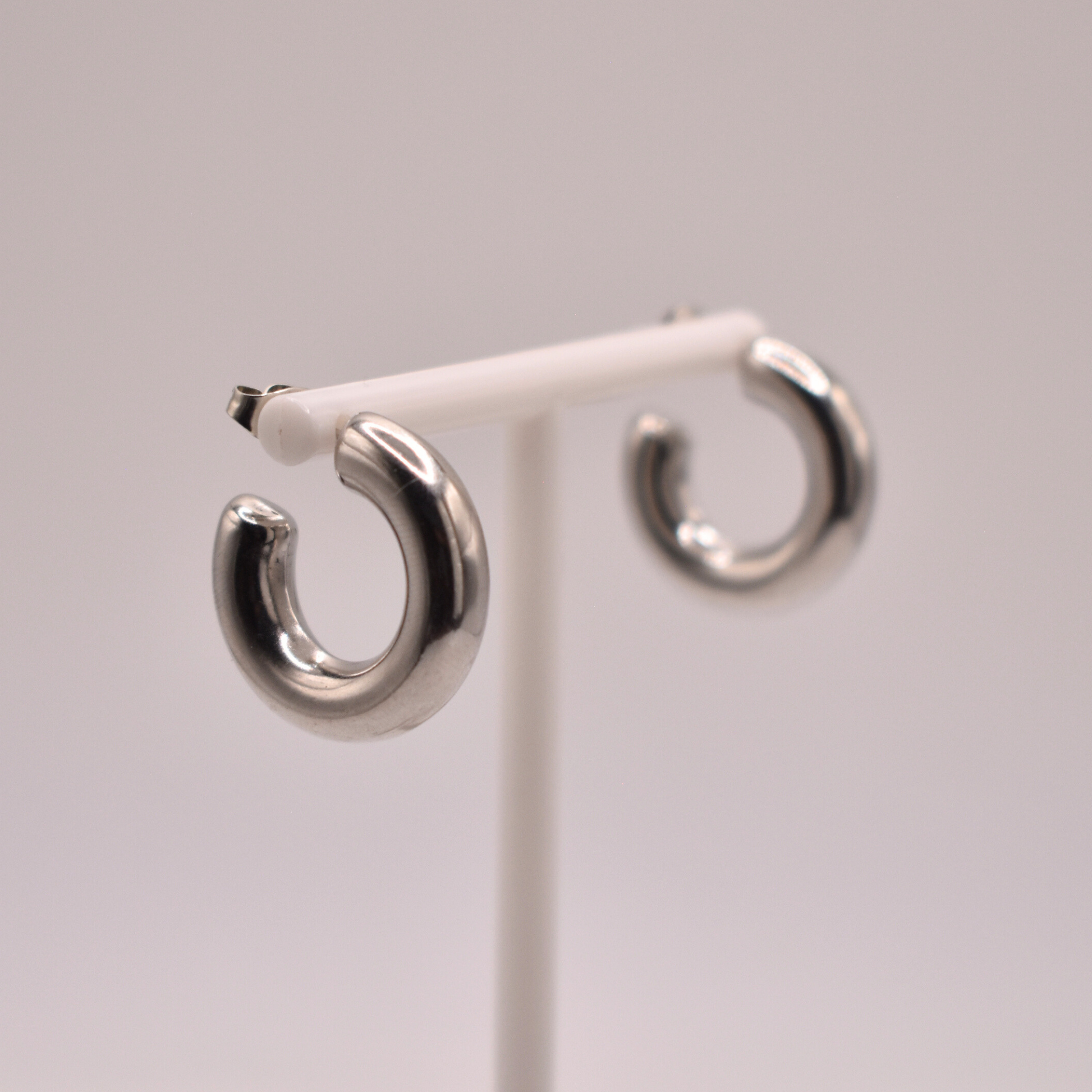 Las arracadas Karan en plateado ofrecen un diseño circular con un toque chunky, ideales para un look sofisticado.