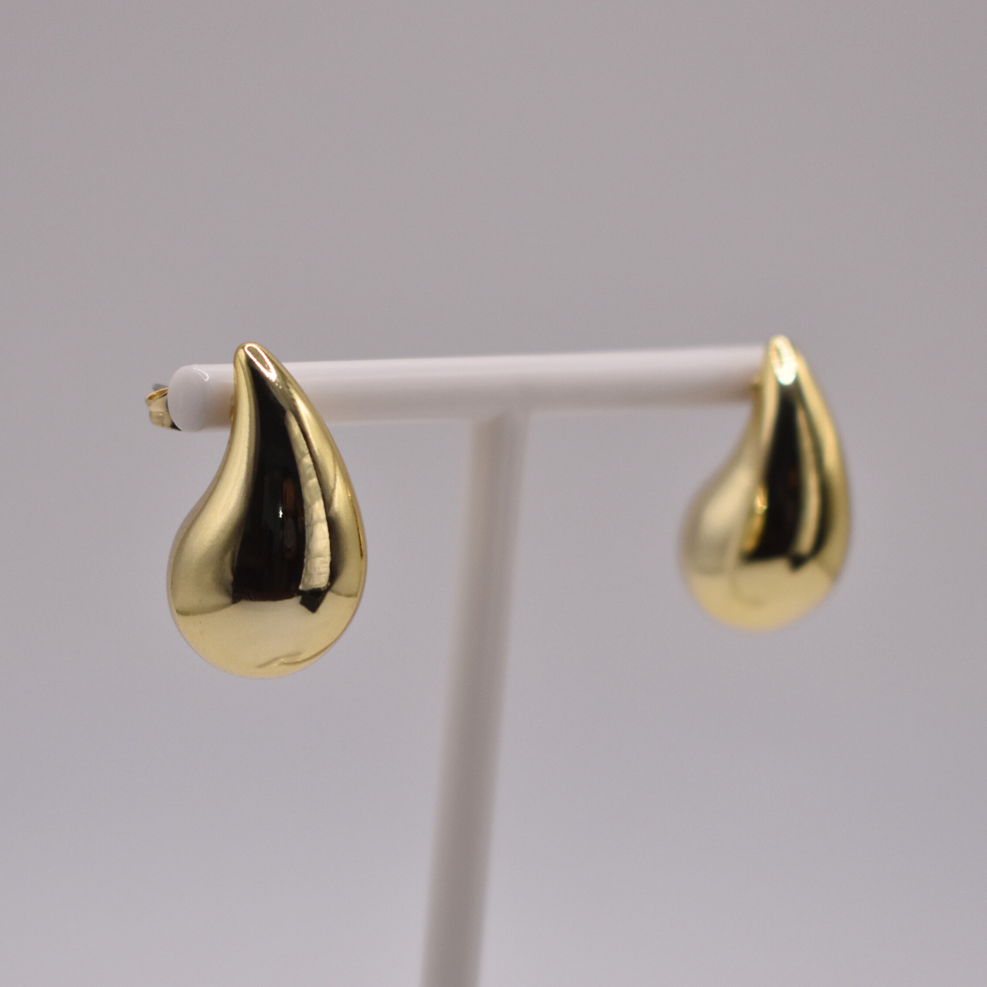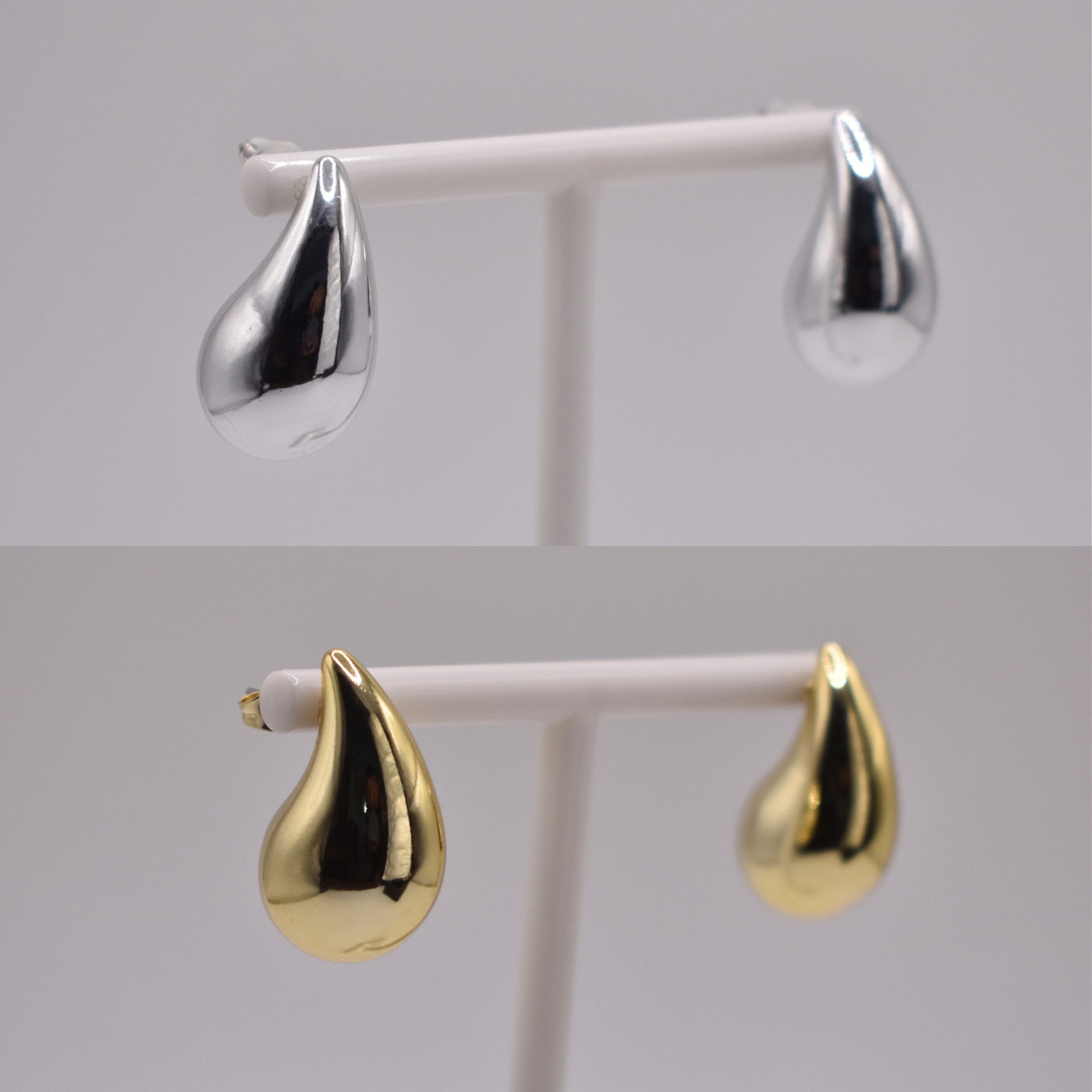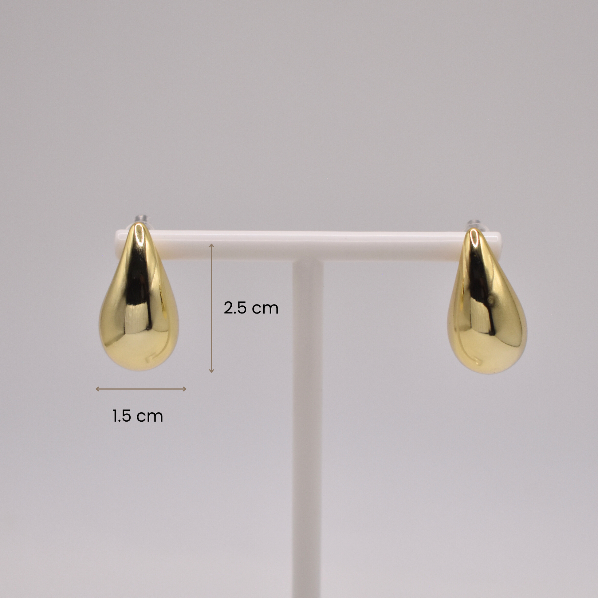 Los aretes Katia son chunky en forma de gota, disponibles en dorado o plateado. Un clásico con un toque de volumen.