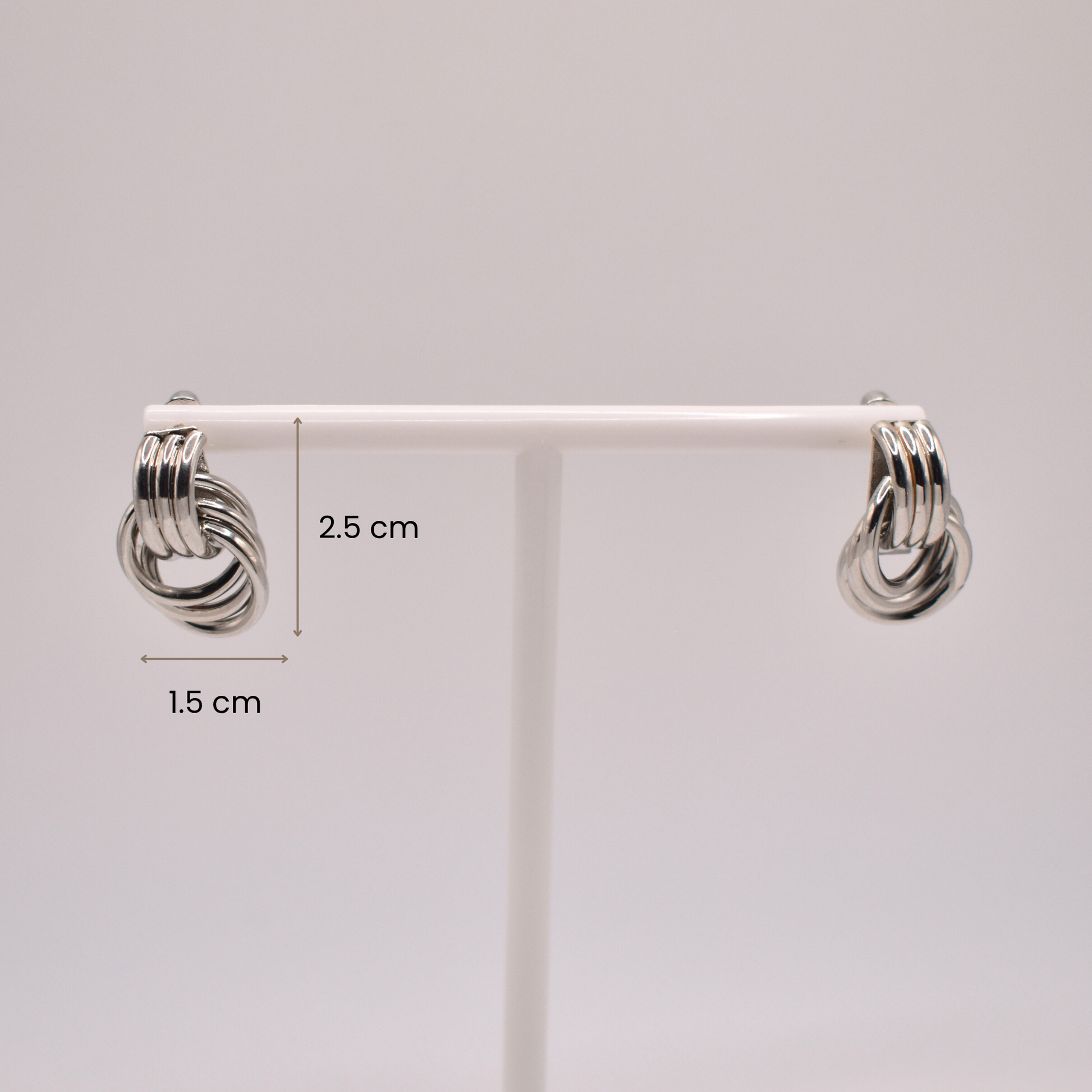 Los aretes Kiria en plateado presentan círculos irregulares, ideales para un look desenfadado y chic.