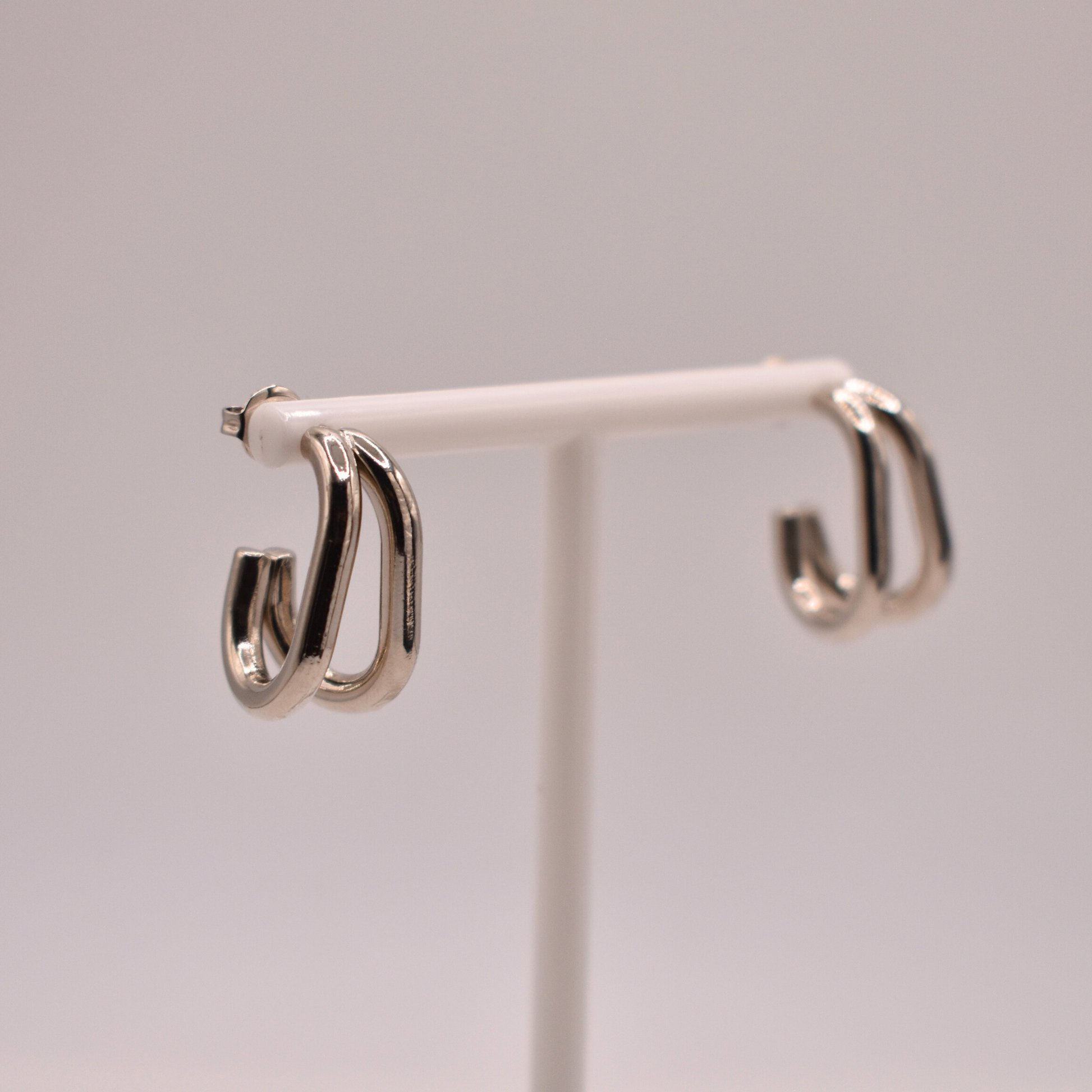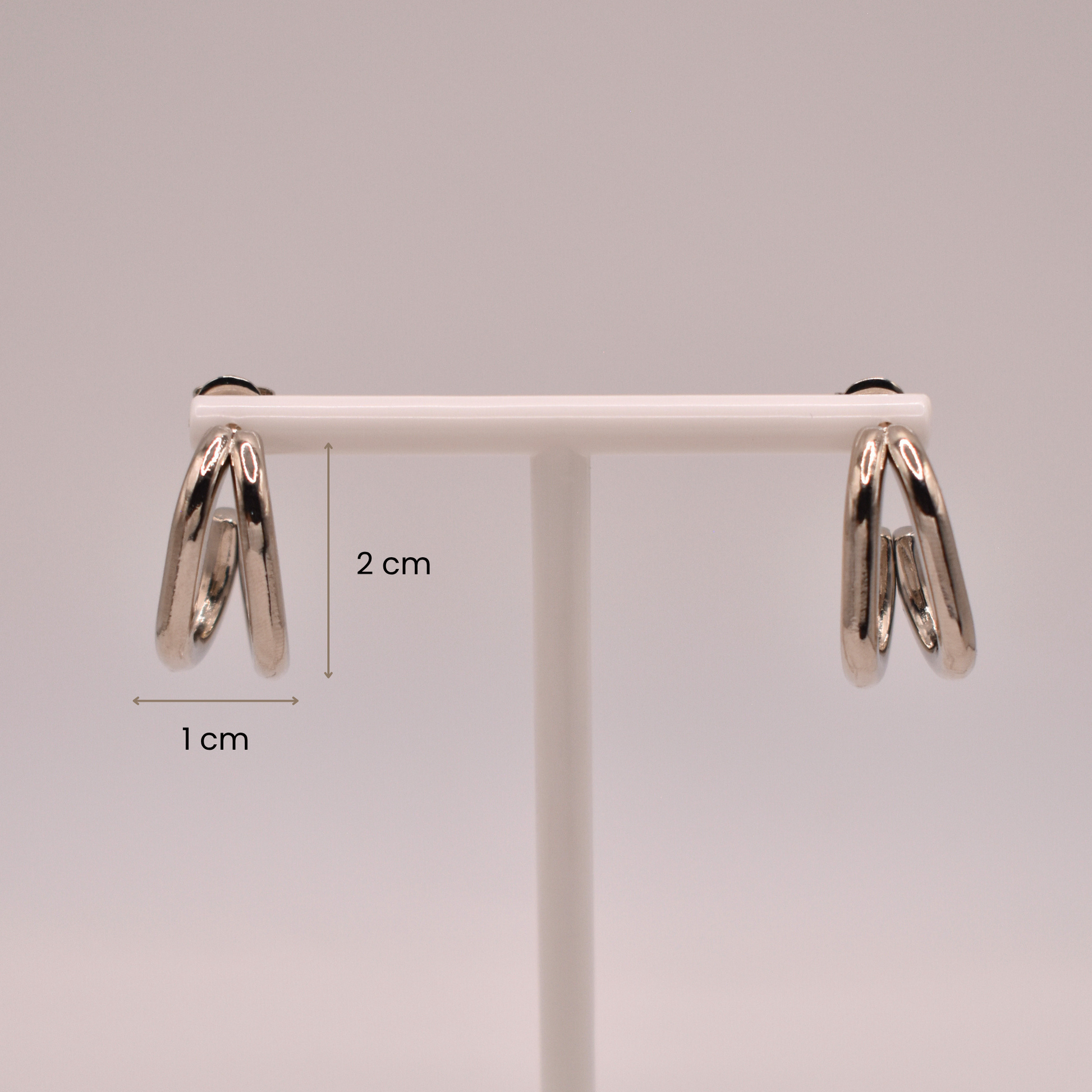 Los aretes Lizandro combinan elegancia y originalidad con su diseño de rectángulos dobles en acabado plateado.