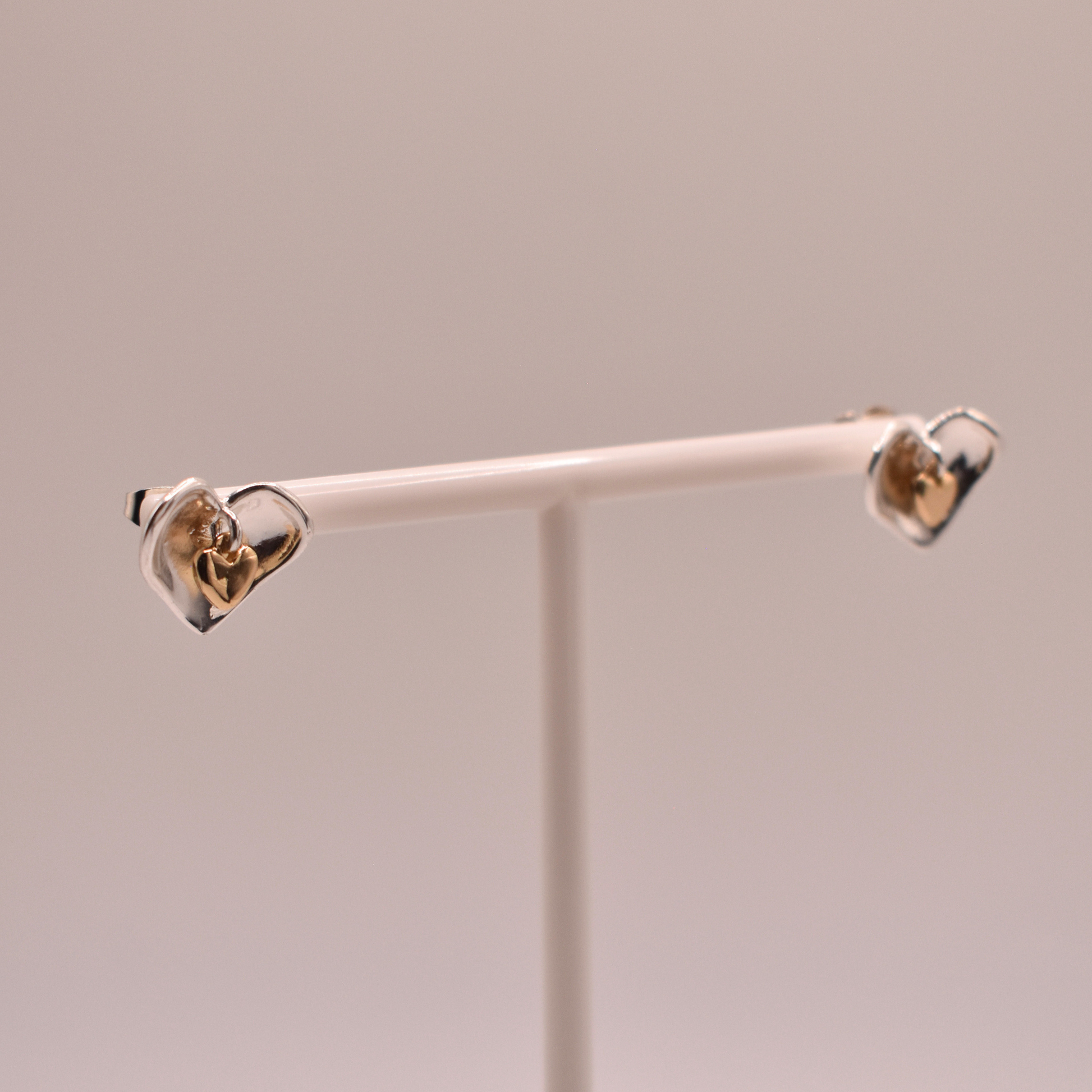 Dale un toque romántico a tu look con los aretes Lois, de corazones en mezcla dorada y plateada. Ligeros y delicados.