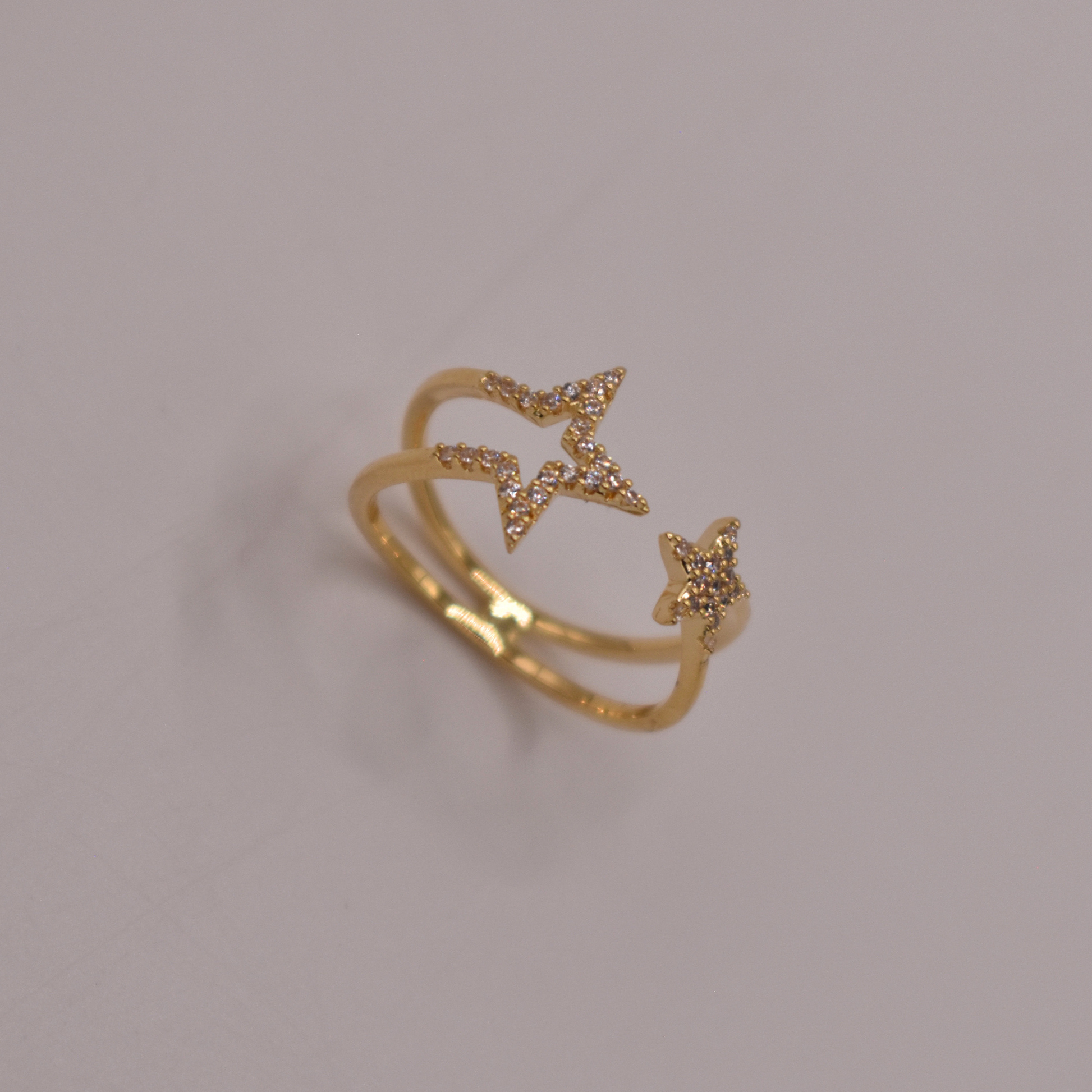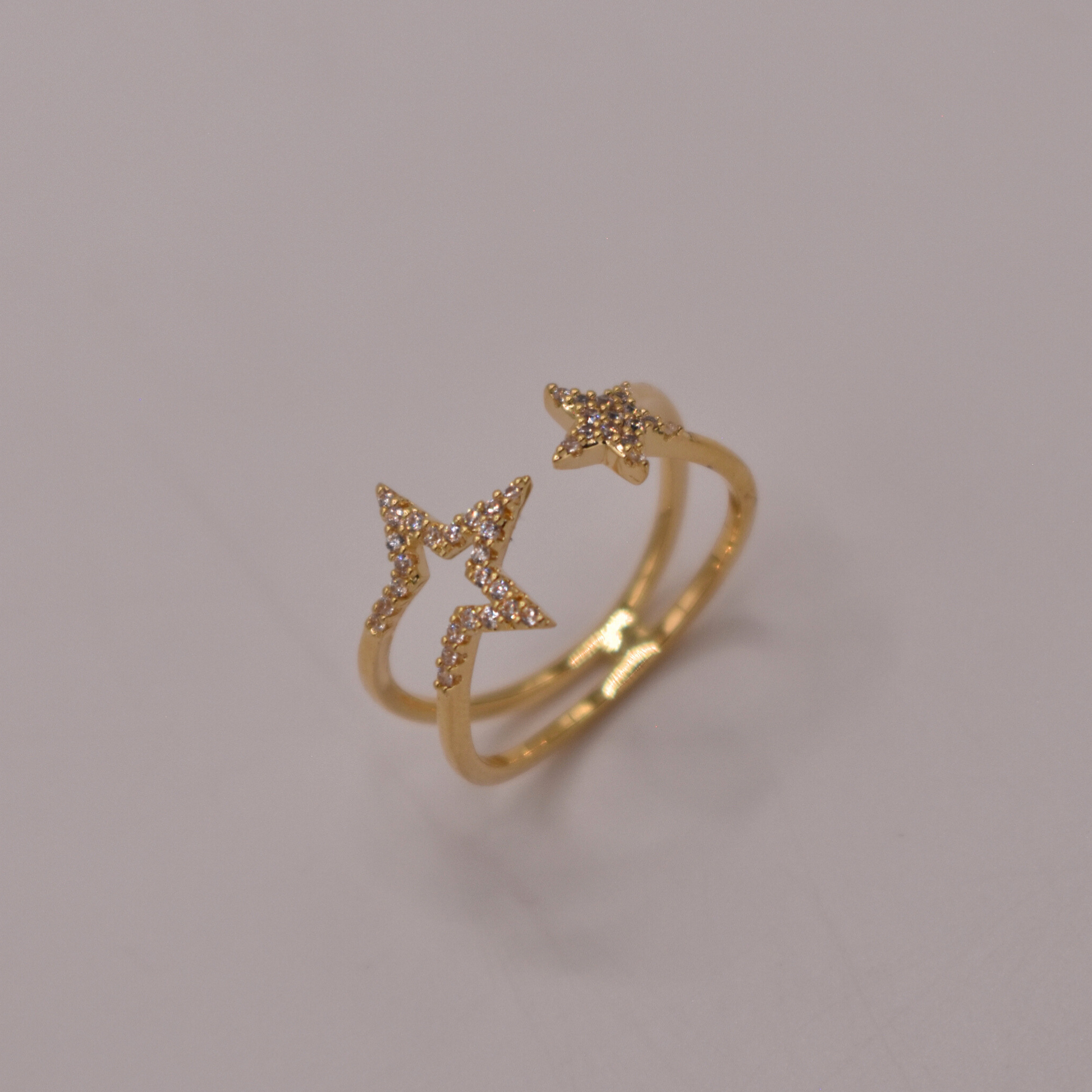 Mara es la unión de dos estrellas con toques de brillo, diseño delicado y moderno, ideal para layering o con pulseras finas.