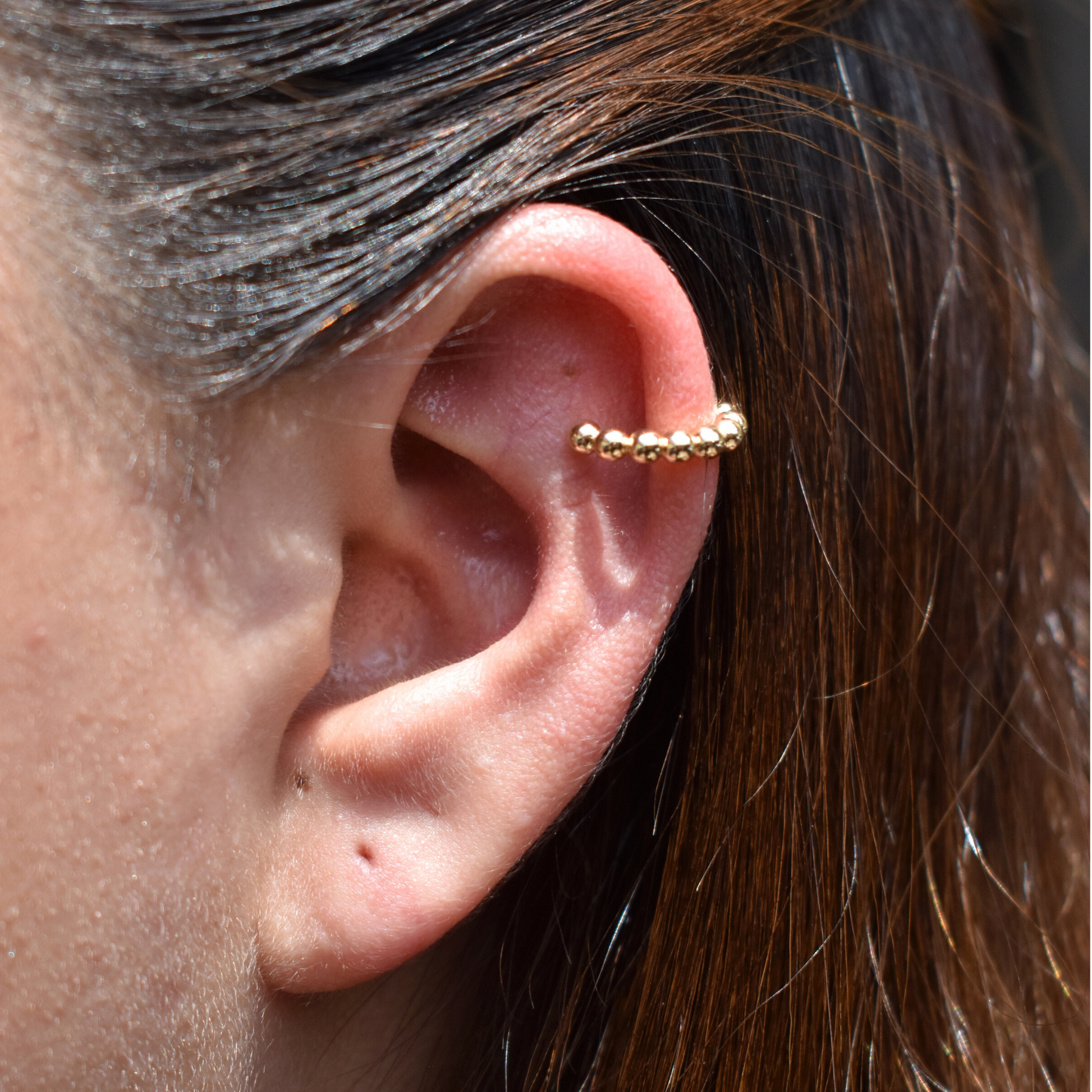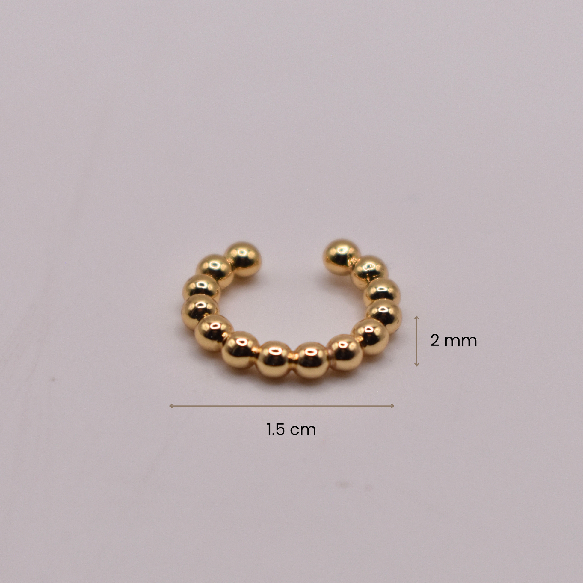 Delicado y minimalista, el earcuff Melisa en dorado tiene un diseño de bolitas, perfecto para un look sutil y elegante.
