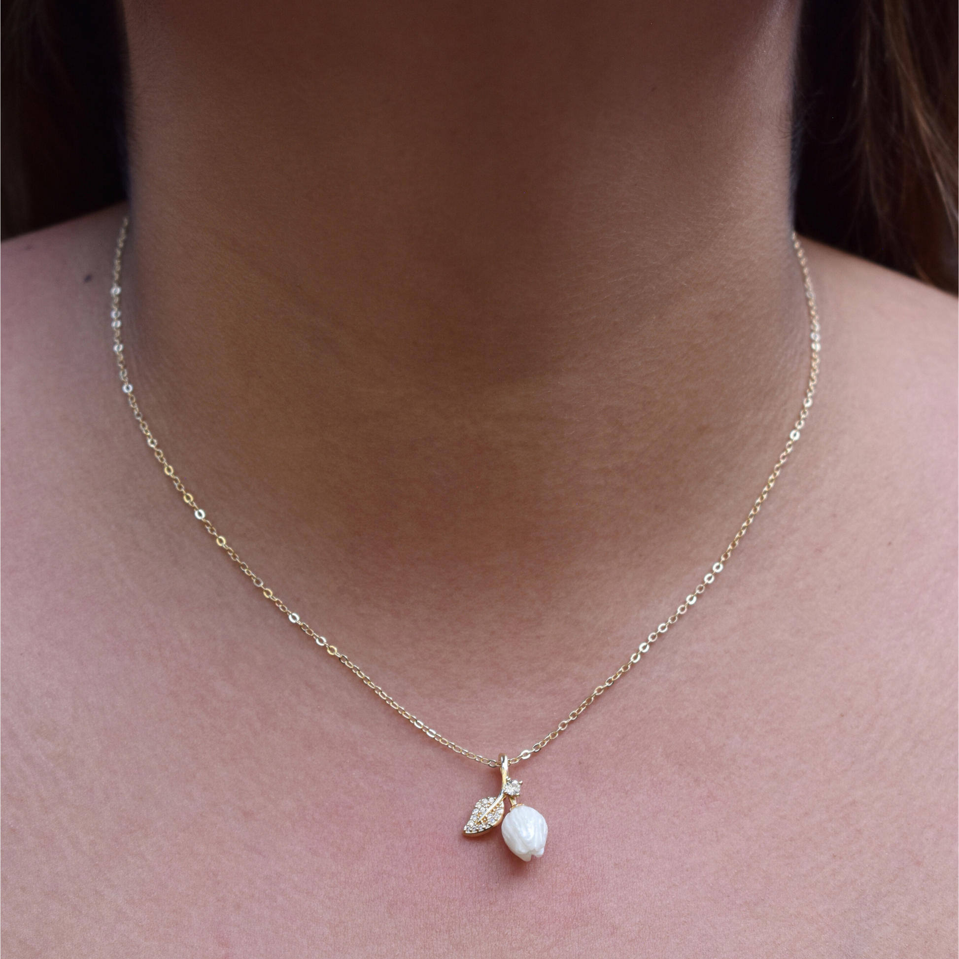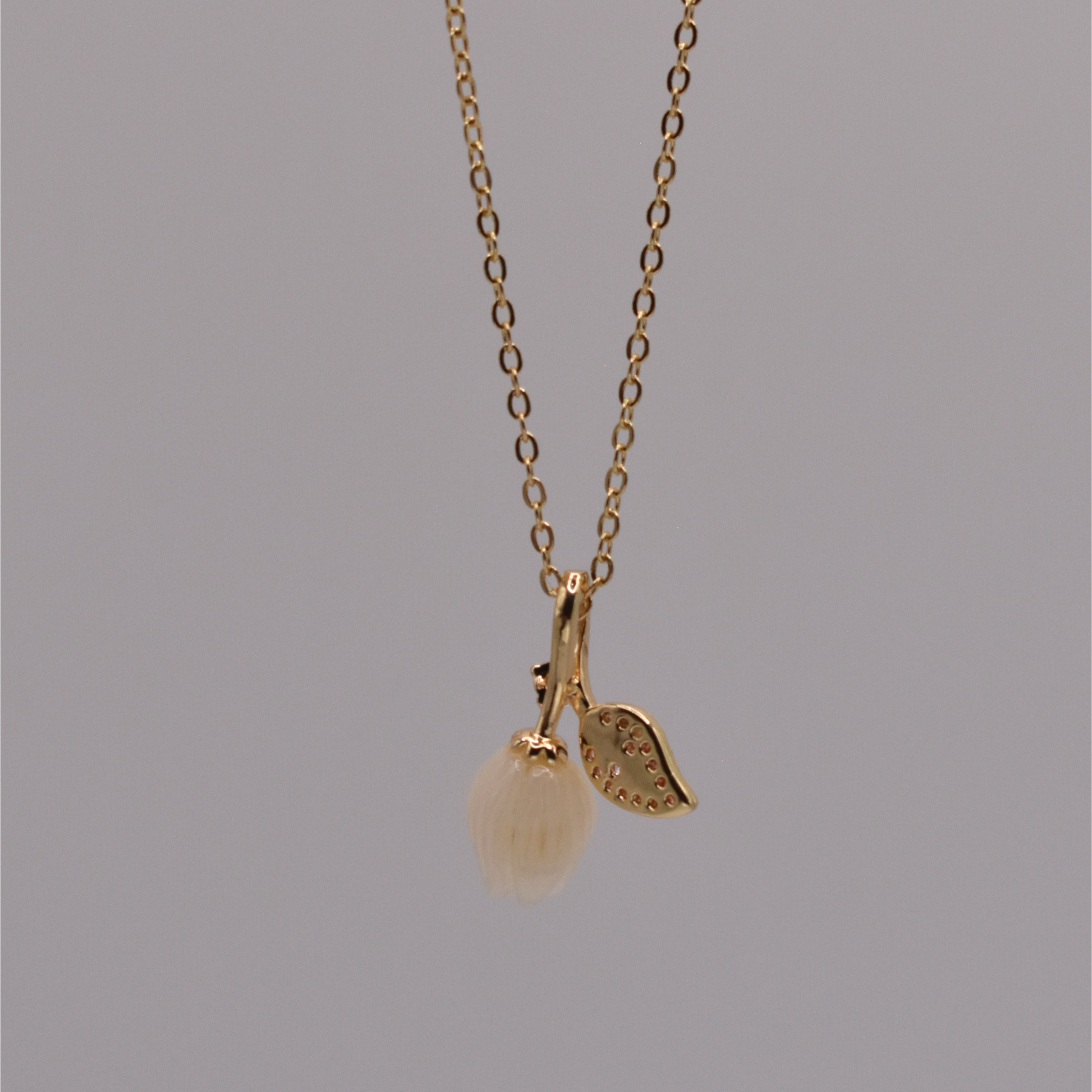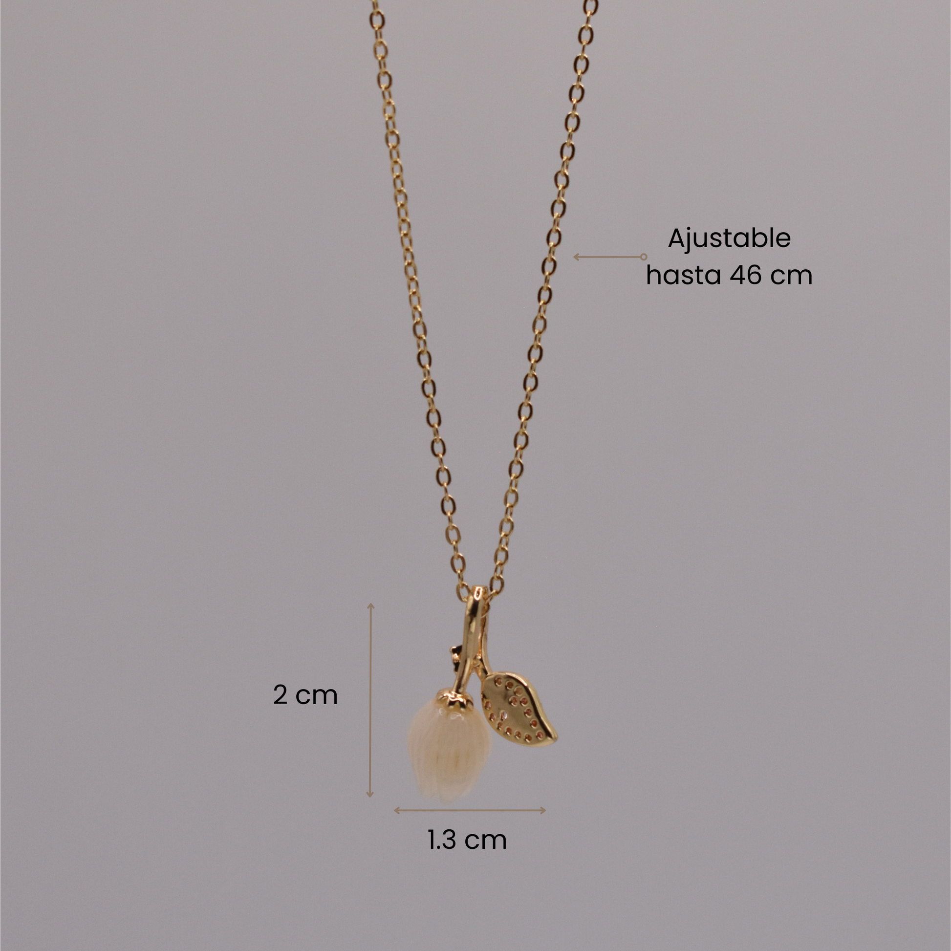 Collar con tulipán blanco, Meri es ideal para sumar color y motivo floral con más cadenas apiladas.