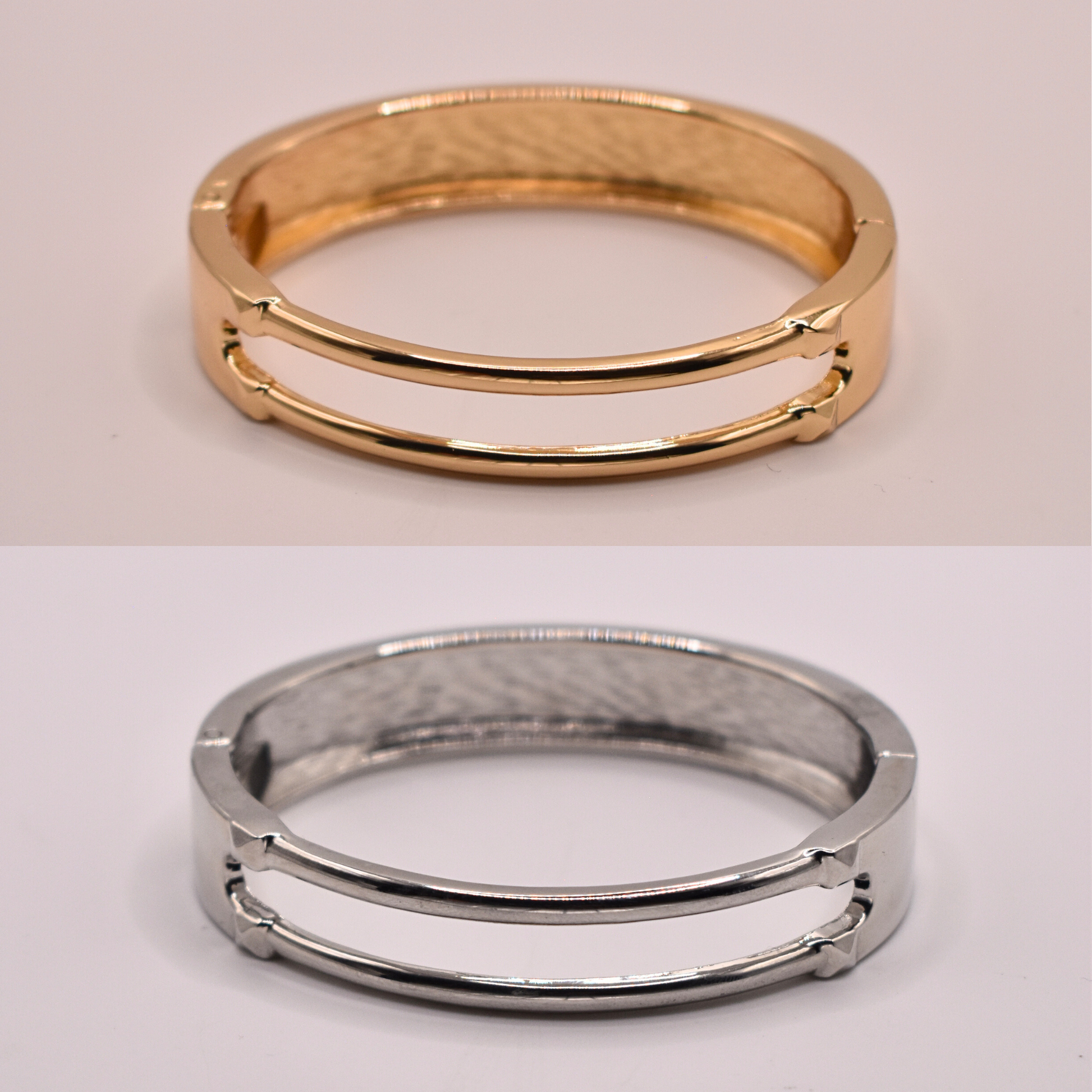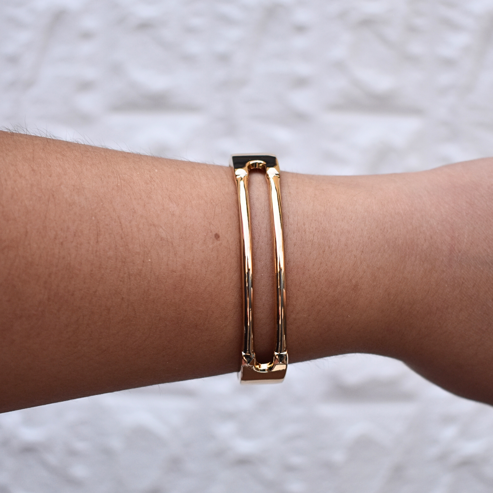 La pulsera rígida chunky Naunet destaca por su toque rectangular y su diseño robusto pero elegante, disponible en dorado o plateado.