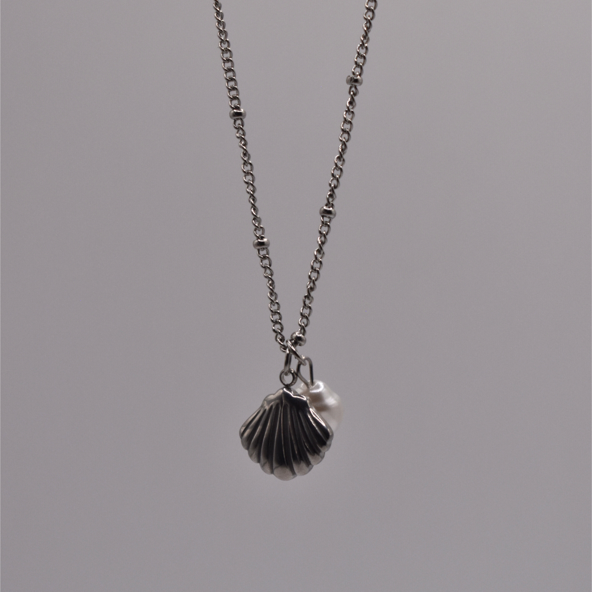 Nerea es un collar con dije de concha y figura de perla, perfecto para el verano, excelente para un layering desenfadado.
