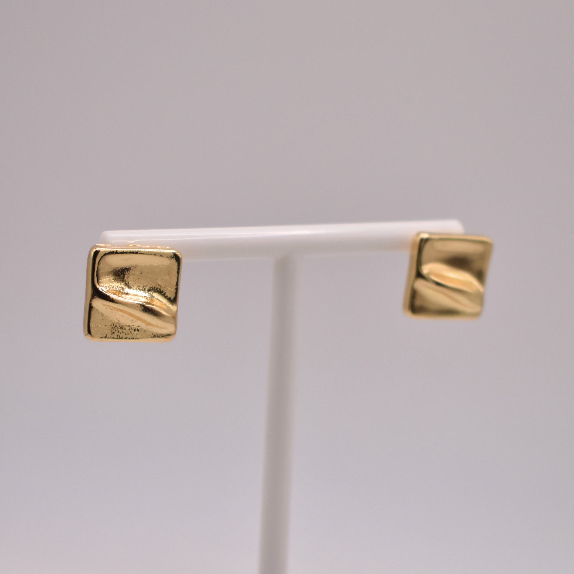 Los aretes Phoenix en oro laminado tienen un diseño cuadrado minimalista, ideales para un look elegante y sutil.
