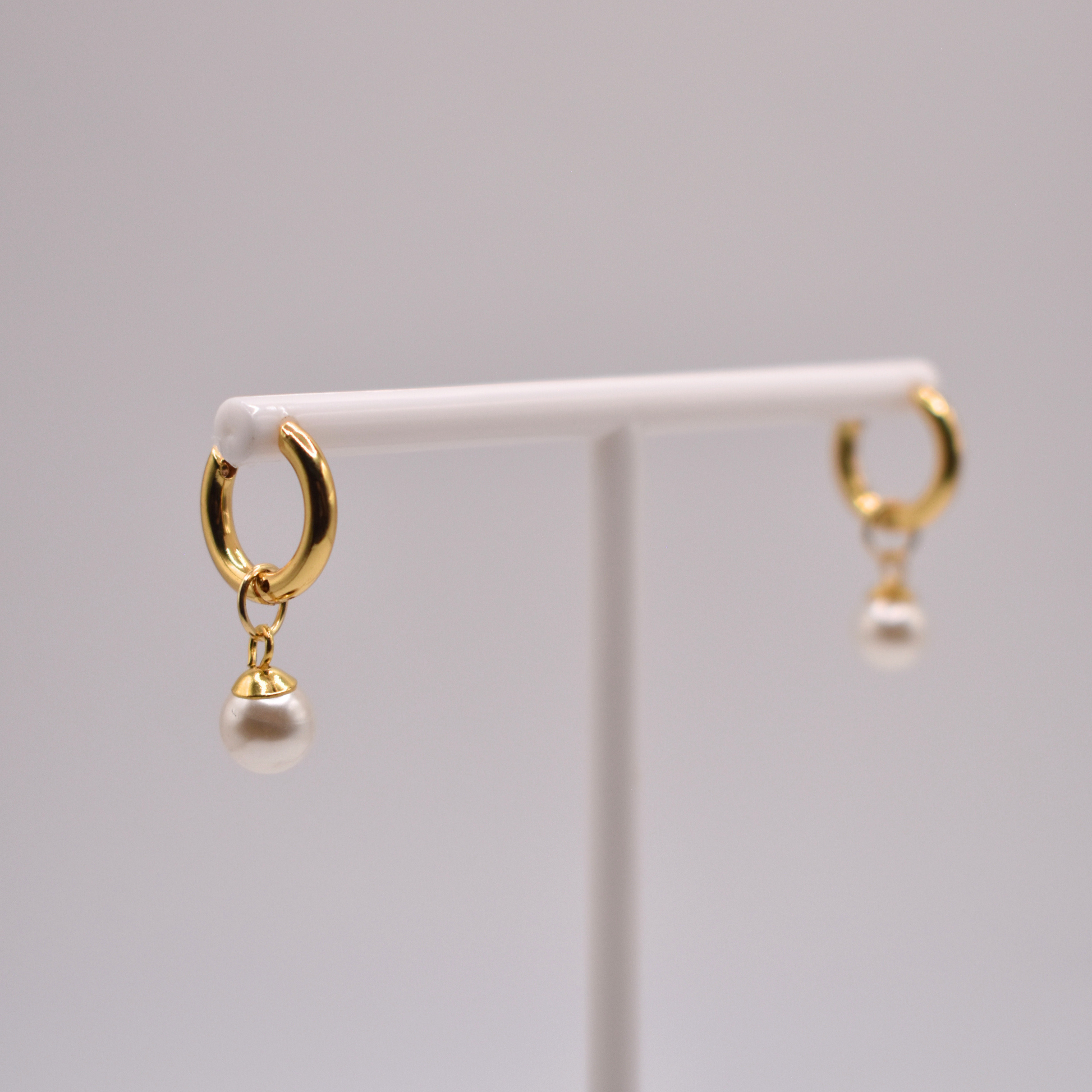 Las arracadas Plutón doradas tienen un dije de perla removible, ideales para un look versátil y elegante.