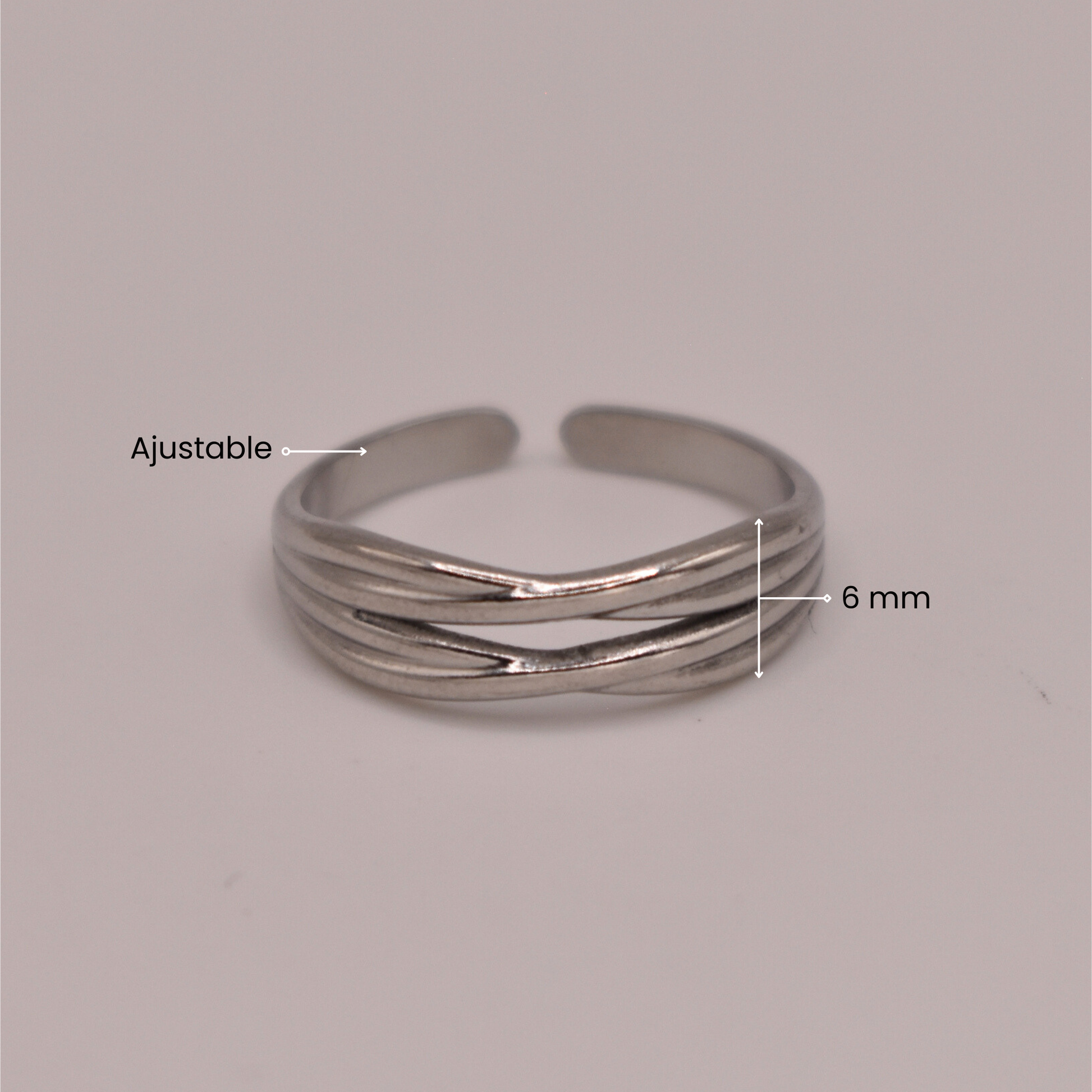 Rasia es un anillo plateado con dos cruces entrelazados, símbolo de unión y estilo para quienes buscan algo significativo y elegante.
