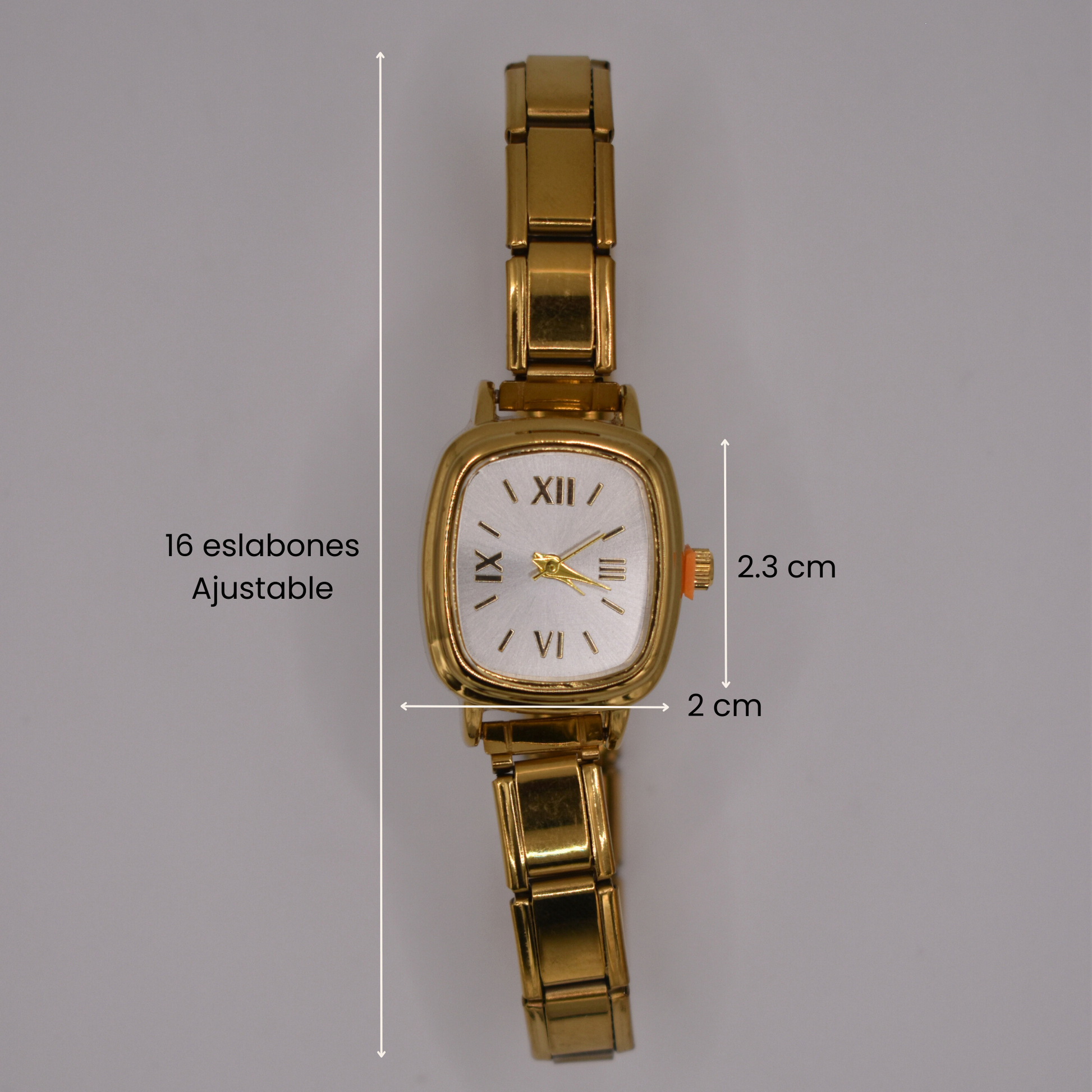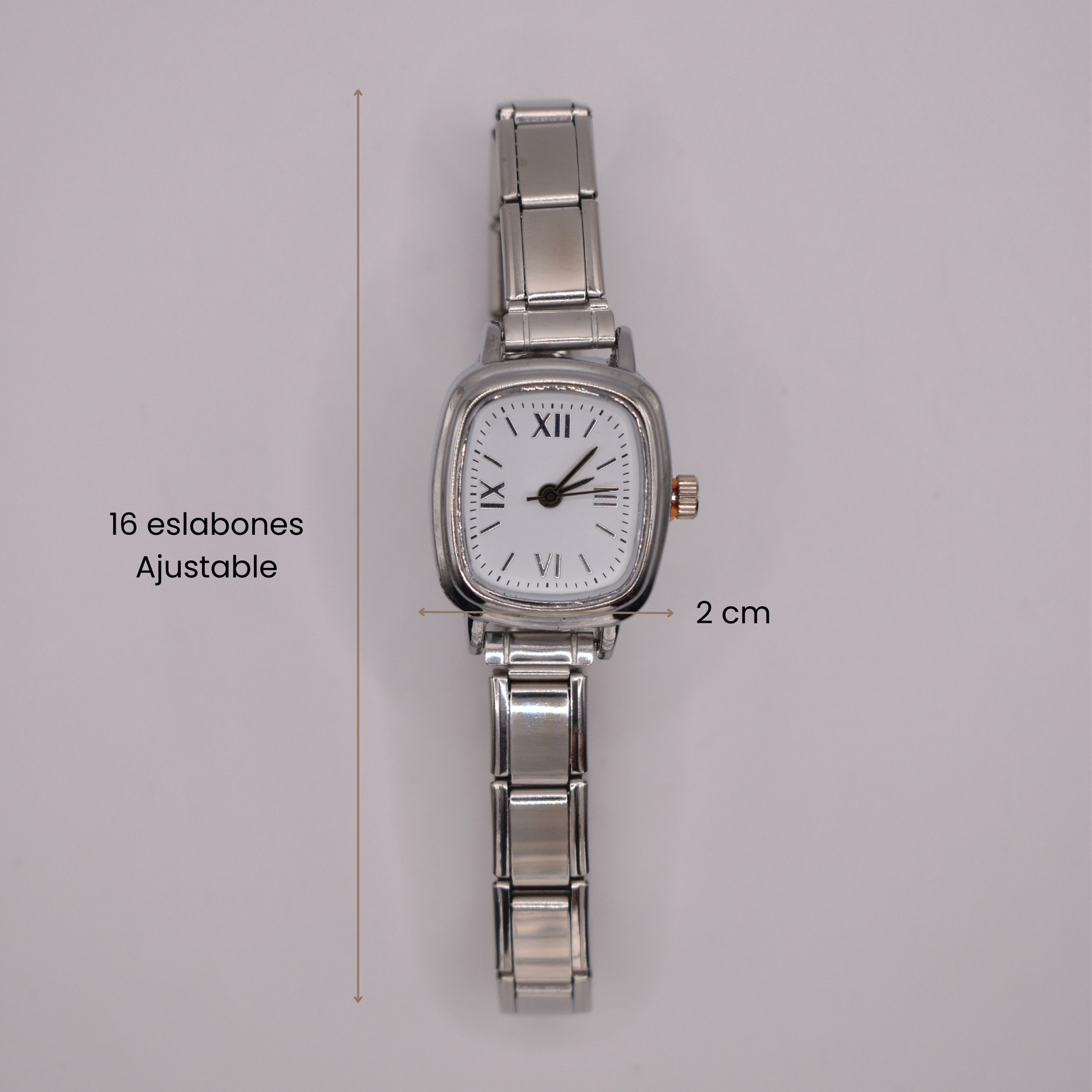 El reloj Lulus combina elegancia clásica con un diseño moderno. Disponible en plateado y dorado, su carátula cuadrada con números romanos crean un estilo refinado y atemporal, ideal para looks formales o casual chic.