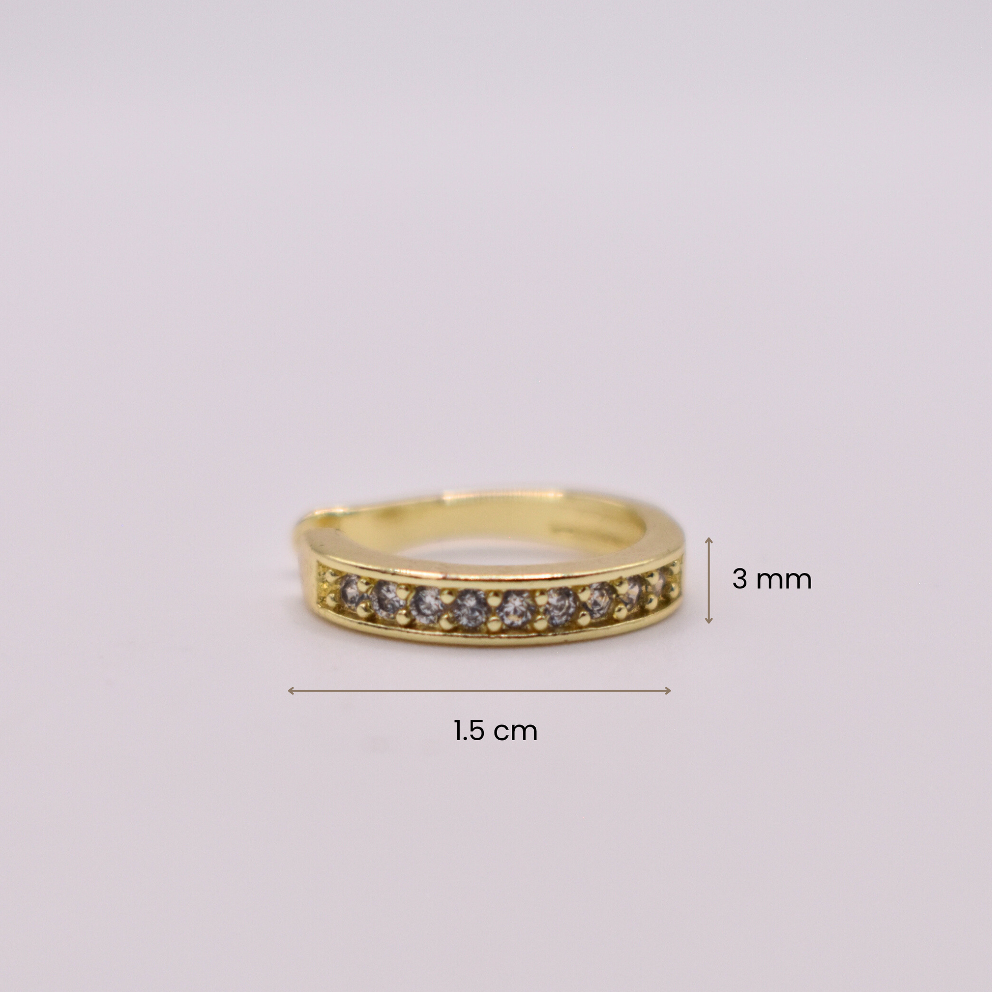 El earcuff Stephanie en dorado con toques de diamantes es el accesorio perfecto para darle brillo sutil a tu look. Elegante, moderno y cómodo.