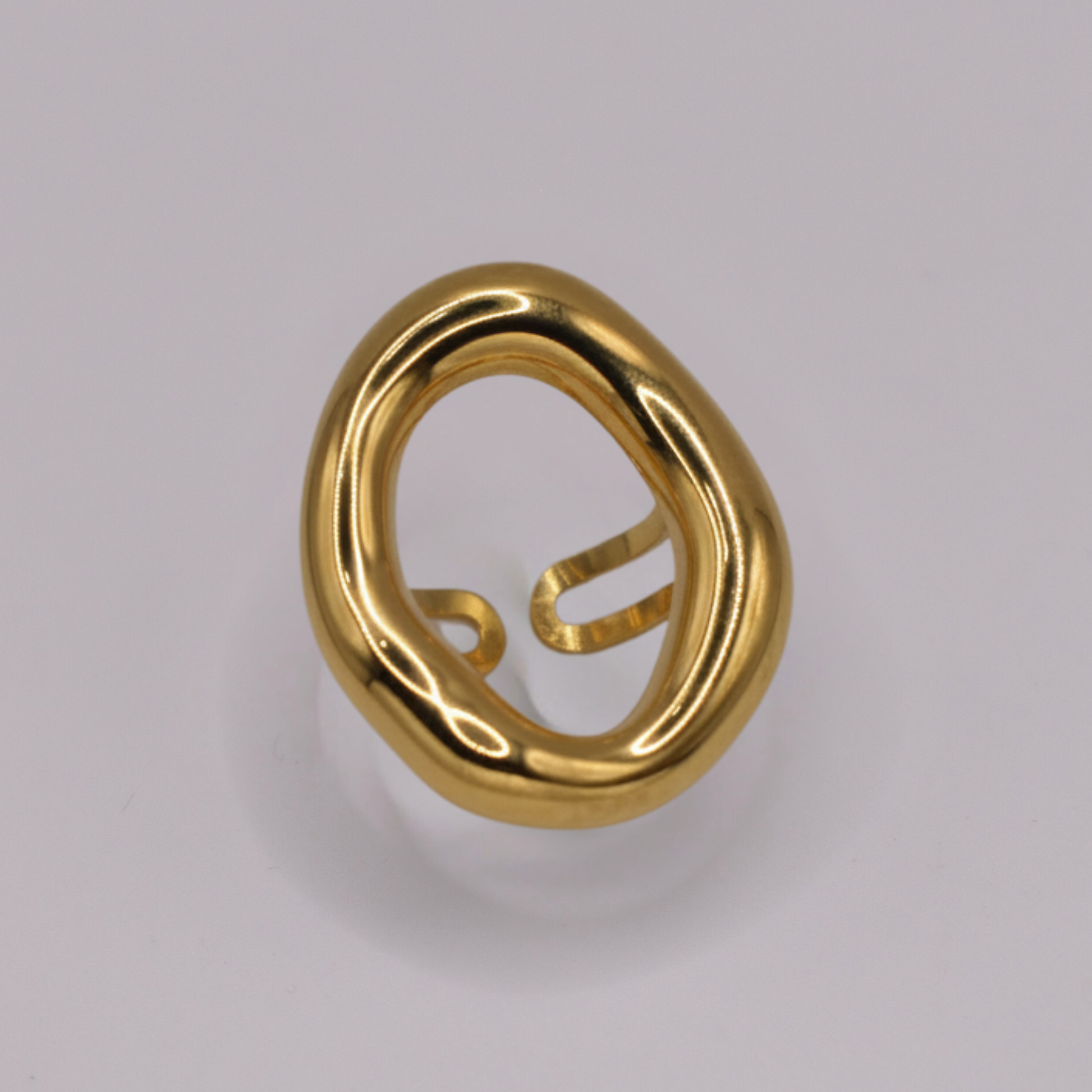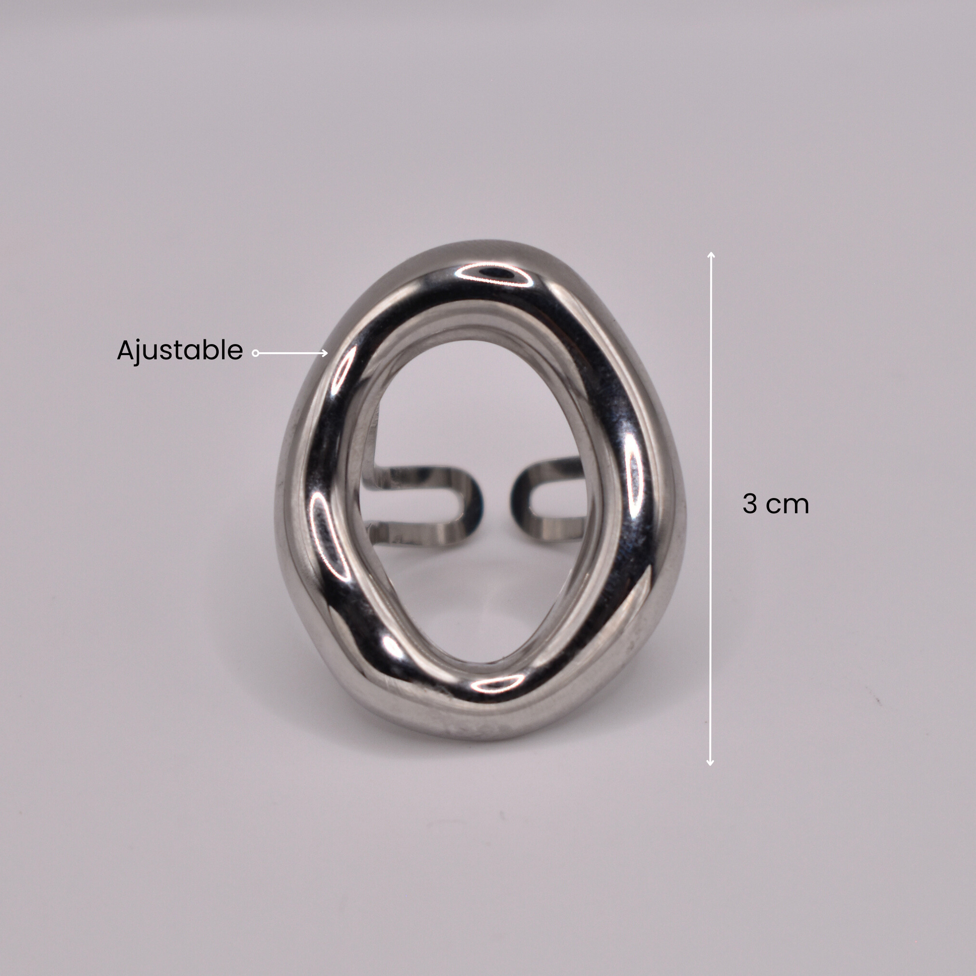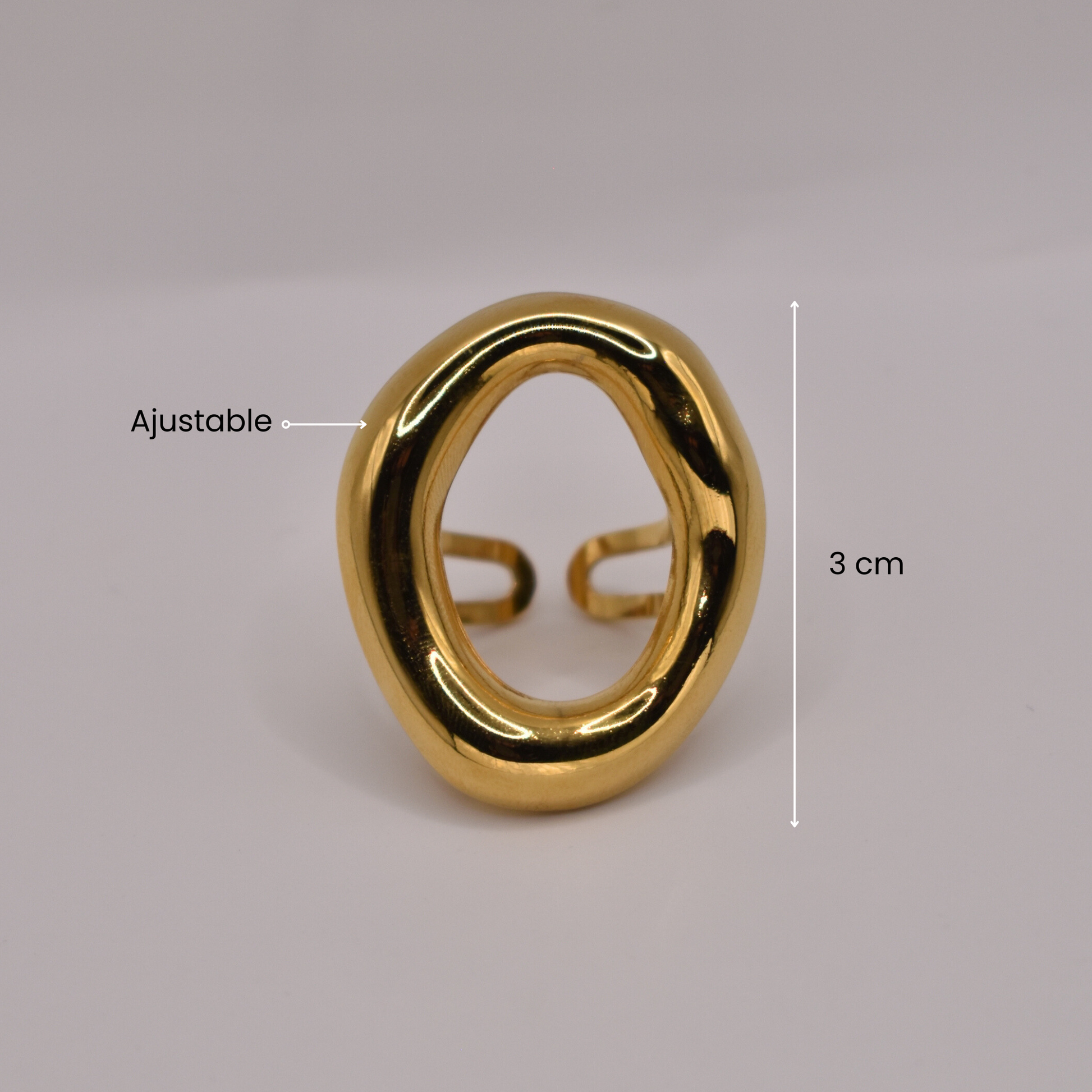 Tanit es un anillo ovalado chunky con centro hueco, la pieza más versátil y trendy para complementar cualquier outfit con estilo.